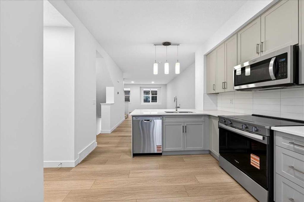 WEST-SIDE LIVING, WITHOUT THE WAIT. Alpine Park puts southwest Calgary exactly where it should be—QUICK out of the city, FASTER toward the mountains, and WELL-CONNECTED for everything in between. It’s the kind of location people eventually wish they’d bought into sooner. This THREE-STOREY TOWNHOME matches that momentum. The main living level (second floor) is confident and clean, anchored by a modern kitchen with QUARTZ COUNTERS, a PENINSULA BREAKFAST BAR, and pendant lighting that provides just the right finishing touch. The FULL-WIDTH PRIVATE BALCONY sits right off the kitchen—perfectly placed for morning coffee, evening decompression, or keeping an eye on the day while dinner’s on. Up top, the THIRD FLOOR keeps everything that matters together. Bedrooms, laundry, and bathrooms share the same space, including a primary bedroom with its own ensuite. A separate DEN/FLEX ROOM is tucked alongside—fully enclosed, highly adaptable, and ready to be a nursery, office, reading room, gaming zone, or whatever life requires next. Down below, on the entry level, the long DOUBLE TANDEM ATTACHED GARAGE quietly does the heavy lifting. Parking, storage, bikes, strollers, seasonal gear—it all stays contained, without bleeding into your living space. STEPS FROM GREEN SPACE and the dog park, Alpine Park is one of those west-side communities that REWARDS EARLY MOVERS—well connected now, with parks, pathway systems, and everyday amenities already shaping how the neighbourhood functions. As future retail, gathering spaces, and community infrastructure come online, the groundwork is already there. IT’S ONLY GETTING BETTER as it grows. West-side smart. Design-forward. Unbothered by trends. SEE IT IN PERSON—AND DECIDE IF THIS IS WHERE THE NEXT CHAPTER STARTS.