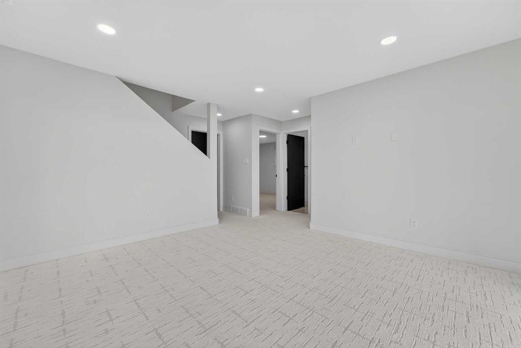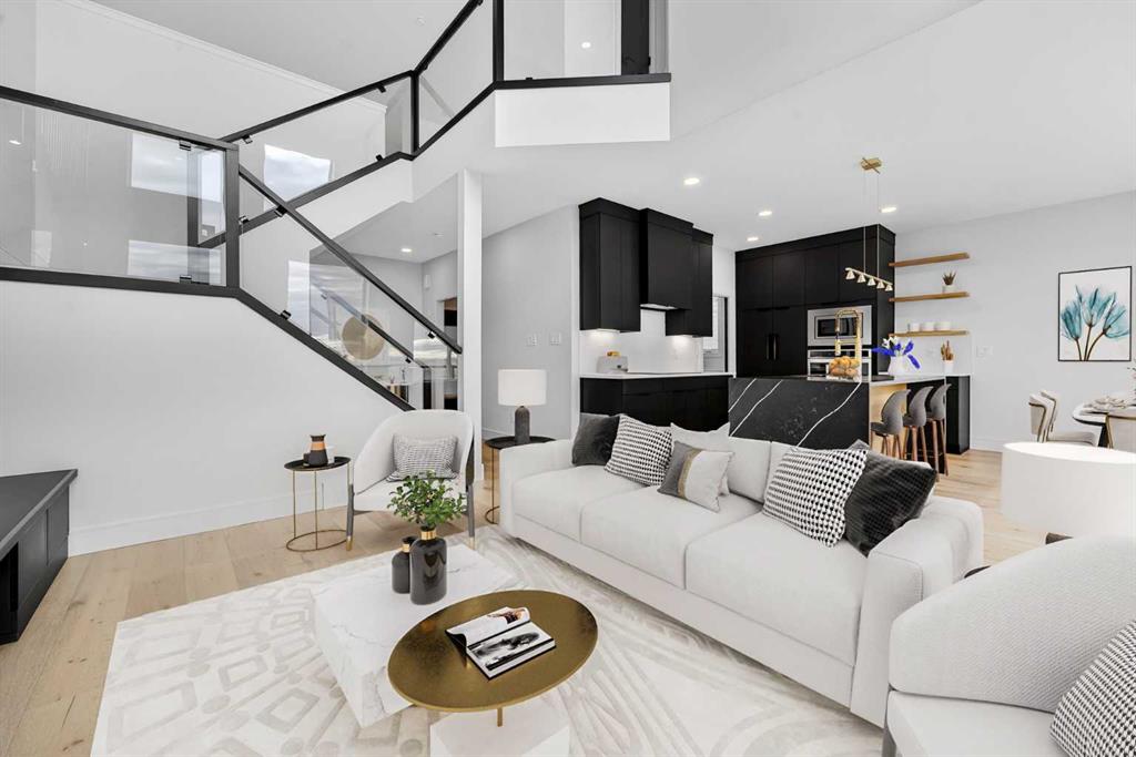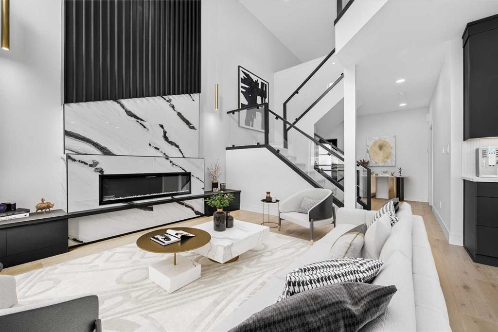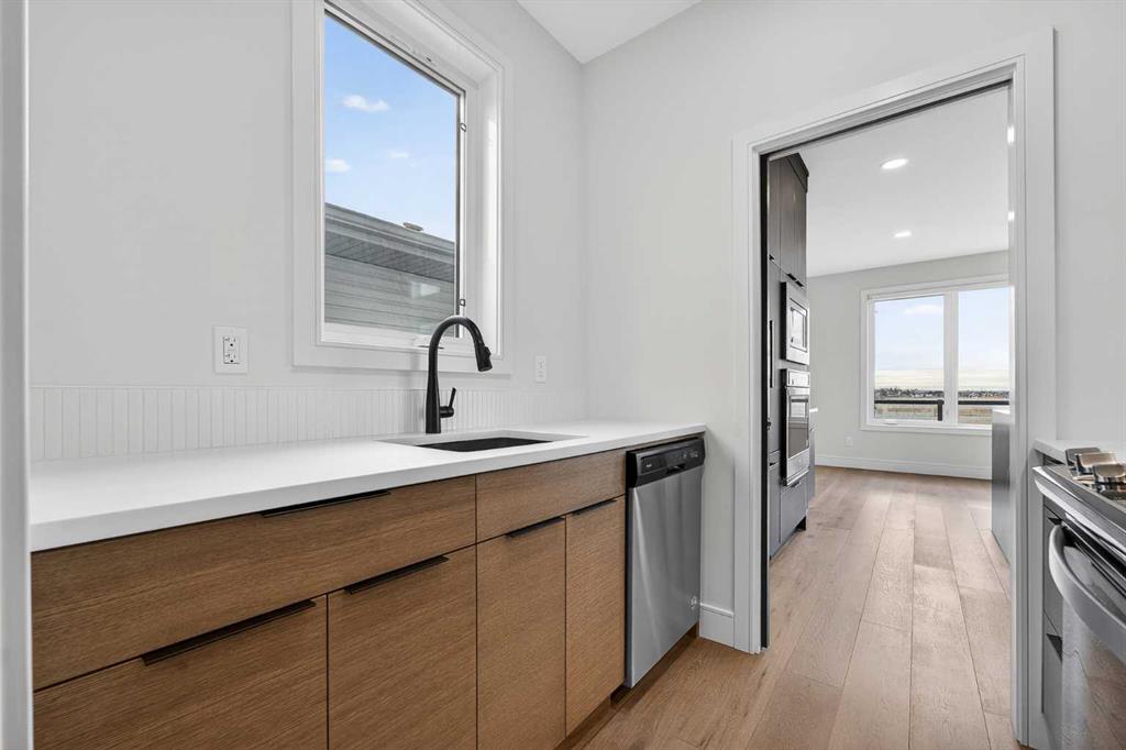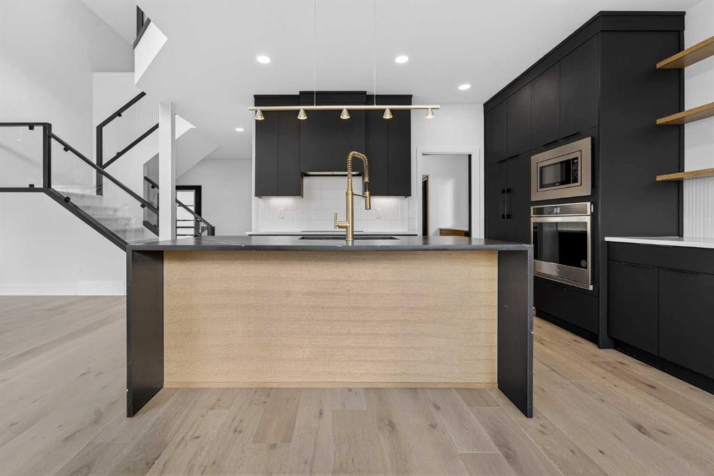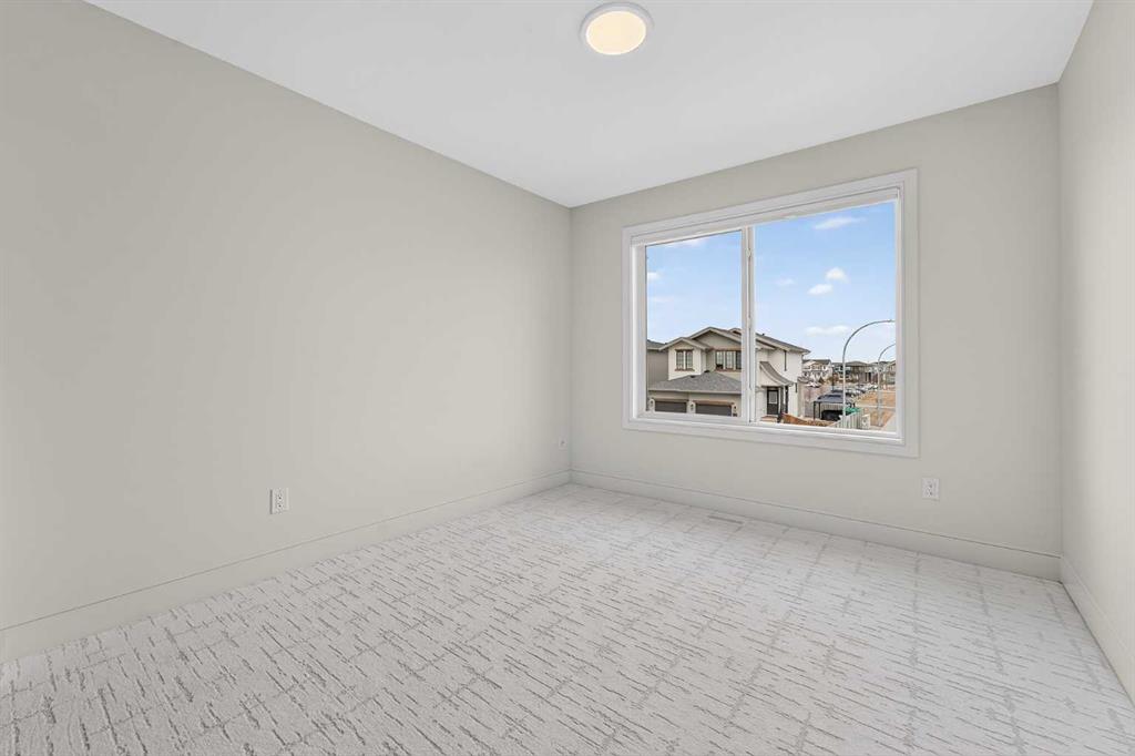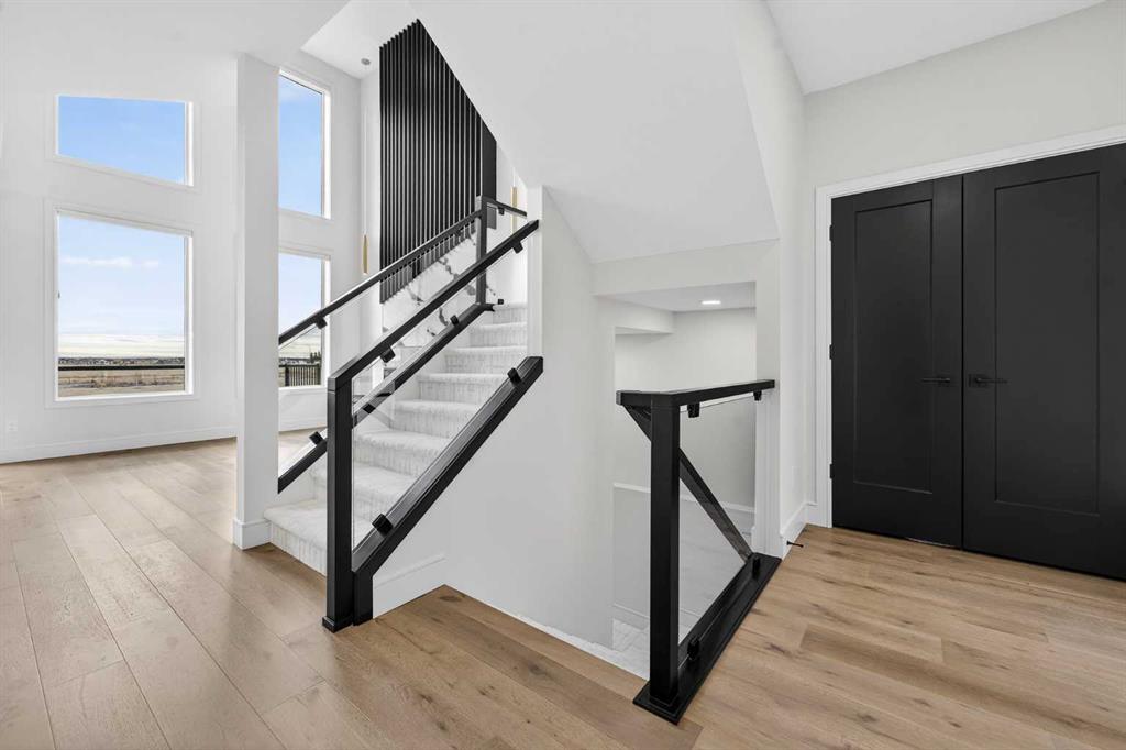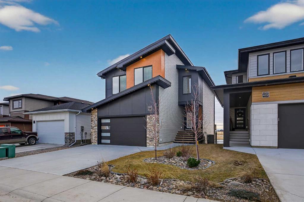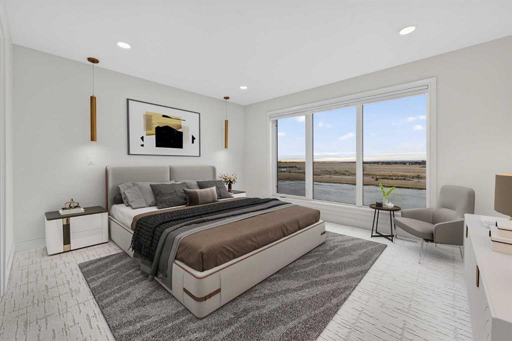 This brand new Stranville Living Master Builder showhome showcases the highly sought-after Perth 2 floor plan and is perfectly positioned in Southbrook with tranquil pond views and quick access to some of Lethbridge’s best amenities. Fully developed with a walkout basement, this home was designed to impress from the moment you step inside, blending bold architectural choices with everyday functionality in a way only a true showhome can. The main floor is anchored by a stunning open-to-above living room, where oversized windows frame the pond behind the home and flood the space with natural light. The fireplace is a true design feature here, set against dramatic vertical detailing and sleek modern finishes that instantly draw your eye upward and emphasize the home’s scale. The kitchen is equally striking, featuring a waterfall matte black island that grounds the space, paired with contrasting cabinetry, statement lighting, and a butler’s pantry complete with a gas range—ideal for both entertaining and keeping the main kitchen pristine. Step out back onto the full-length deck and enjoy uninterrupted pond views, making this space as functional as it is scenic. Upstairs, the second level offers three spacious bedrooms and a large bonus room that works perfectly as a family lounge, media space, or kids’ retreat. The primary bedroom is a standout, with expansive pond views that feel calm and private, and an ensuite that rivals a luxury hotel. Here you’ll find a floating vanity with undermount lighting, a skylight that fills the room with natural light, a standalone soaker tub, and a beautifully finished curbless shower. The walk-in closet is thoughtfully designed to connect directly through to the main floor laundry room, adding a level of convenience that’s both smart and intentional. The fully developed walkout basement continues the home’s versatility, offering two additional bedrooms, a four-piece bathroom, and direct access to the backyard and pond beyond. Whether you’re looking for space for family, guests, or simply want a home that showcases premium design from top to bottom, this Southbrook showhome delivers on every level with views, layout, and finishes that truly set it apart.