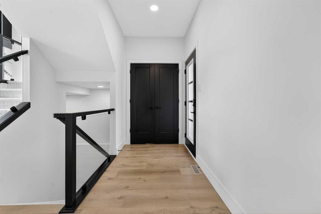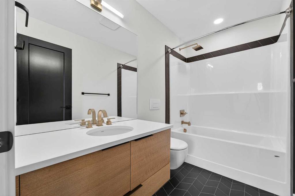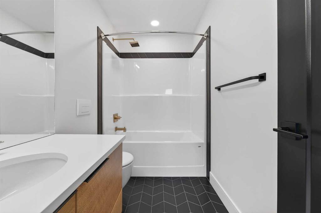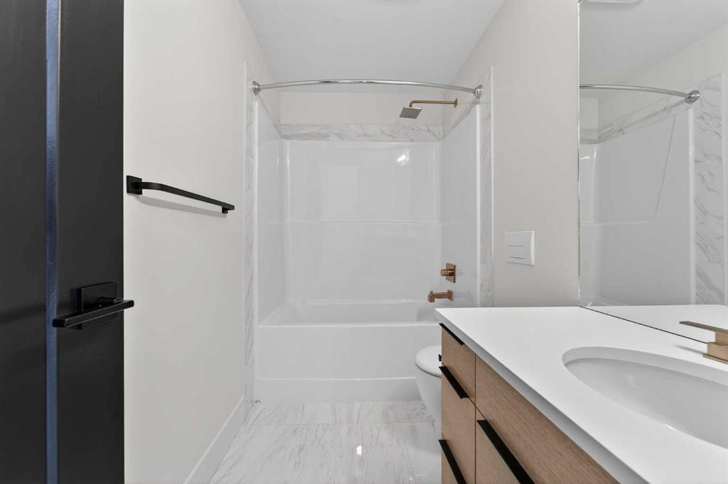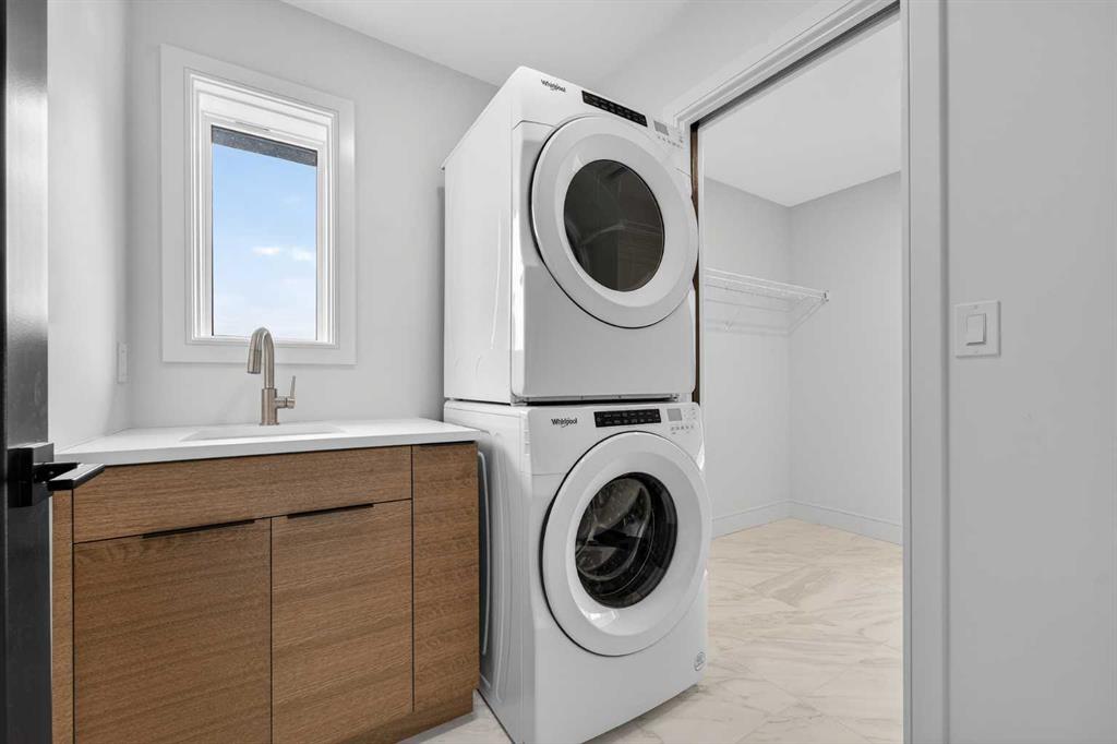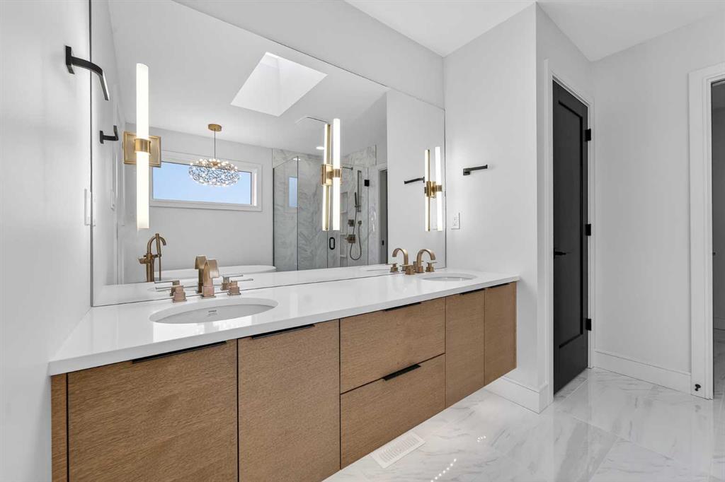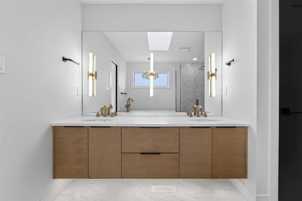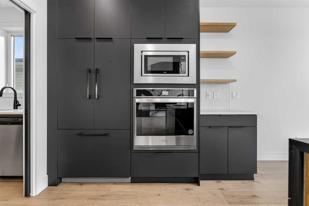 This brand new Stranville Living Master Builder showhome showcases the highly sought-after Perth 2 floor plan and is perfectly positioned in Southbrook with tranquil pond views and quick access to some of Lethbridge’s best amenities. Fully developed with a walkout basement, this home was designed to impress from the moment you step inside, blending bold architectural choices with everyday functionality in a way only a true showhome can. The main floor is anchored by a stunning open-to-above living room, where oversized windows frame the pond behind the home and flood the space with natural light. The fireplace is a true design feature here, set against dramatic vertical detailing and sleek modern finishes that instantly draw your eye upward and emphasize the home’s scale. The kitchen is equally striking, featuring a waterfall matte black island that grounds the space, paired with contrasting cabinetry, statement lighting, and a butler’s pantry complete with a gas range—ideal for both entertaining and keeping the main kitchen pristine. Step out back onto the full-length deck and enjoy uninterrupted pond views, making this space as functional as it is scenic. Upstairs, the second level offers three spacious bedrooms and a large bonus room that works perfectly as a family lounge, media space, or kids’ retreat. The primary bedroom is a standout, with expansive pond views that feel calm and private, and an ensuite that rivals a luxury hotel. Here you’ll find a floating vanity with undermount lighting, a skylight that fills the room with natural light, a standalone soaker tub, and a beautifully finished curbless shower. The walk-in closet is thoughtfully designed to connect directly through to the main floor laundry room, adding a level of convenience that’s both smart and intentional. The fully developed walkout basement continues the home’s versatility, offering two additional bedrooms, a four-piece bathroom, and direct access to the backyard and pond beyond. Whether you’re looking for space for family, guests, or simply want a home that showcases premium design from top to bottom, this Southbrook showhome delivers on every level with views, layout, and finishes that truly set it apart.