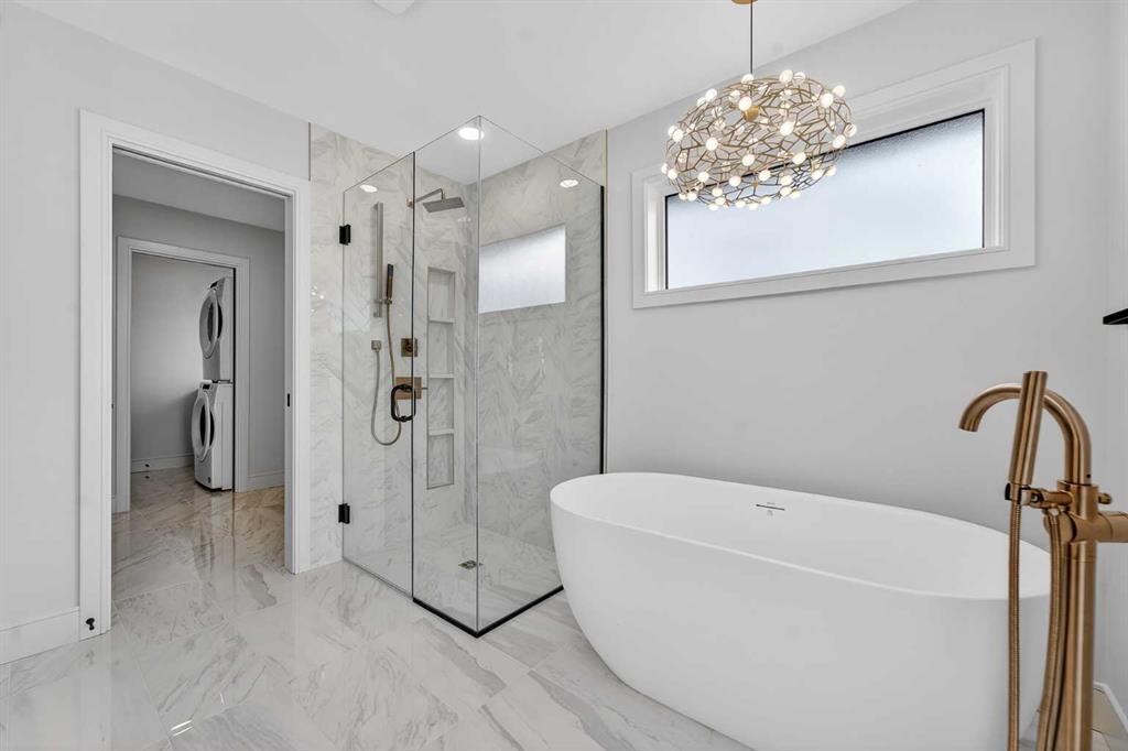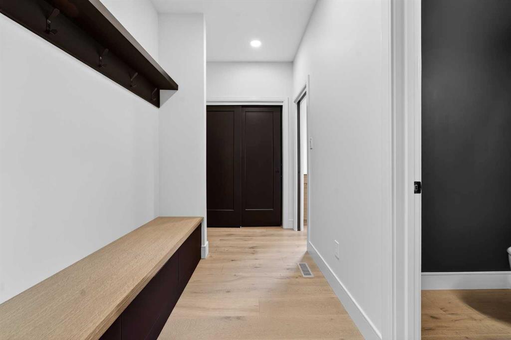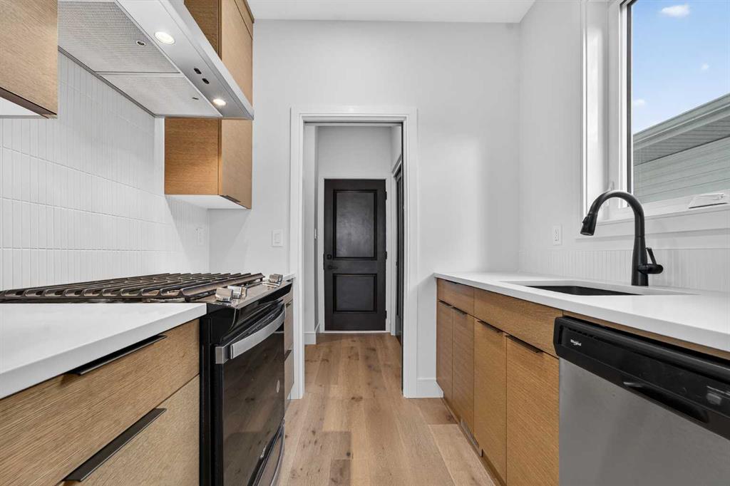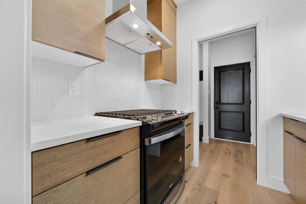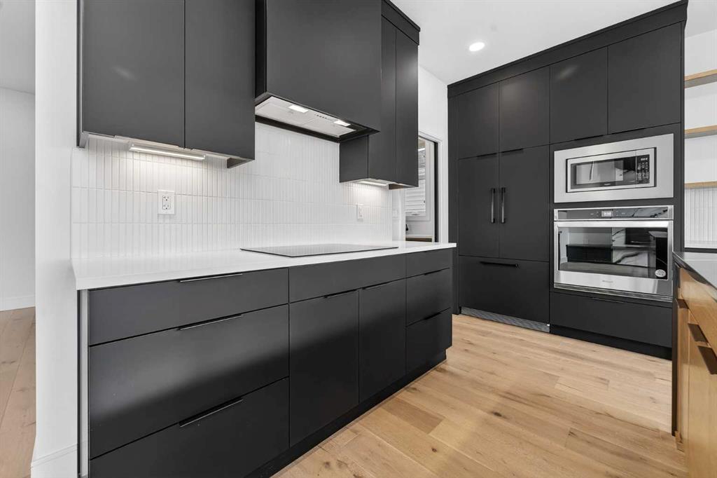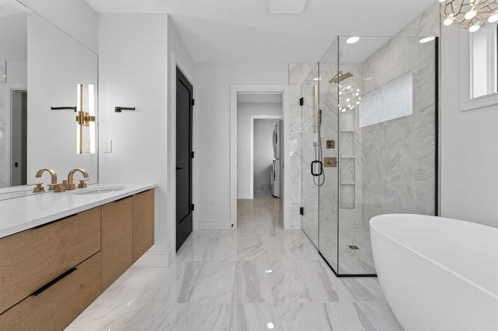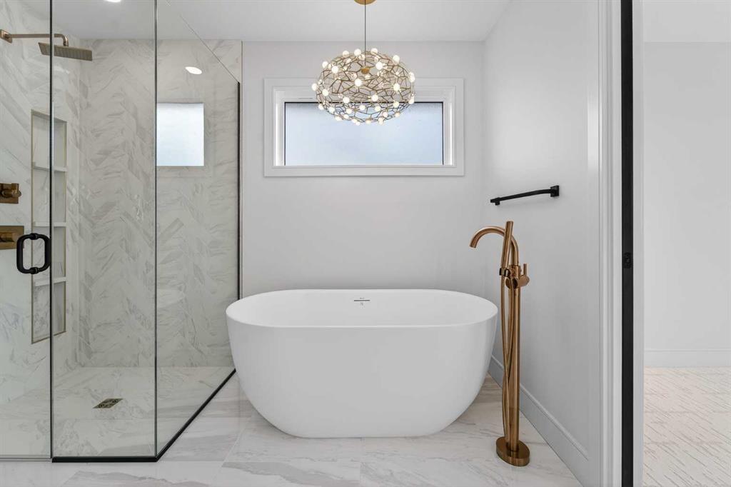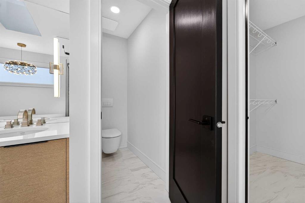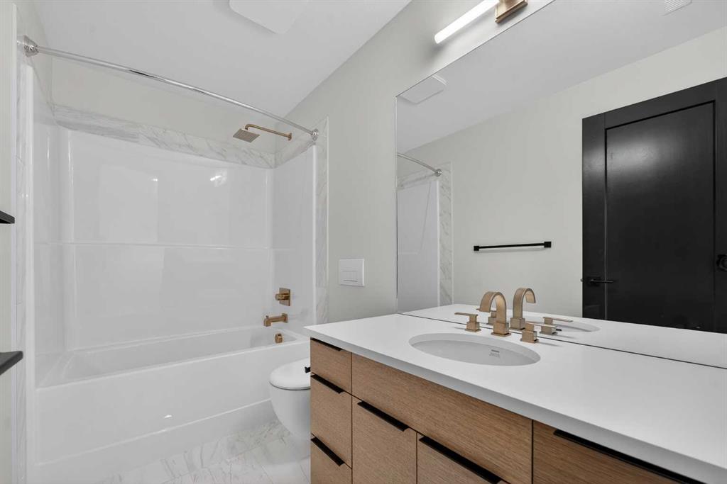This brand new Stranville Living Master Builder showhome showcases the highly sought-after Perth 2 floor plan and is perfectly positioned in Southbrook with tranquil pond views and quick access to some of Lethbridge’s best amenities. Fully developed with a walkout basement, this home was designed to impress from the moment you step inside, blending bold architectural choices with everyday functionality in a way only a true showhome can. The main floor is anchored by a stunning open-to-above living room, where oversized windows frame the pond behind the home and flood the space with natural light. The fireplace is a true design feature here, set against dramatic vertical detailing and sleek modern finishes that instantly draw your eye upward and emphasize the home’s scale. The kitchen is equally striking, featuring a waterfall matte black island that grounds the space, paired with contrasting cabinetry, statement lighting, and a butler’s pantry complete with a gas range—ideal for both entertaining and keeping the main kitchen pristine. Step out back onto the full-length deck and enjoy uninterrupted pond views, making this space as functional as it is scenic. Upstairs, the second level offers three spacious bedrooms and a large bonus room that works perfectly as a family lounge, media space, or kids’ retreat. The primary bedroom is a standout, with expansive pond views that feel calm and private, and an ensuite that rivals a luxury hotel. Here you’ll find a floating vanity with undermount lighting, a skylight that fills the room with natural light, a standalone soaker tub, and a beautifully finished curbless shower. The walk-in closet is thoughtfully designed to connect directly through to the main floor laundry room, adding a level of convenience that’s both smart and intentional. The fully developed walkout basement continues the home’s versatility, offering two additional bedrooms, a four-piece bathroom, and direct access to the backyard and pond beyond. Whether you’re looking for space for family, guests, or simply want a home that showcases premium design from top to bottom, this Southbrook showhome delivers on every level with views, layout, and finishes that truly set it apart.