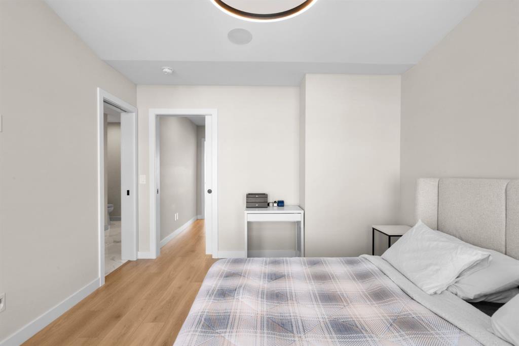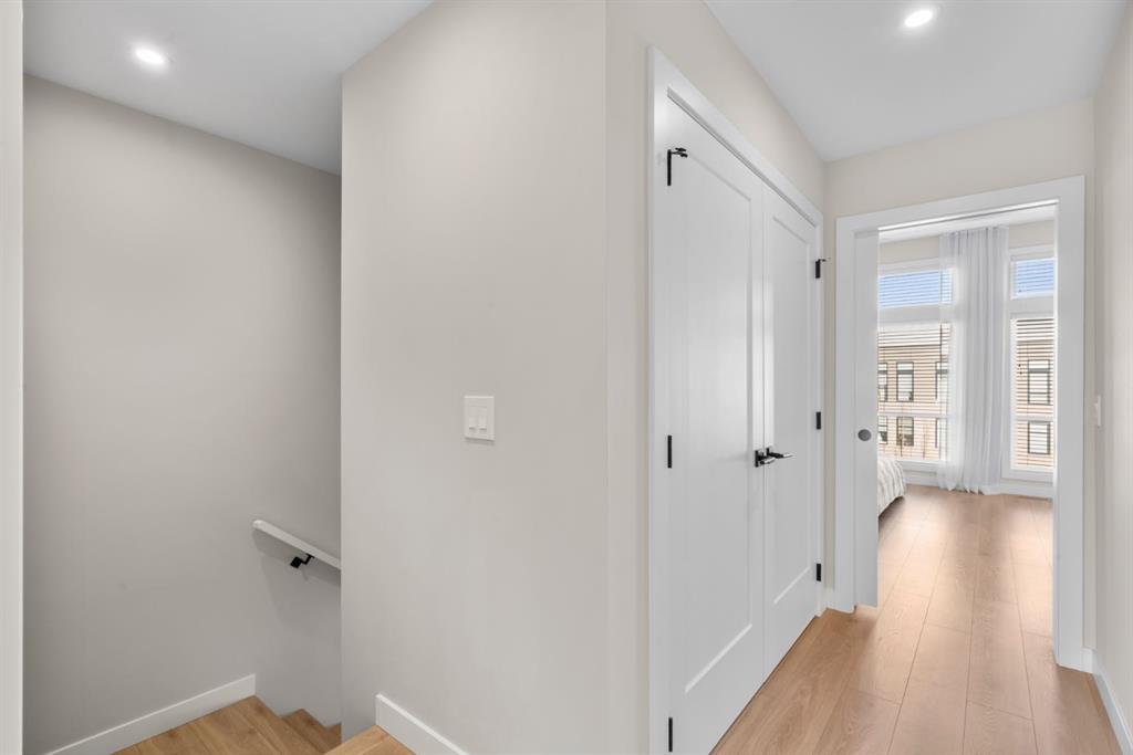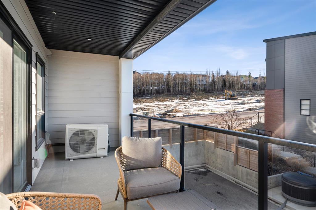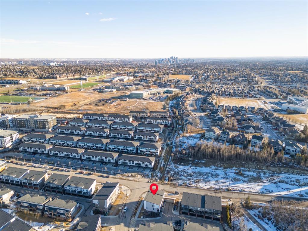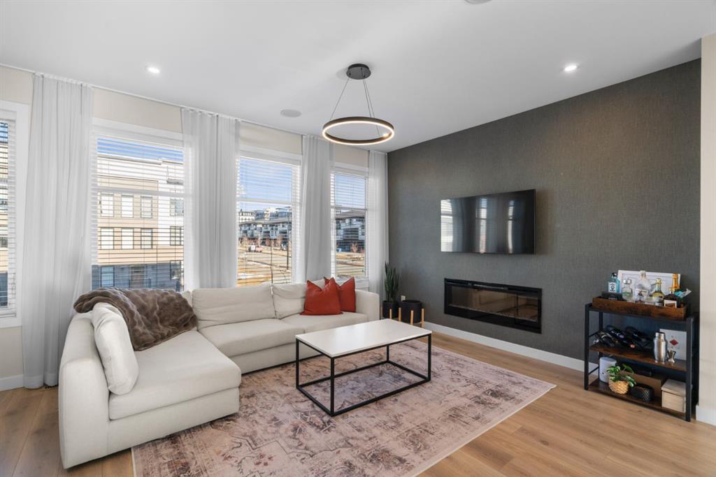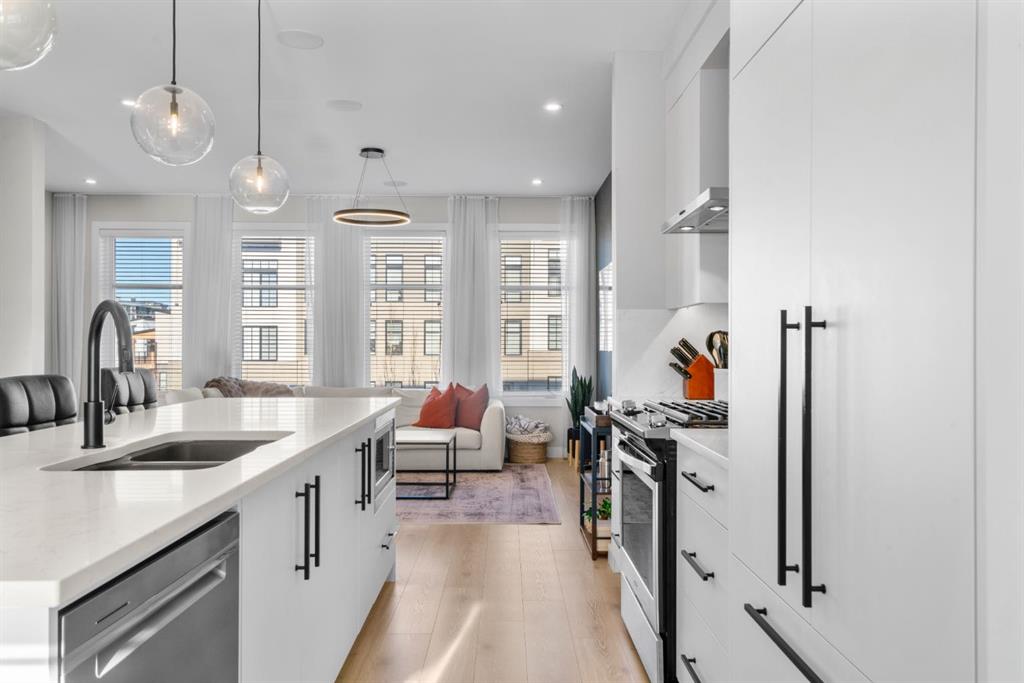 EXCEPTIONAL VALUE IN CALGARY’S PRESTIGIOUS SOUTHWEST! This beautifully maintained former Truman Homes show home showcases elevated design, premium finishes, and thoughtful upgrades throughout. Welcome to this stunning three-storey brick townhome, thoughtfully designed for modern living and timeless style. This residence features a custom gourmet kitchen, an expansive owner’s retreat with a spa-inspired ensuite, central air conditioning, a heated double attached garage, a covered balcony, and refined details at every turn. Additional highlights include wrought iron railing accents and a striking 46-inch electric fireplace. The walk-up front entrance provides a warm, street-facing welcome designed for a variety of lifestyles, picture crisp mornings with coffee in hand as you step out to nearby parks, scenic pathways, and local favourites. Inside, a spacious foyer and convenient access from the oversized heated double attached garage set the tone with ample room for daily essentials. This level also offers a versatile bedroom or home office, ideal for guests or working from home. The second level showcases the heart of the home with an open-concept kitchen, dining, and family area designed for both comfort and sophistication. The chef-inspired kitchen impresses with a large quartz island, continuous quartz backsplash, gas range, built-in microwave, and panelled refrigerator for a seamless, upscale finish. Step onto the covered balcony just off the dining area, perfect for year-round grilling and relaxing. The upper level hosts dual primary suites, each complete with walk-in closets and private spa-style ensuites, along with a convenient upper-floor laundry room. Durable laminate flooring flows throughout, while matte black lighting and hardware create a cohesive, contemporary aesthetic. Experience the perfect blend of luxury, location, and lifestyle in one of Calgary’s most desirable communities.