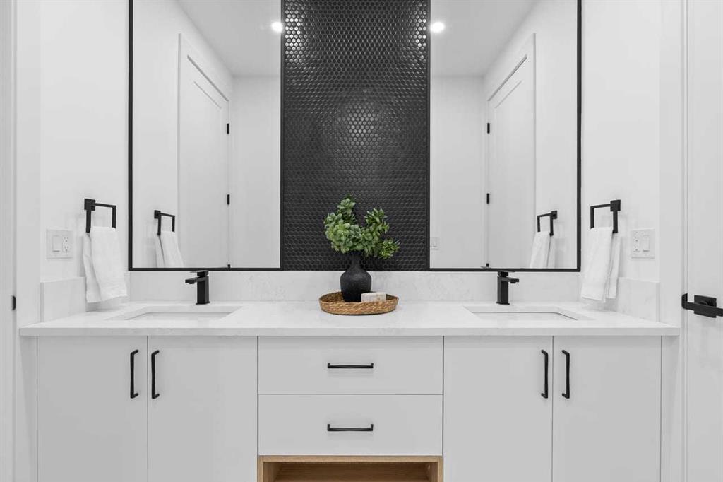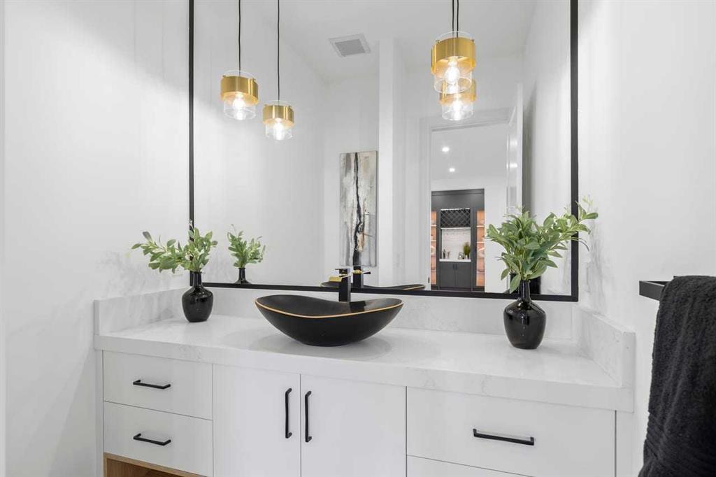 Open house, Feb 7&8 1-4 Set within the prestigious community of Patterson Heights – The Point - this exceptional luxury residence offers over 5,000 sq. ft. of elevated living designed for comfort and functionality. From the moment you arrive, the home makes a statement with a grand entryway highlighted by a floor-to-ceiling custom closet. Just off the entrance, a well-appointed mudroom features a walk-in closet and a striking full-height wall unit, providing direct access to the oversized double garage. The garage is fully outfitted with EV charging outlets, a gas heater rough-in, and hot and cold water taps. Completing this level is a full bathroom with quartz countertops and a floor-to-ceiling glass shower. The main living space is defined by 10-foot ceilings and wide vinyl plank flooring, creating a clean, modern flow throughout. The living room offers warmth and style with a custom wall unit and ambient LED lighting, while the dedicated bar area, complete with a bar fridge, is ideal for hosting. A private, light-filled gym with recessed lighting, floating shelving, and generous space for equipment. A striking open-riser staircase and a private elevator connect all 3 levels and lead to the stunning 2nd floor. Here, you’ll find a bright home office overlooking a large window, a sleek powder room, and a refined dining area anchored by a built-in LED-lit wall feature. Glass sliding doors open to a large East facing balcony, while the family room impresses with a coffered ceiling, art-block feature wall, and gas fireplace. Additional sliding doors lead to a fully landscaped backyard complemented by a composite rear deck with a gas line, backing onto peaceful green space, where nature and wildlife create a serene setting. The chef-inspired kitchen anchors the home with a quartz waterfall island, hidden cabinetry, two-tone modern cabinets, and high-end stainless steel appliances. A fully equipped spice kitchen allows for effortless entertaining, while a modern breakfast nook with a statement light fixture completes the space. The upper level is a private sanctuary, beginning with a grand primary suite set behind French doors. Enjoy a private balcony overlooking green space, a juice bar, in-floor heated ensuite, and a spa-style bathroom featuring a freestanding tub and a glass-enclosed steam shower with rainfall head and granite seating. Two additional bedrooms share a Jack & Jill bathroom with quartz countertops, while a fourth bedroom offers its own full bath and walk-in closet. A thoughtfully finished laundry room enhances everyday convenience. A bonus room with downtown views and an additional wall unit completes the upper level, which continues the home’s open feel with 9-foot ceilings throughout. Additional highlights: basement under-slab heating rough-in, a 75-gallon hot water tank, two high-efficiency furnaces, two central A/C units, and extensive built-in cabinetry. Don't miss the opportunity to own this exceptional luxury home. Book your private showing today!