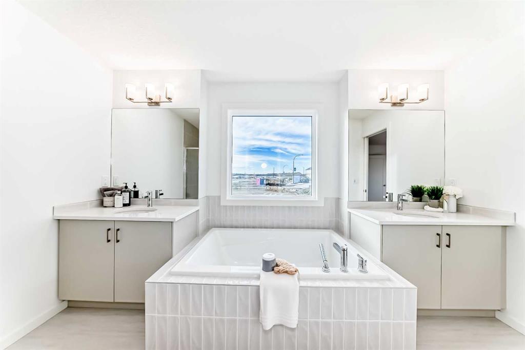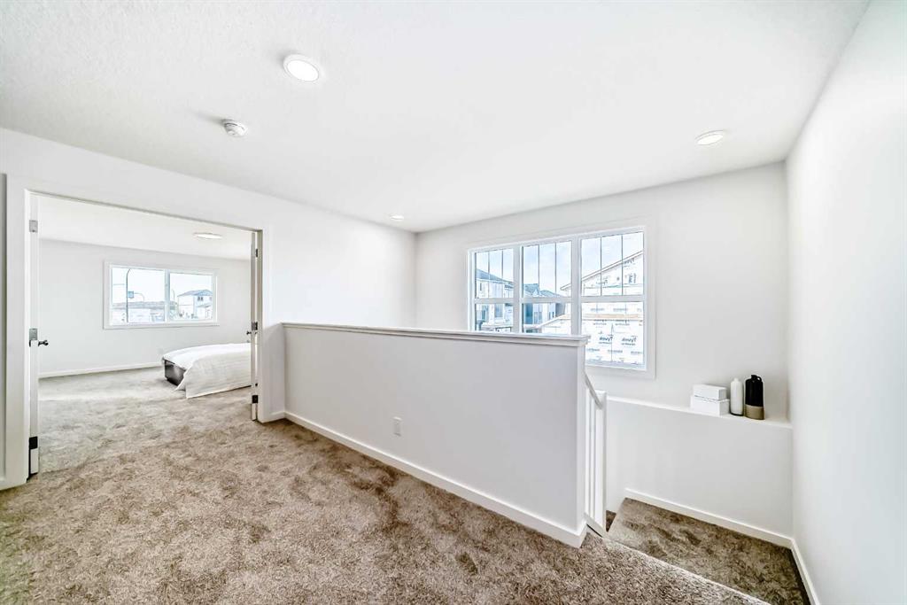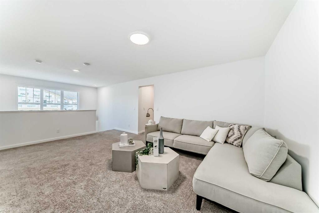 This is a move-up home that knows EXACTLY what it’s doing… A FULL BEDROOM AND FULL BATH ON THE MAIN FLOOR set this home apart—ideal for guests, aging parents, or anyone who benefits from a private space without having to use the stairs. It’s a layout choice that adds real-world flexibility without interrupting the effortless flow of everyday life. The heart of the home is the kitchen, where thoughtful design meets purposeful details. A 36” GAS COOKTOP anchors a generous island, paired with a CHIMNEY-STYLE HOOD FAN AND BUILT-IN WALL OVEN AND MICROWAVE to keep countertops clean and uncluttered. Cabinets reach to the ceiling, the layout connects seamlessly to dining and living areas, and an electric fireplace feature wall gives the great room a refined focal point. Upstairs, a BRIGHT BONUS ROOM adds space for homework, movie nights, or quiet retreat. The primary bedroom offers a polished FIVE-PIECE ENSUITE, and two additional bedrooms and a well-appointed LAUNDRY ROOM—WITH BUILT-IN CABINETRY, COUNTERTOP, AND SINK—add function where it matters most for daily family life. Set in Sirocco at Pine Creek, this address pairs quiet, elevated living with easy access to everyday essentials and recreation. WINDING PATHWAYS AND PARKS thread through the neighbourhood, and the nearby Sirocco Golf Club and surrounding green spaces give every day a getaway feel—yet schools, shopping, and dining in Silverado, Walden, Legacy and Shawnessy remain just minutes away. Outside, the WIDER FRONTAGE AND GENEROUS LOT footprint offer breathing room that’s rare in new builds, while the double attached garage, side entry to the basement, TANKLESS HOT WATER and thoughtful upgrades throughout make this a home that delivers both polish and practicality. Here, refined living and smart design come together in a community that feels like home from day one. If you’re considering a move-up home, this one belongs on your shortlist. It’s an easy one to say yes to once you’ve seen it in person. • PLEASE NOTE: Photos are of a DIFFERENT Spec Home of the same model – fit and finish may differ. Interior selections and floorplans shown in photos.