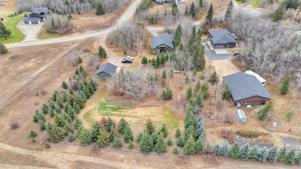 LOCATED BESIDE WOLF CREEK GOLF COURSE is this beautiful acreage with all the bells and whistles! This fully finished home offers granite counters, a gas cooktop, and central air conditioning. The open main floor features a bright kitchen and living area with 2 spacious bedrooms. The finished basement adds 2 more bedrooms and a large family room. Enjoy both a double attached and double detached garage, plus a gas BBQ hookup and private outdoor space. A perfect blend of country living and modern comfort, just minutes from town! Perfectly situated close to the highway 2 corridor and between Lacombe and Ponoka.