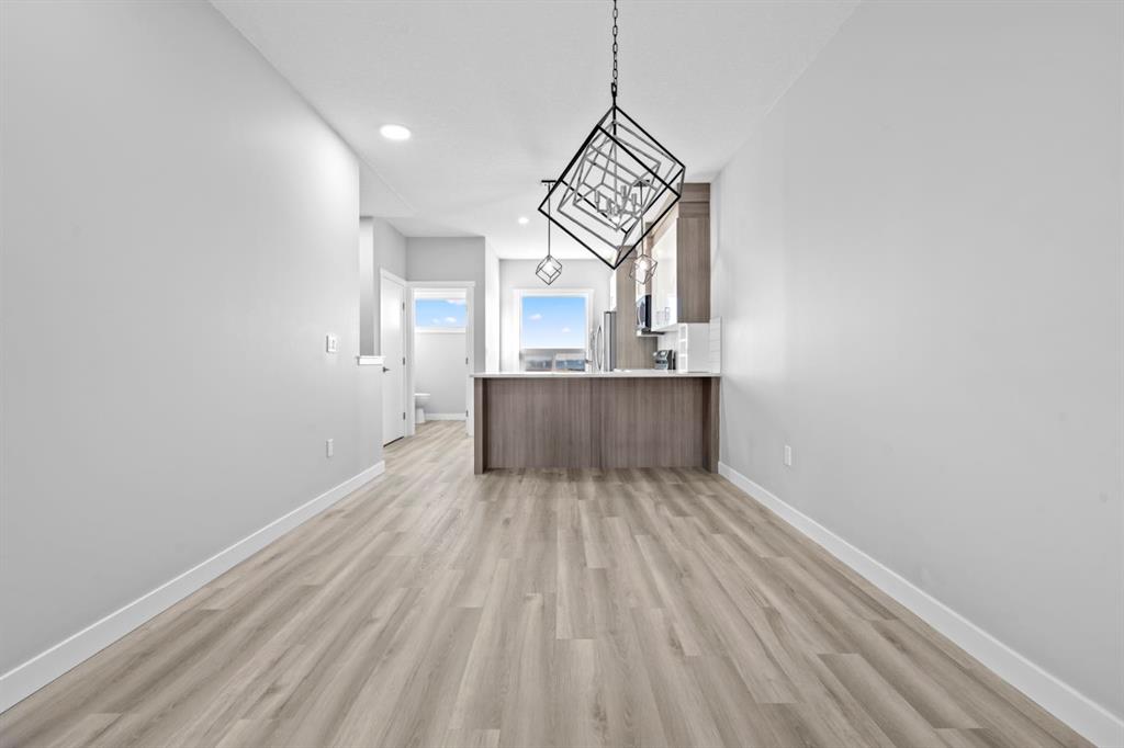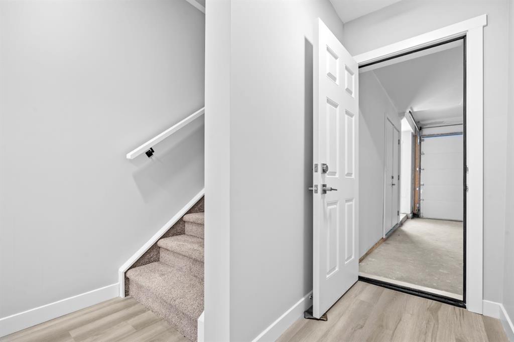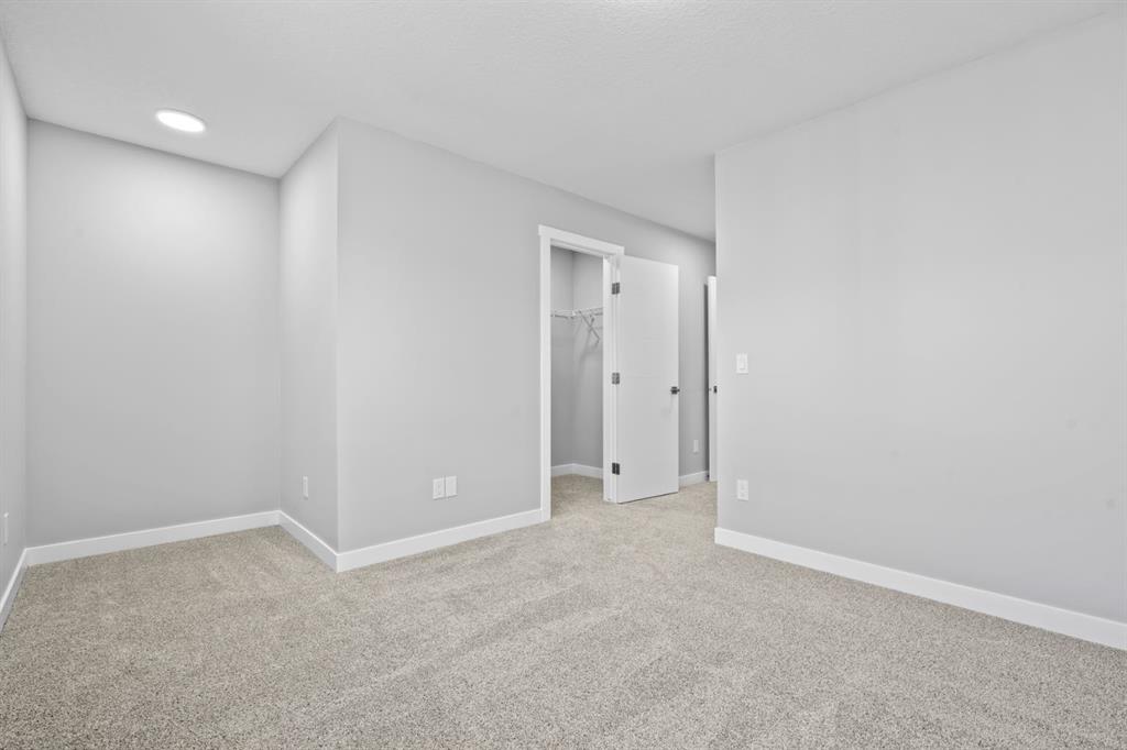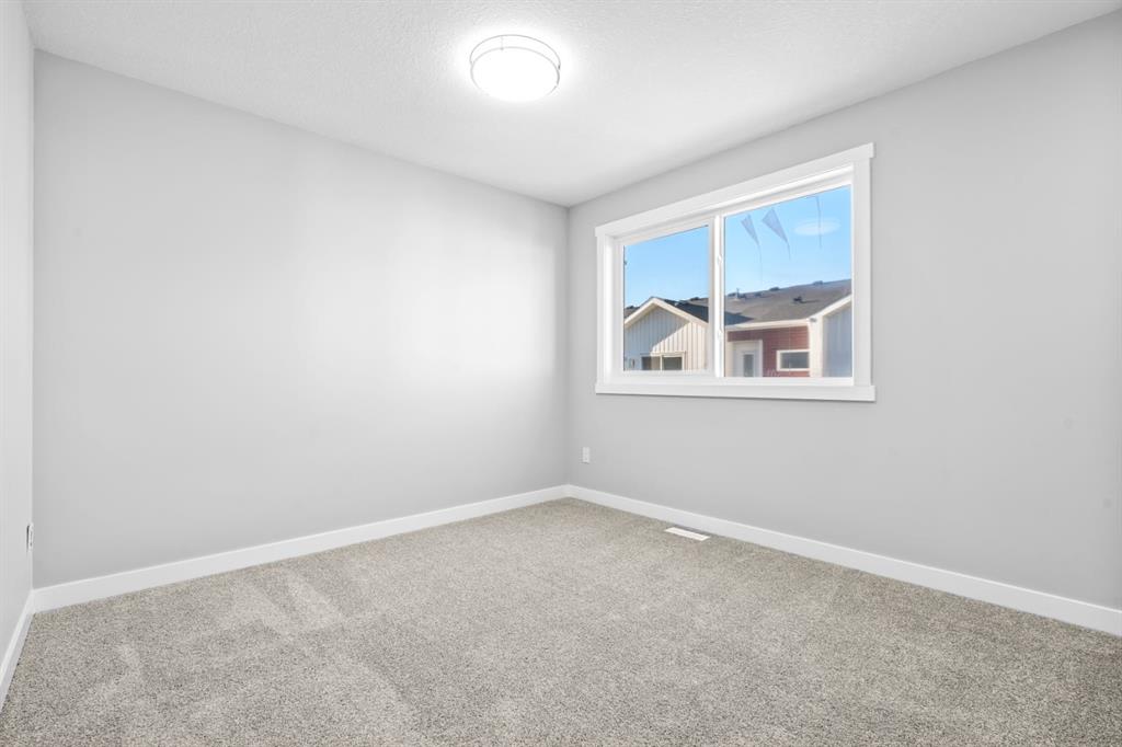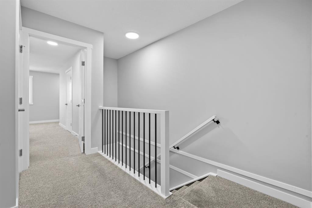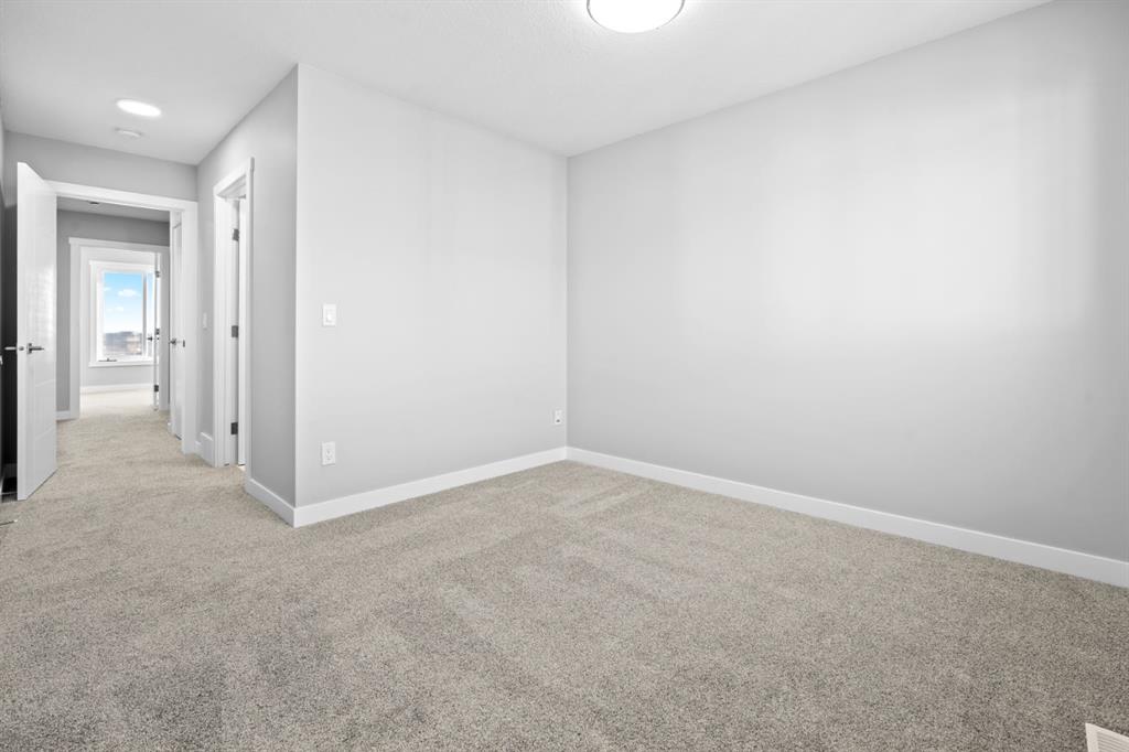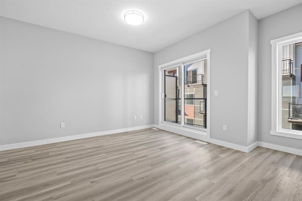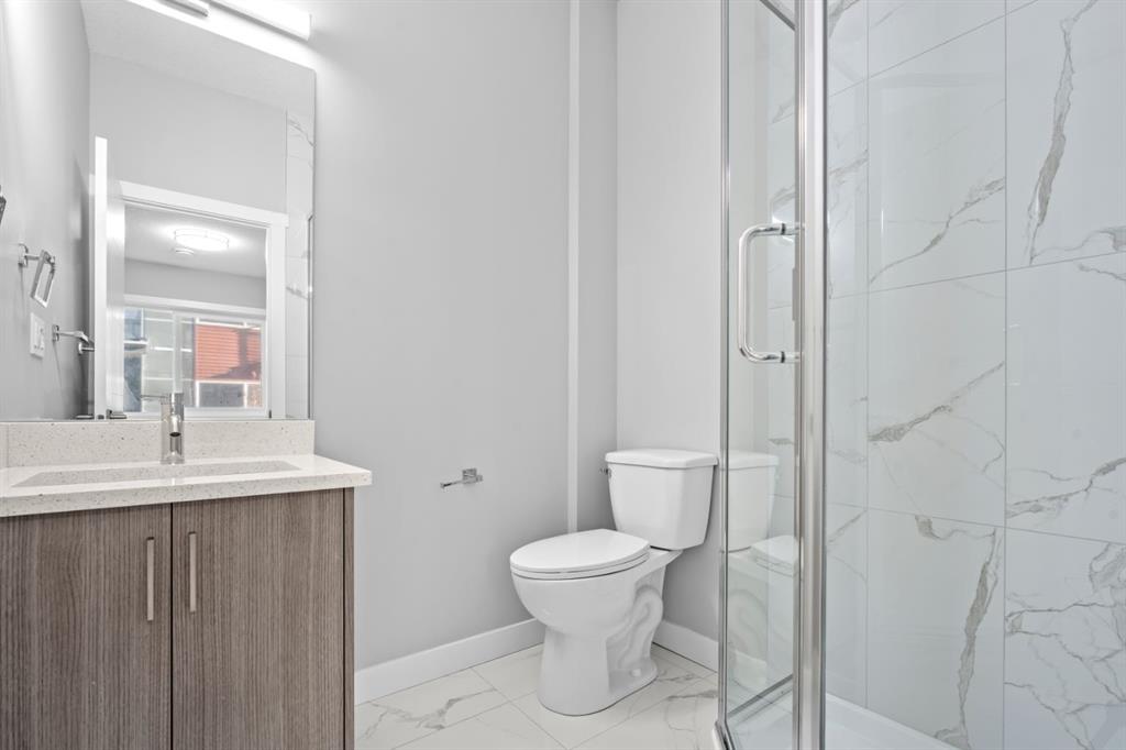 This elegant modern 3-storey townhouse stands out with a thoughtful balance of privacy, smart use of space, featuring three generously sized bedrooms—each with its own ensuite bathroom, making it an excellent fit for families, working professionals, or shared and multigenerational living. The ground level offers a welcoming foyer and a versatile bedroom complete with a private ensuite, ideal as a guest suite, home office, or quiet personal space. The main living level is filled with natural light and designed for everyday comfort and entertaining, showcasing an open-concept layout, oversized windows, and a contemporary kitchen outfitted with stainless steel appliances, modern lighting, and a practical breakfast counter. A convenient powder room and access to a private balcony complete this floor. The upper level features two spacious primary-style bedrooms, both with their own ensuites for added convenience. One of the suites includes a walk-in closet and double vanity, creating a comfortable retreat. A stacked laundry closet on the top floor adds everyday ease. Additional features include a single attached garage, low condo fees, visitor parking, and planned nearby green space. Located with quick access to Stoney Trail, this home offers effortless commuting and easy access to daily amenities. Stylish, functional, and move-in ready—this townhome delivers comfort and flexibility in a highly accessible location. **Photos with furniture are virtually staged.