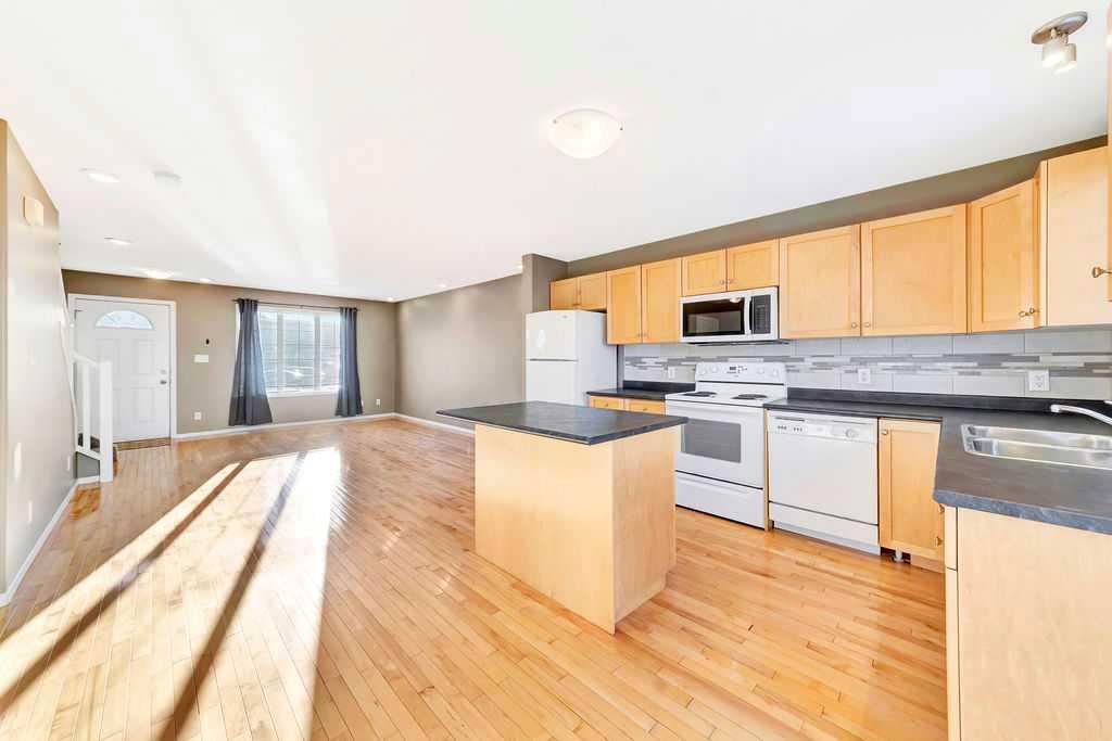 This well-maintained townhouse offers a functional layout and comfortable living space. The main floor features hardwood flooring throughout and an open-concept design that seamlessly connects the living room, dining area, and kitchen—ideal for both everyday living and entertaining. A convenient 2-piece powder room is located just off the kitchen. Upstairs, you’ll find three generously sized bedrooms and a full 4-piece bathroom. The unfinished basement provides excellent potential for future development and includes the laundry area, allowing the next owner to customize the space to their needs. Two parking stalls are located directly outside the unit, offering added convenience. A great opportunity for first-time buyers, investors, or anyone looking for low-maintenance living.