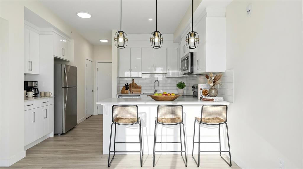 Welcome To This Brand-New, Move-In-Ready 2-Bedroom, 1-Bathroom Condo In The Vibrant And Fast-Growing Skyview Community Of NE Calgary. Thoughtfully Designed For Modern Living, This Bright And Airy Home Features 9-Foot Ceilings And Expansive Windows That Flood The Open-Concept Layout With Natural Light. Wide-Plank Luxury Vinyl Flooring And Quartz Countertops Throughout Create A Sleek, Contemporary Finish. The Fully Upgraded Kitchen Is Both Stylish And Highly Functional, Showcasing Stainless Steel Appliances, An Over-The-Range Microwave, Soft-Close Cabinetry, A Pantry, Quartz Countertops, And A Convenient Breakfast Bar—Perfect For Casual Dining, Working From Home, Or Entertaining. The Kitchen Flows Seamlessly Into The Living And Dining Areas, Offering A Warm And Inviting Space To Relax Or Host Guests. This Unit Features Two Generously Sized Bedrooms And A Modern 4-Piece Bathroom With Quartz Countertops And Refined Finishes. Additional Highlights Include In-Suite Laundry, Upgraded Designer Window Treatments, And A Large Private Balcony With A BBQ Gas Line, Ideal For Summer Entertaining Or Enjoying Fresh Air And Open Views. The Home Is Complete With Titled Surface Parking, A Titled Storage Locker, And Secure Bike Racks, Providing Exceptional Convenience And Value. Located In A Newly Constructed Building, Residents Enjoy Low-Maintenance Living With Easy Access To Shopping, Schools, Public Transit, Major Amenities, Calgary International Airport, And Quick Connections To Stoney Trail For Effortless Commuting Throughout The City. Perfect For First-Time Buyers, Professionals, Or Investors, This Turnkey Condo Offers An Affordable Opportunity To Own In One Of Calgary’s Most Desirable And Rapidly Growing Communities. Why Rent When You Can Own Your Own Home And Start Building Equity? Move In, Make It Yours, And Enjoy The Pride Of Ownership—This Is A Must-See Opportunity. Please Note: Property Taxes Have Not Yet Been Assessed. ***Vacant Property, Some Photos Are Virtually Staged To Show Potential Furniture Arrangement. Original Photos Of Empty Rooms Are Also Included.***Additional Units Are Available—Contact Listing Agent For Details.