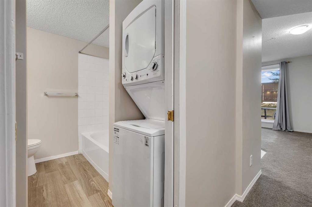 Main floor bachelor suite with south exposure. The flooring has been upgraded, & appliances upgraded, painting also updated. Good size kitchen & living room that has patio doors to access the south facing patio, 4pc bath & laundry combo & a flex room that can be used for the bedroom. There is 1 assigned outdoor parking stall. Condo fees are only 210.52 per month. Close to shopping, bus, green spaces, parks & all other amenities. Click on link to view 3D walk through.