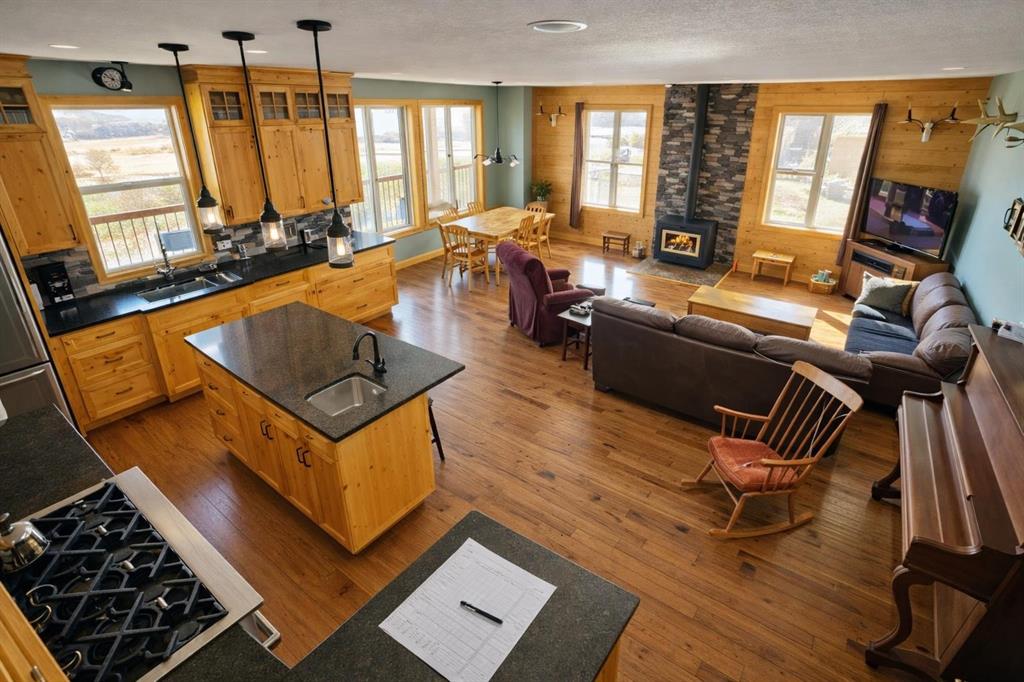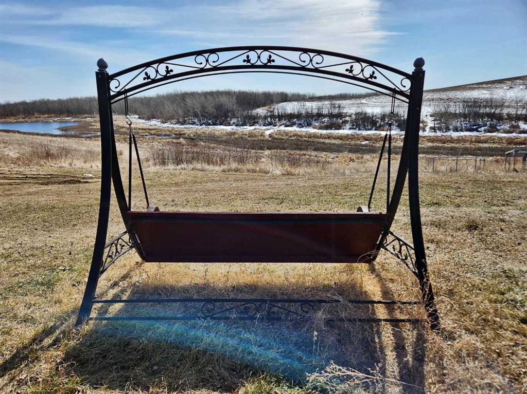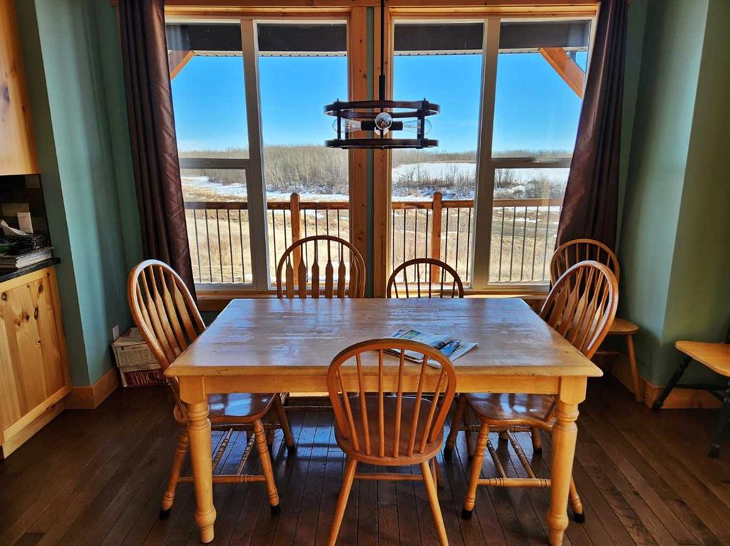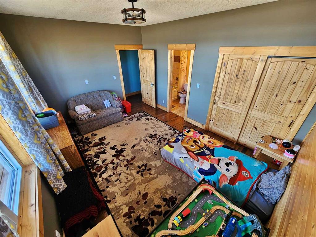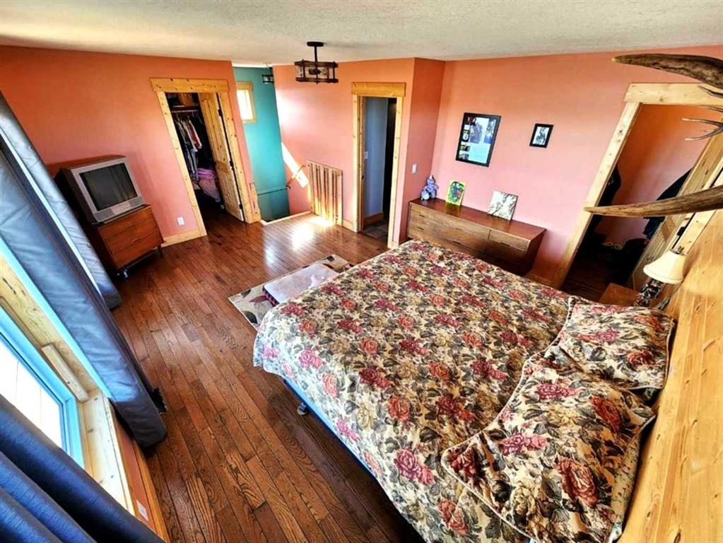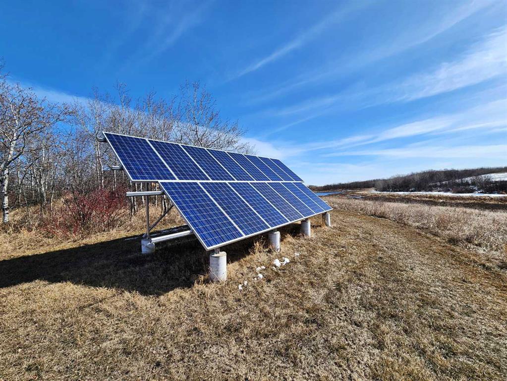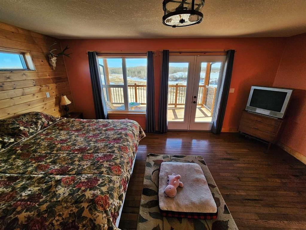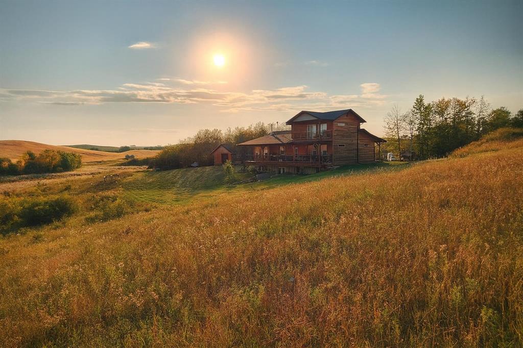 Off-grid paradise just 12 minutes from Stettler. This exceptional property offers over 3,400 sq ft of living space with 5 bedrooms and 4.5 bathrooms, set on approximately 150 acres—including ±100 acres of mature treed wildlife habitatand ±40 acres of productive cropland. Privacy is unmatched, with the nearest neighbour half a mile away, Crown land to the south and Nature Conservancy land to the east. The main floor features two bedrooms with private ensuites and large closets, an open-concept kitchen, dining, and living area with 9’ ceilings, hardwood flooring, and granite countertops throughout. A striking wood stove anchors the living space, radiating warmth while large windows capture breathtaking views in every direction. The kitchen is equipped with a stainless steel 8-burner, dual-oven propane range, ideal for entertaining or serious cooking. An office, half bath, and laundry room complete the main floor, with convenient access to the attached garage through a slate-tiled mudroom. A grand staircase leads to the upper-level primary retreat, featuring an ensuite bathroom, two walk-in closets, and access to a second-floor deck—the perfect spot to take in the peace, privacy, and sweeping bird’s-eye views. The walkout lower level offers in-floor heating, two additional bedrooms, a full bathroom, roughed-in wet bar area, cold storage, and a spacious living area ready for your personal finishing touches (stippled ceiling, primed walls). The mechanical room houses the 1,100-gallon water cistern, furnace, in-floor heating tank, hot water tank, power inverter, and deep-cycle battery bank. Outdoors, the yard site includes a mowed walking trail, secluded firepit area, ground-mounted solar array, a 200 sq ft multi-purpose/wood shed with additional solar panels, a smaller lean-to garden/wood shed, and young shelterbelt evergreens. A large, level area within the yard is ideal for a future shop. The surrounding woods feature multiple trails for walking or quadding, a spectacular toboggan hill, and a slough that attracts abundant wildlife and doubles as a classic outdoor hockey rink in winter. Power and water are available on the west side of the property, and subdivision is possible.
