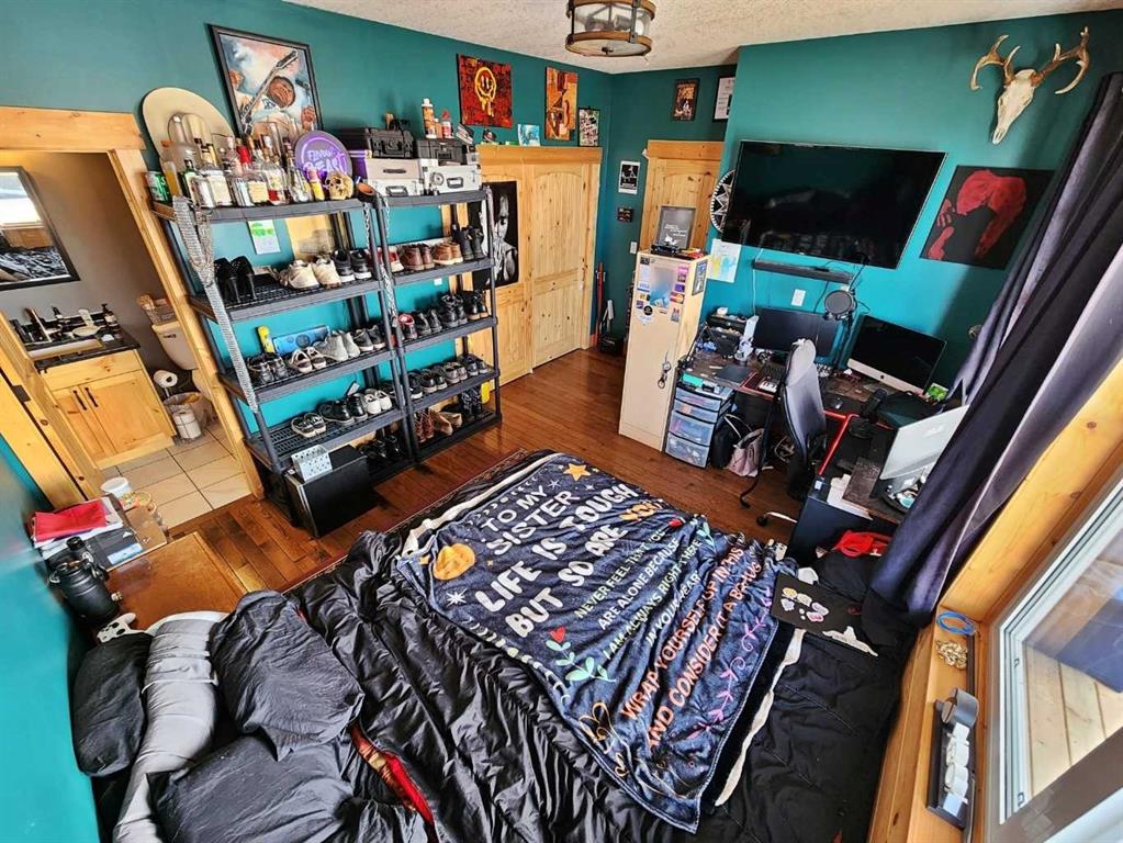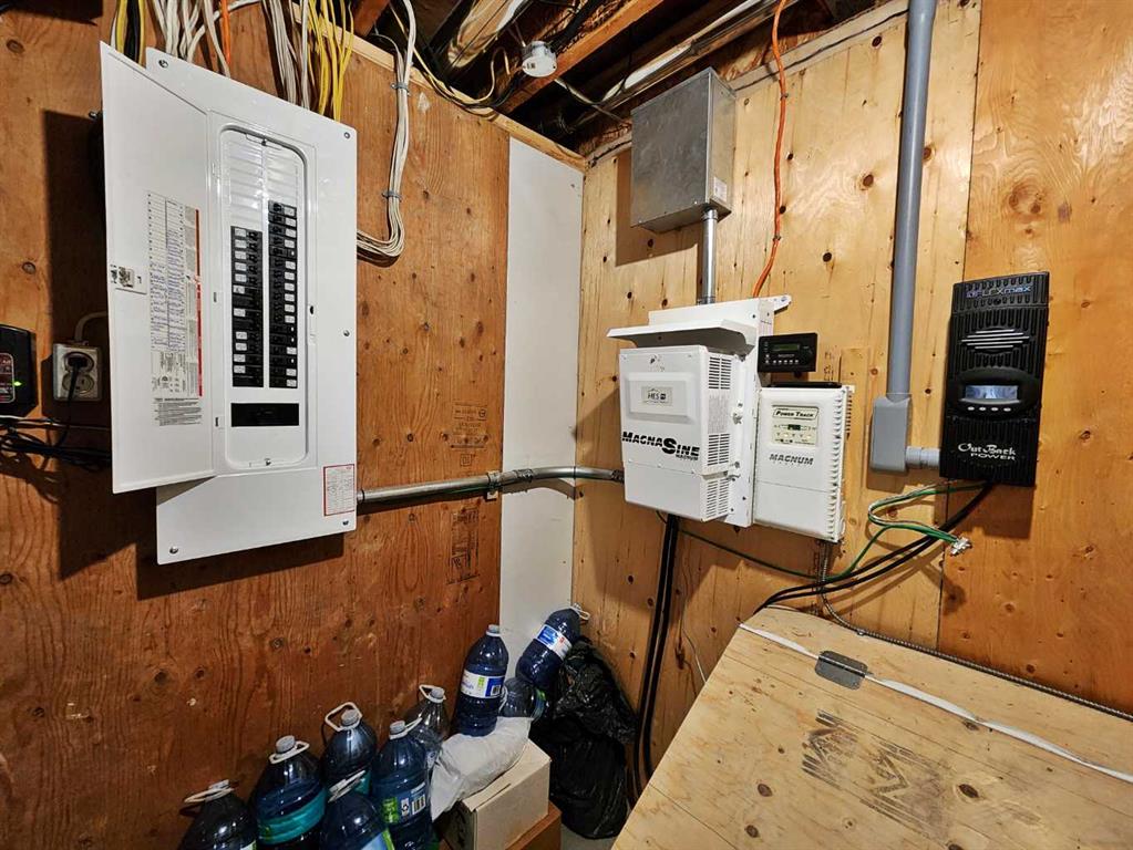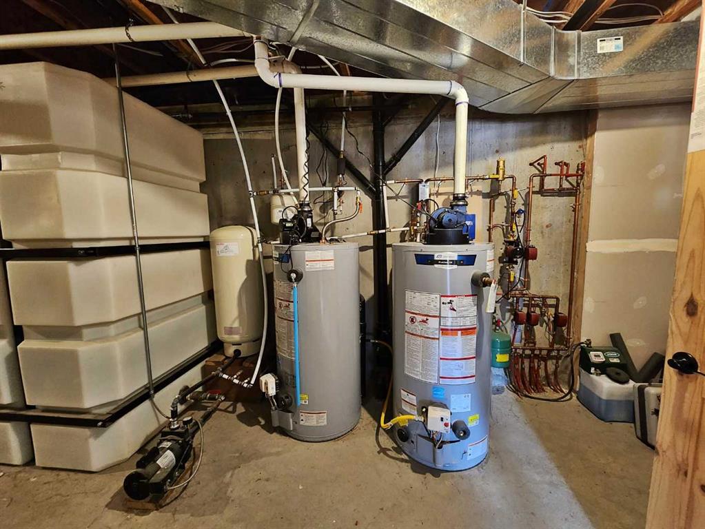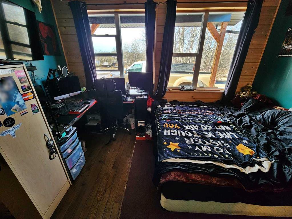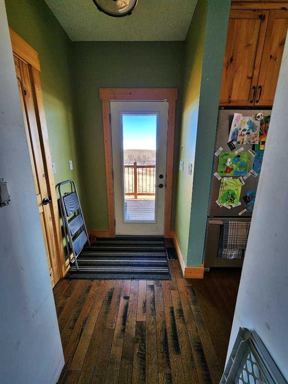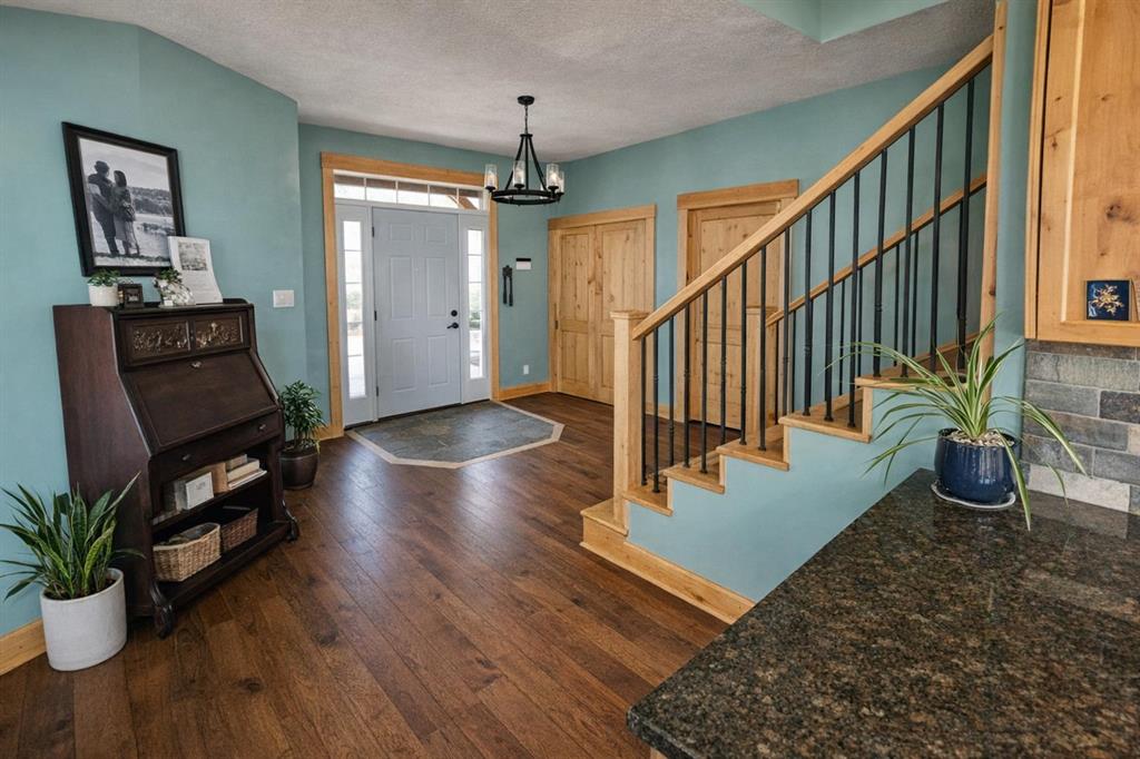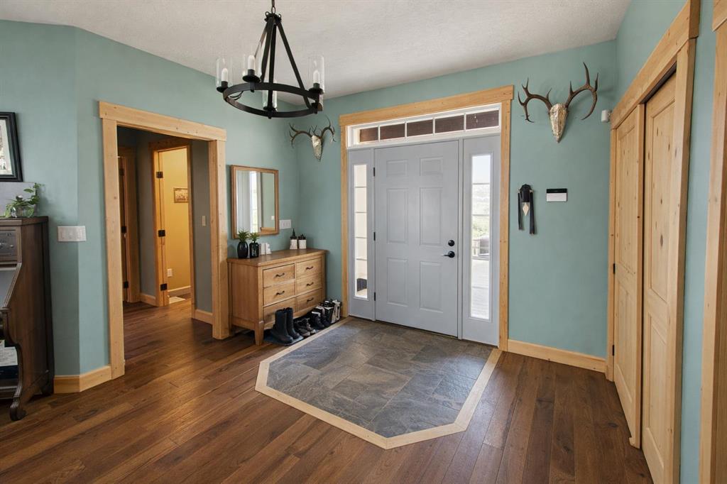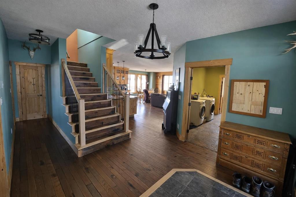 Off-grid paradise just 12 minutes from Stettler. This exceptional property offers over 3,400 sq ft of living space with 5 bedrooms and 4.5 bathrooms, set on approximately 150 acres—including ±100 acres of mature treed wildlife habitatand ±40 acres of productive cropland. Privacy is unmatched, with the nearest neighbour half a mile away, Crown land to the south and Nature Conservancy land to the east. The main floor features two bedrooms with private ensuites and large closets, an open-concept kitchen, dining, and living area with 9’ ceilings, hardwood flooring, and granite countertops throughout. A striking wood stove anchors the living space, radiating warmth while large windows capture breathtaking views in every direction. The kitchen is equipped with a stainless steel 8-burner, dual-oven propane range, ideal for entertaining or serious cooking. An office, half bath, and laundry room complete the main floor, with convenient access to the attached garage through a slate-tiled mudroom. A grand staircase leads to the upper-level primary retreat, featuring an ensuite bathroom, two walk-in closets, and access to a second-floor deck—the perfect spot to take in the peace, privacy, and sweeping bird’s-eye views. The walkout lower level offers in-floor heating, two additional bedrooms, a full bathroom, roughed-in wet bar area, cold storage, and a spacious living area ready for your personal finishing touches (stippled ceiling, primed walls). The mechanical room houses the 1,100-gallon water cistern, furnace, in-floor heating tank, hot water tank, power inverter, and deep-cycle battery bank. Outdoors, the yard site includes a mowed walking trail, secluded firepit area, ground-mounted solar array, a 200 sq ft multi-purpose/wood shed with additional solar panels, a smaller lean-to garden/wood shed, and young shelterbelt evergreens. A large, level area within the yard is ideal for a future shop. The surrounding woods feature multiple trails for walking or quadding, a spectacular toboggan hill, and a slough that attracts abundant wildlife and doubles as a classic outdoor hockey rink in winter. Power and water are available on the west side of the property, and subdivision is possible.