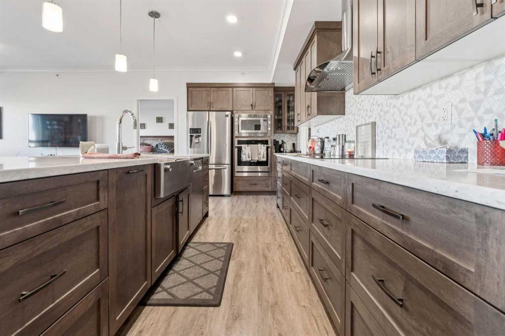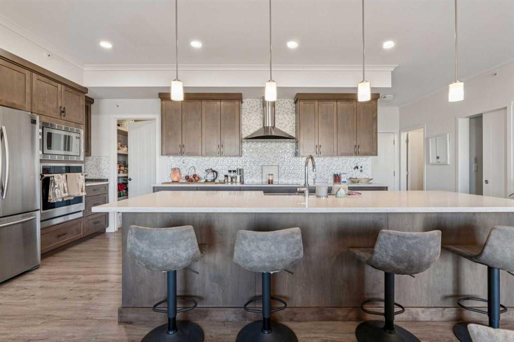 TOP-FLOOR LUXURY WITH BALCONY RETREATS Discover elevated living in this top-floor CedarGlen Living Seton Park II condo. Nearly 1,200 sq. ft. with 3 bedrooms, 2 full baths, two inviting balconies, and air conditioning—perfect for relaxing and enjoying the surrounding green space. The chef-inspired kitchen features full-height cabinetry, quartz counters, upgraded stainless steel appliances, built-in oven & microwave, apron sink, sit-up island, and spacious pantry. Open-concept dining and living areas are bright and airy, with 9’ ceilings, luxury vinyl plank flooring, and roller blinds. The primary retreat includes a walk-in closet, ensuite with dual sinks, quartz counters, walk-in shower, and heated toilet seat, plus private balcony access. Two additional bedrooms share a stylish 4-piece bath, and a large laundry room offers extra storage. Highlights: 2 titled underground parking stalls, leased storage locker, air conditioning, pet-friendly (board approval), low condo fees, no HOA fees. Steps from South Health Campus, YMCA, library, Gateway Retail, and future Seton Regional Park (2028). A rare opportunity to own a luxury top-floor home in Calgary’s most vibrant urban community.