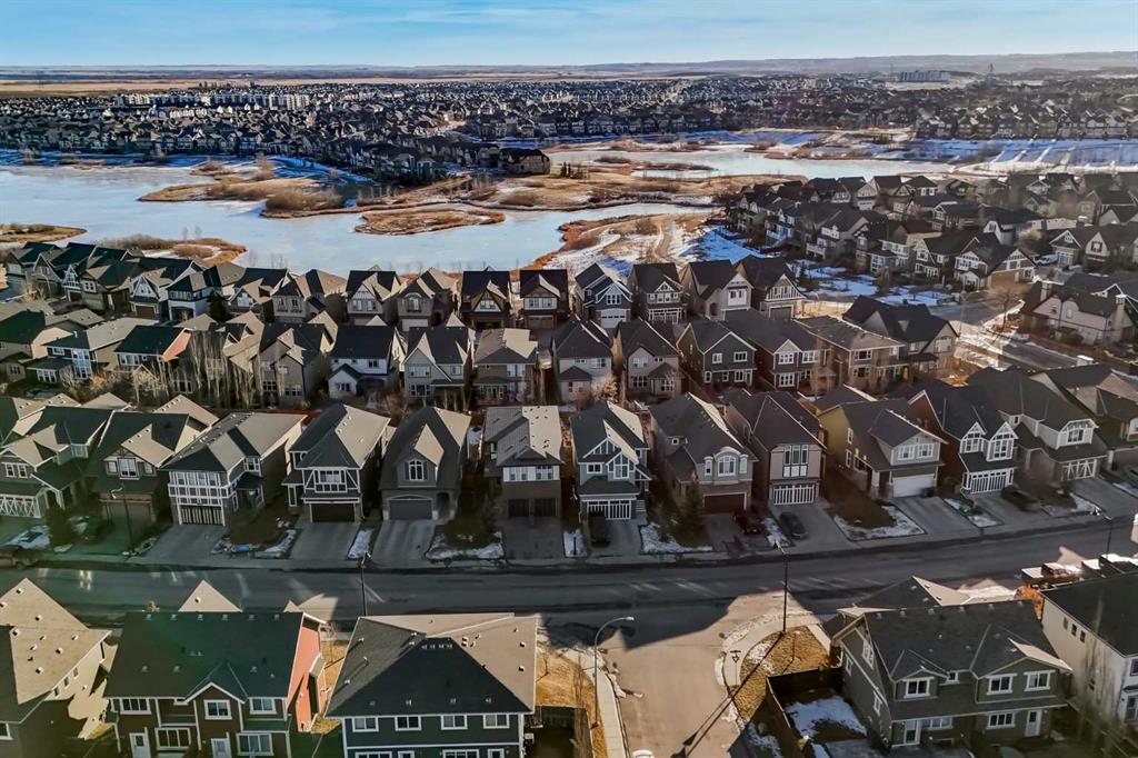 Welcome to this beautifully finished home in the highly desirable lake community of Mahogany! Located just blocks from the stunning 22-acre wetlands, schools, playgrounds and the lake—an ideal setting for families and outdoor enthusiasts. Thoughtfully upgraded throughout, the home features modern lighting, stylish countertops, and built-in fireplace. The main floor offers one of the most sought-after layouts, complete with two inviting sitting areas, a spacious dining room perfect for gatherings, and a huge kitchen island that serves as the heart of the home. Upstairs, the serene master retreat provides a peaceful escape with its walk-in closet and luxurious 5-piece ensuite, complete with soaker tub, separate shower, double vanity, and even heated floors! Two additional bedrooms, a bathroom and upstairs laundry complete the upper level, providing flexible space for family or guests. The newly finished basement (2024) enhances the home with a bright rec room/flex space, an additional bedroom, and a contemporary 3-piece bathroom—ideal for hosting visitors, hobbies, or movie nights. Outside, enjoy sunny afternoons on the oversized composite deck, perfect for entertaining or relaxing. Additional value comes from the oversized heated garage with 8' door. Full roof replacement completed in 2021 with hail-resistant shingles—an upgrade that offers peace of mind. With its thoughtful upgrades, functional layout, and exceptional location near natural amenities and community conveniences, this home presents an outstanding opportunity in one of Calgary’s most sought-after neighborhoods. Call your favorite realtor, and come see this wonderful family home today!