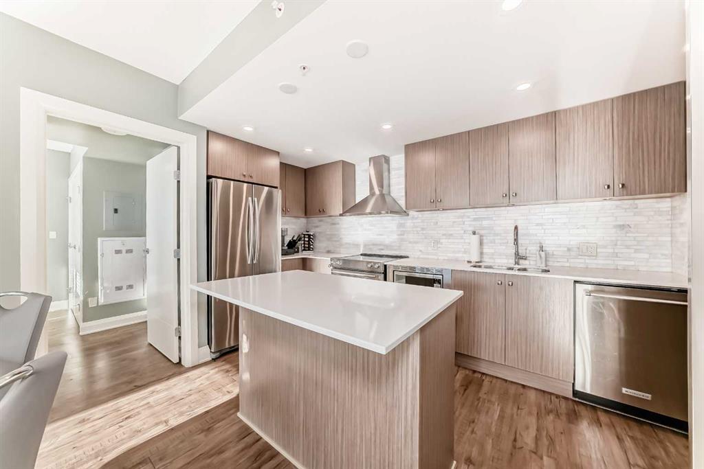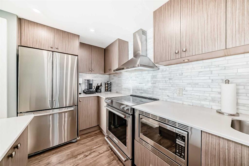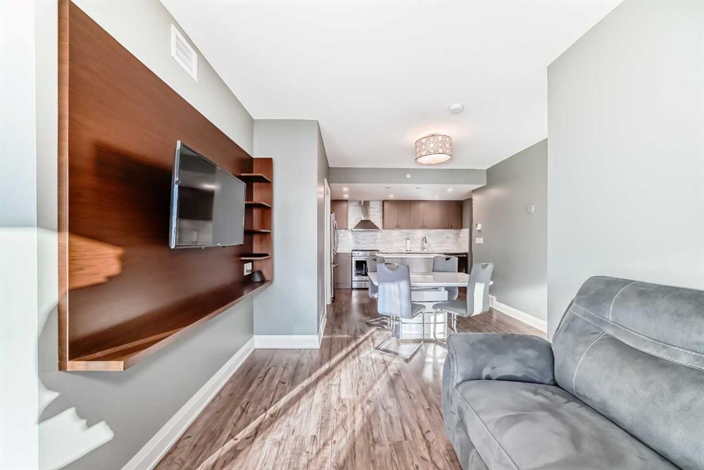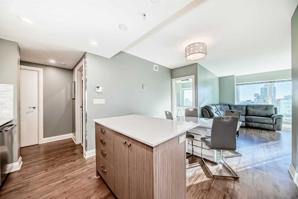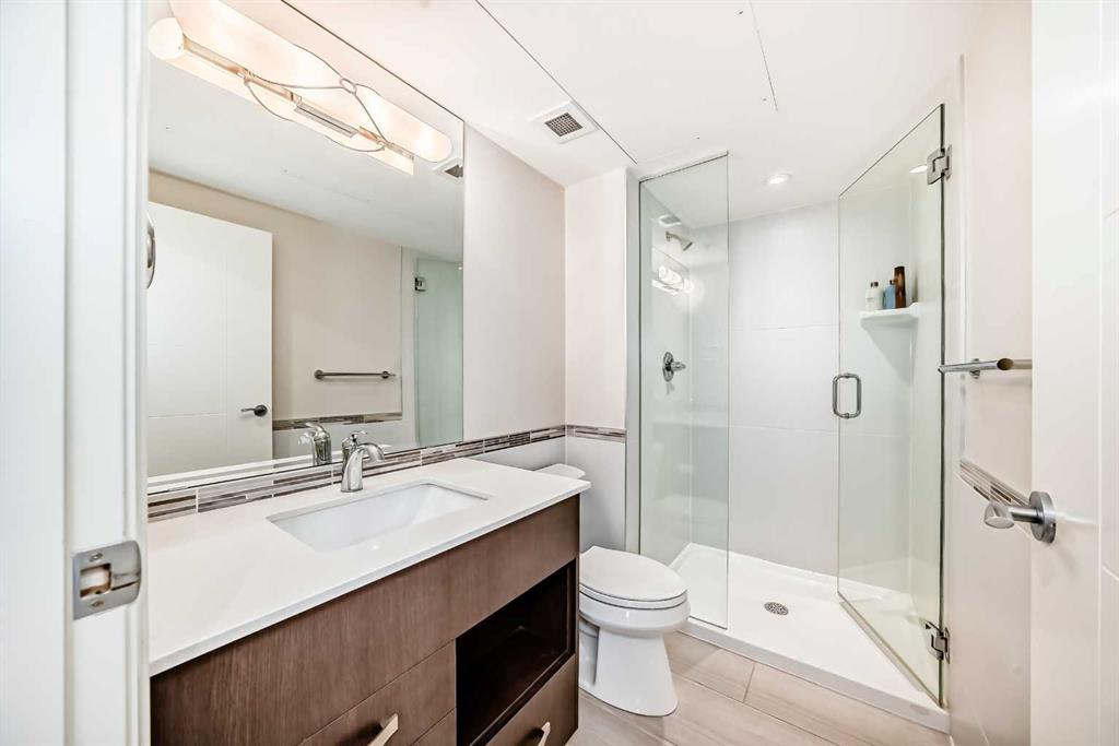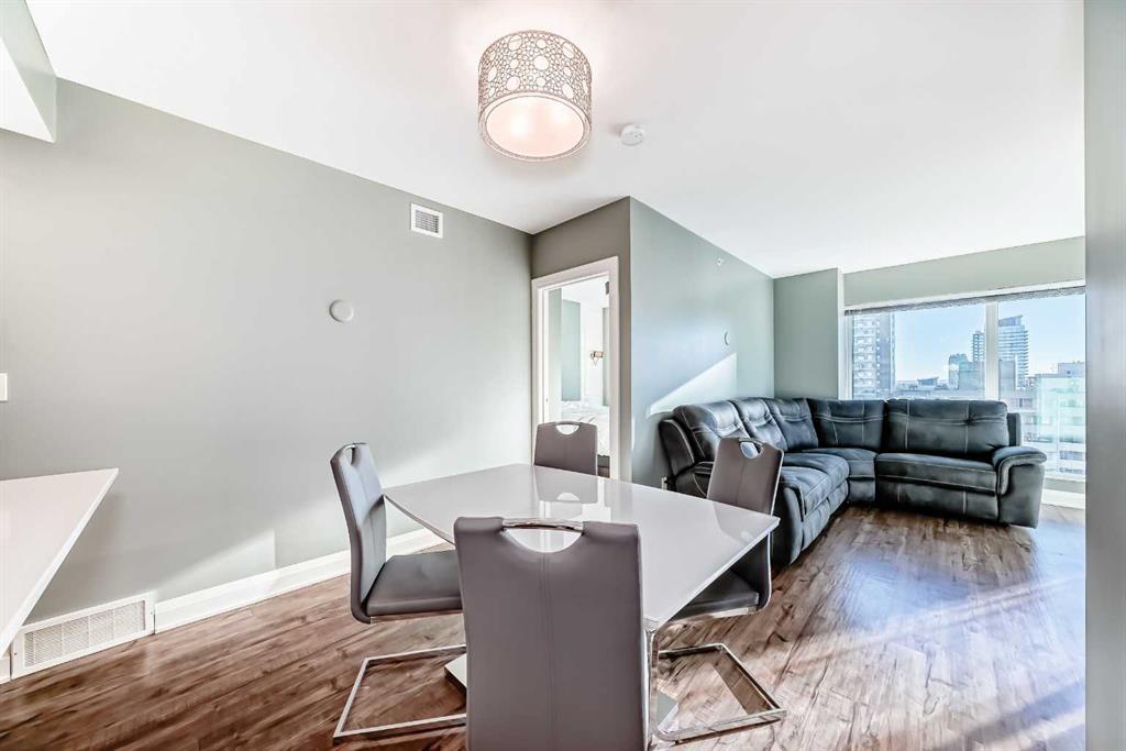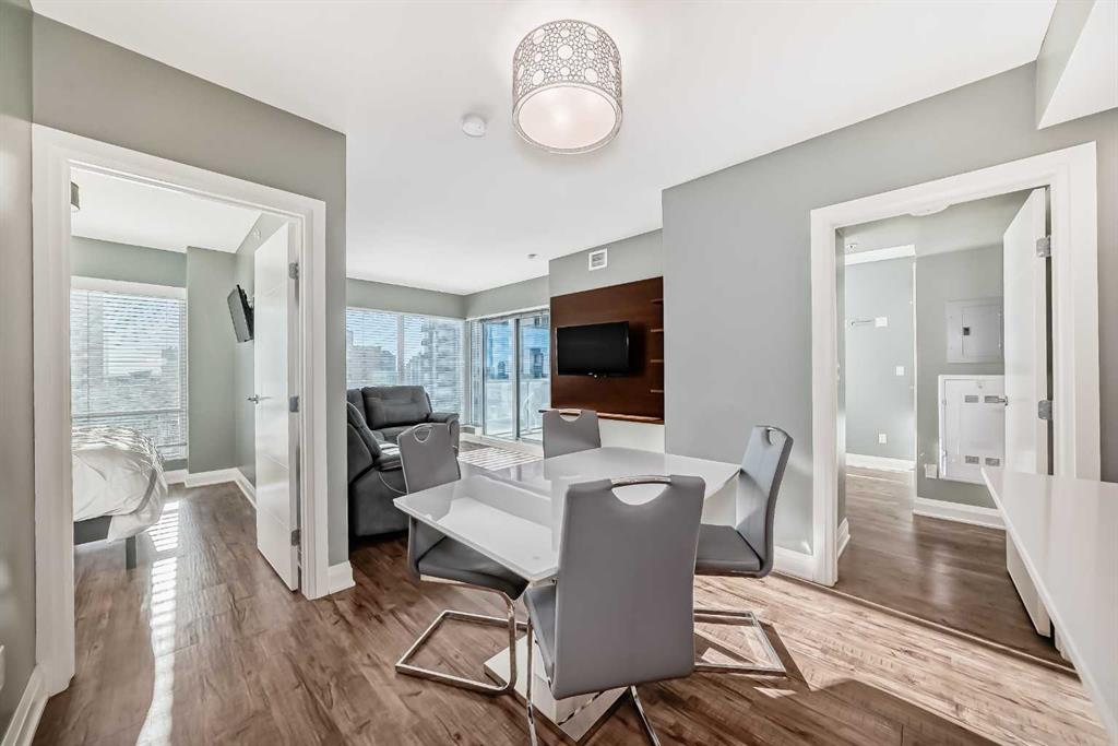 Experience the pinnacle of downtown luxury in this 2 bedroom, 2 bathroom, titled parking, SW-facing corner unit at VOGUE. Sold fully furnished and turnkey, this "Orion" floorplan is situated on one of the exclusive "Bedouin Suites" floors, featuring elite upgrades not found in the rest of the building. Floor-to-ceiling windows frame breathtaking mountain and river views, flooding the space with natural light. The interior boasts premium walnut built-ins, custom bedroom paneling, and a chef-inspired kitchen with an upgraded central island and quartz finishes. Both bedrooms act as private retreats, flanking the living area for maximum privacy. Perfect for investors, professionals and empty nesters. Beyond the unit, enjoy executive amenities including a 36th-floor Sky Gym and 24/7 concierge. Prime West End location steps to the river pathway, C-Train, downtown, and trendy Kensington. Condo fees are $610.35/month, including all utilities except electricity.
