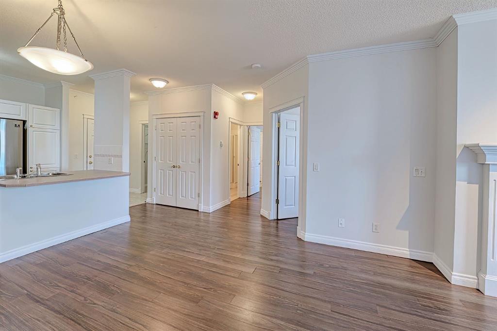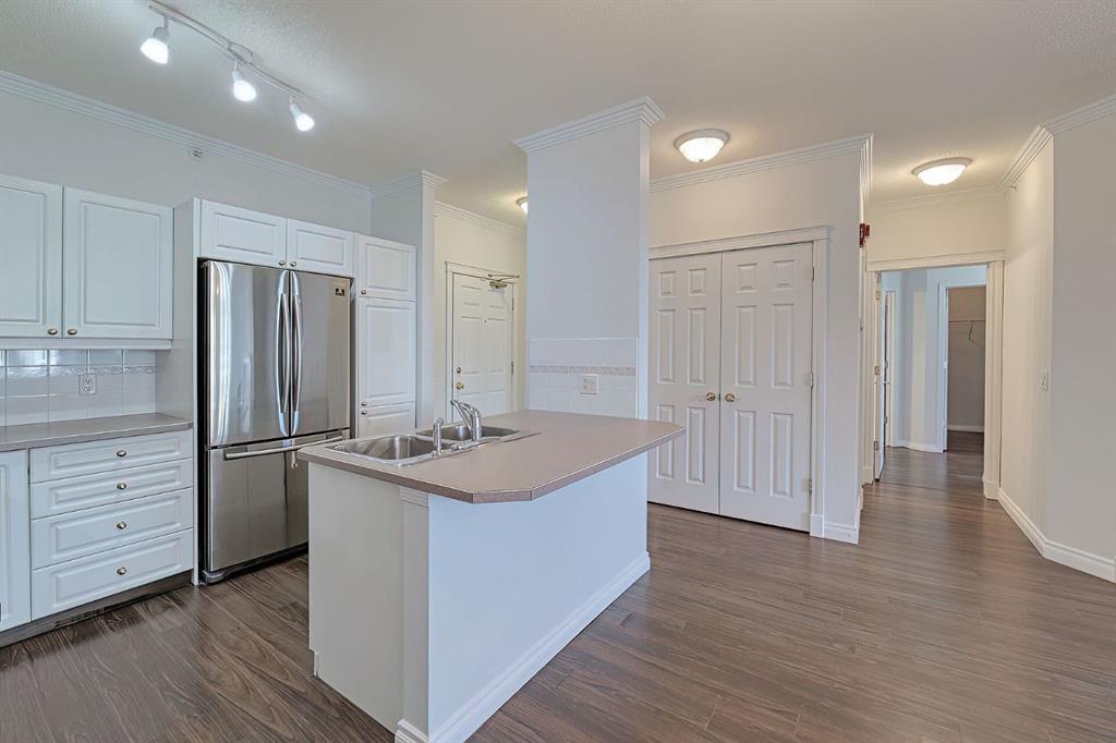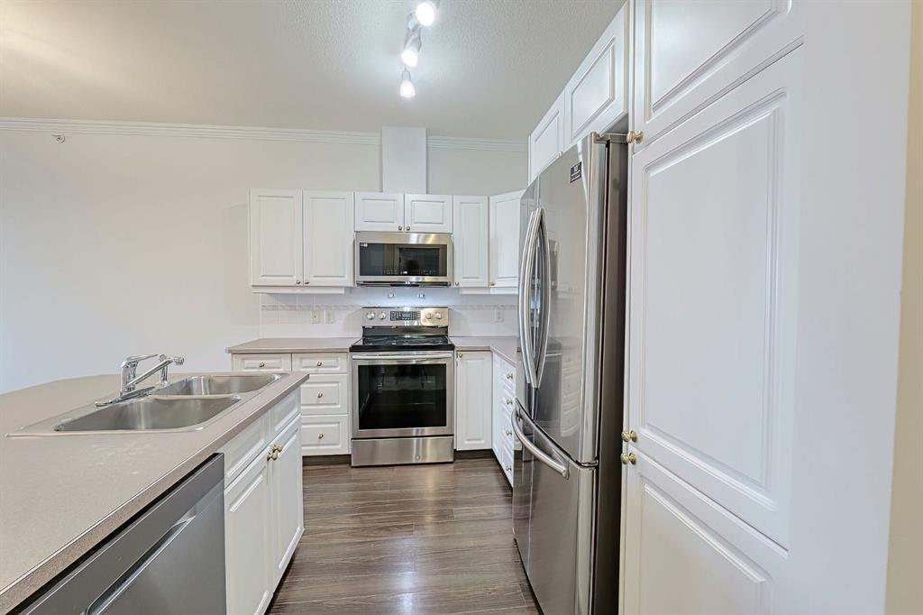A RARE offering in the sought after complex of Beacon Hill, located in beautiful Shawnee Slopes. This is your opportunity to own a large 2 bedroom, 2 bathroom apartment condo on the TOP FLOOR. ***TWO TITLED UNDERGROUND PARKING STALLS*** The unit offers great South Eastern views from the balcony, which includes a gas BBQ outlet. The complex is very well managed and offers 2 gyms, 2 guest suites, a woodworking shop, a car wash bay with vacuum and secure underground parking for both owners and visitors. The location is excellent, with a short walk to Fish Creek Park and the LRT station, and easy access to Shawnessy Plaza with a wide variety of stores and services. The home features a spacious living room with a GAS FIREPLACE, a kitchen with plenty of cupboards, a kitchen island, and NEWER STAINLESS STEEL APPLIANCES. The primary bedroom includes a large 5PC ensuite and a walk-in closet, along with a second bedroom and an additional 4PC bathroom. Large laundry room (newer washer/dryer). The unit has just been FRESHLY PAINTED. Laminate flooring runs throughout, offering DUST FREE LIVING. Both bathrooms feature brand new LVP vinyl plank flooring. Large EAST facing windows bring in plenty of natural light and allow you to enjoy the sunrise. NOTE: there is an assigned storage locker for your convenience as well! If you are looking for a GREAT PLACE TO CALL HOME, book your private viewing NOW. This is a great opportunity and won’t last long.