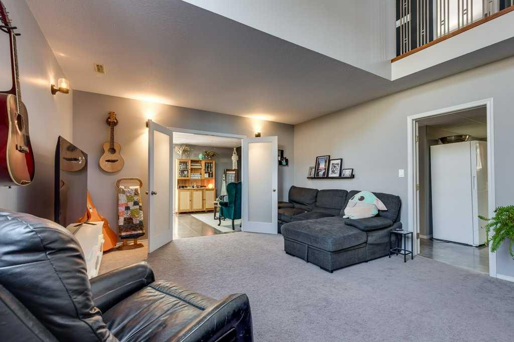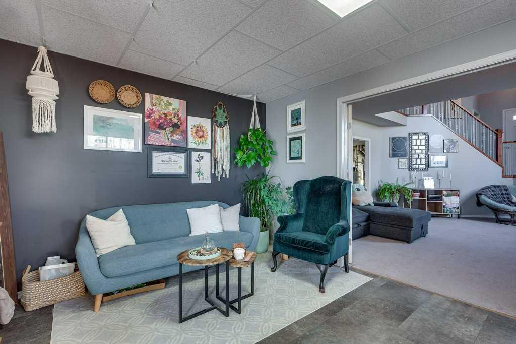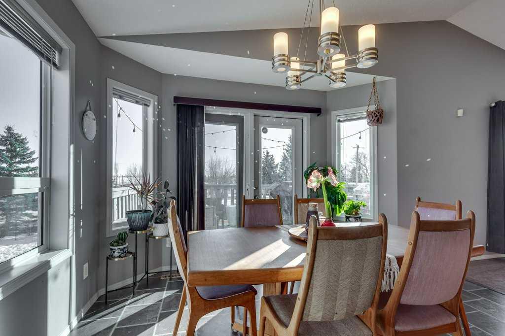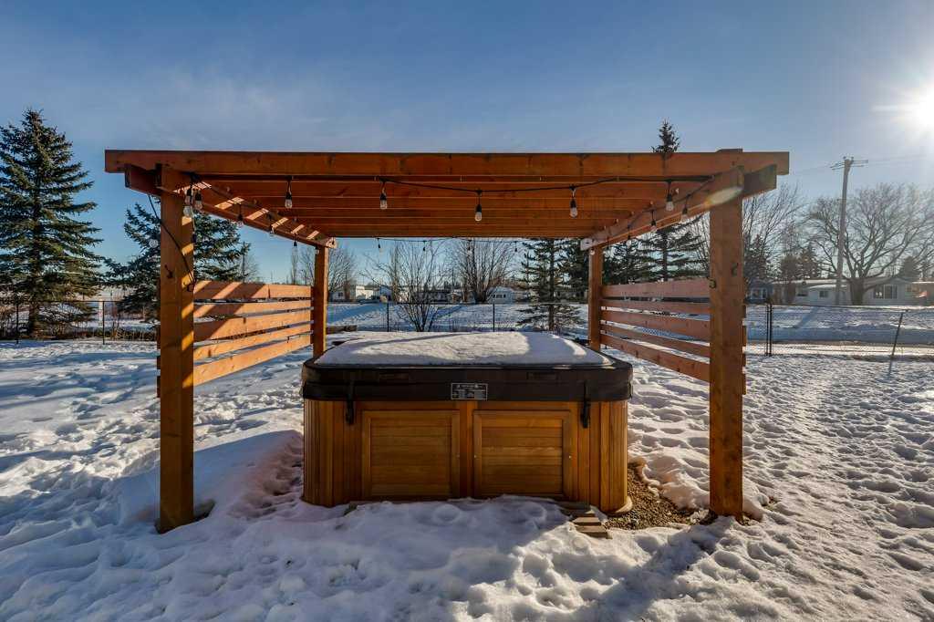 Unique floorplan with 3 bedrooms plus a den, 3 bathrooms and a walk out basement on a huge pie lot. Walk into an impressive front entry, with views to the basement making it instantly part of main living area. Upstairs to a bright open floorplan with tons of windows. Kitchen has extra cabinets for coffee bar area, corner pantry, and centre island. Dining room with doors to large south facing upper deck overlooking yard so you can watch the kids play. Sunny living room with vaulted ceilings. Good sized bedroom and 4pce bathroom. Upstairs is a private master bedroom with 3pce ensuite, walk in closet and lots of room for king sized bed. The downstairs has a wow family room, large bedroom, 4pc bath, storage/utility room with sink and a office/flex room that walks out to yard perfect for at home work, or home schooling. All this on a HUGE south facing pie lot backing onto walking path close to schools, parks & multiplex. Yard is fenced with large garden shed, firepit area, gazebo and hot tub(as is sellers haven't used in over a year). Shingles were replaced in 2024