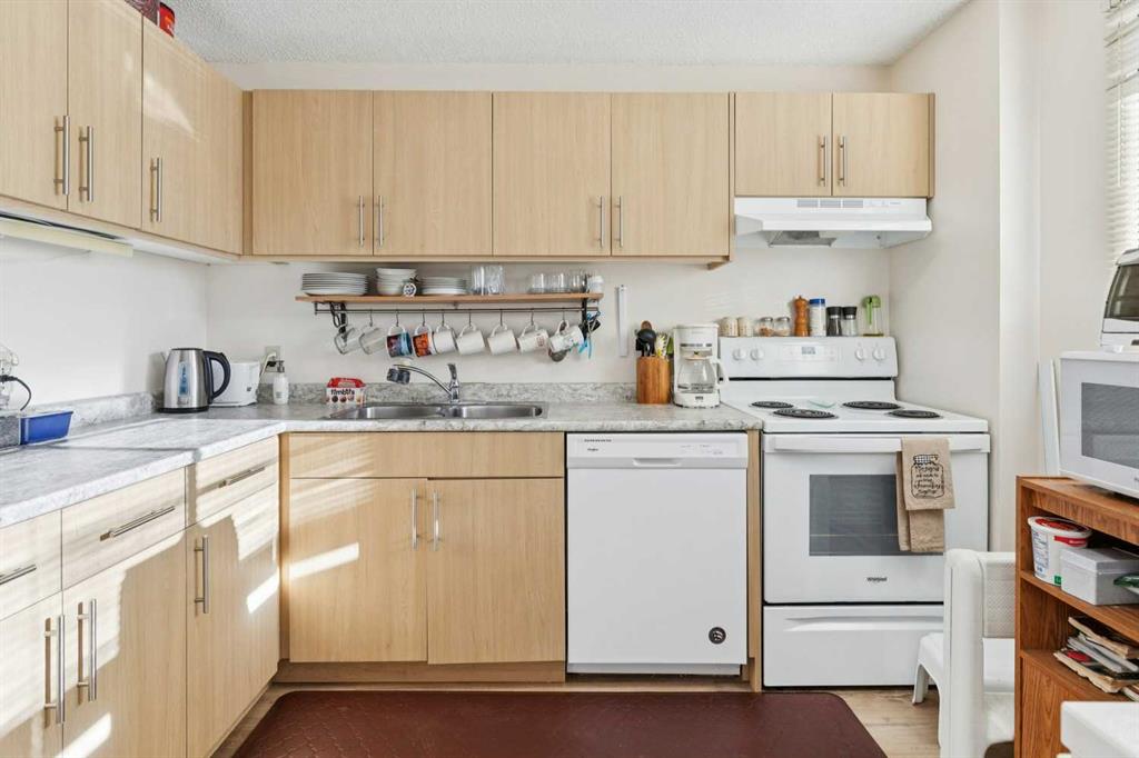 Opportunity knocks at #207. This popular floor plan is a rare find with windows facing south, west and north, is only found on the four corners of the building! Located at the end of the hallway allowing for lots of privacy with only one neighboring common wall. Three exterior walls have windows bringing in an abundance of natural light. The spacious 963 sqft floor plan features a large living room, fully size dining area, open kitchen with upgraded cabinets, primary bedroom with 2 pc ensuite, 2nd bedroom which can be used as an office or den, 4 pc bathroom and a storage room. Full size sliding doors open onto a large south exposure balcony, perfect for a BBQ and additional seasonal storage. Titled underground parking stall #36. Long-term tenants (23 years) would like to stay if possible, currently a month-to-month tenancy. Dorchester Square is a concrete building with post tension cables - maintenance and engineer's reports available. Excellent building amenities: located on the same floor as 207 is a social/games room with billiard table and a large well maintained common laundry room. The main floor has a fully equipped gym, women's sauna and a racquet court. Well managed building with on-site office and manager. Pet restrictions (cats ok, no dogs) and no short term rentals. Many long-time owners in the building which give the building a feeling of community.