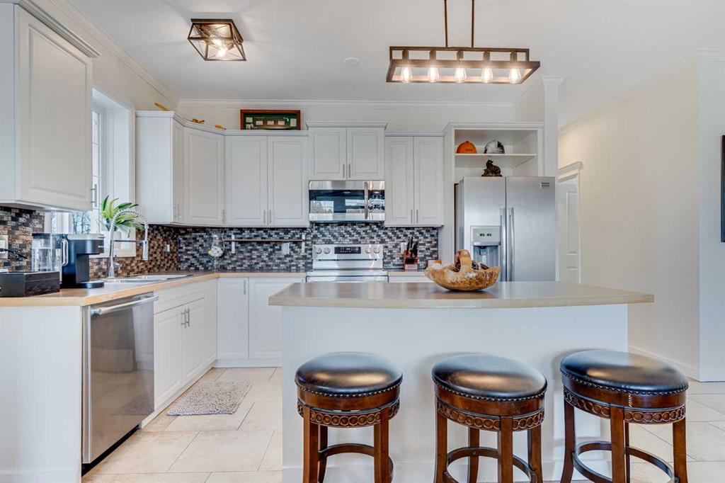 Welcome to Unit 303 at 29 N Railway Street in the heart of Okotoks. This top-floor, 1,128 sq ft condo offers a bright and functional layout with 2 bedrooms and 2 full bathrooms, perfect for comfortable everyday living. Enjoy the privacy and quiet of a north-facing balcony, ideal for morning coffee or unwinding at the end of the day. The open-concept living and dining area is spacious and inviting, complemented by in-suite laundry and plenty of storage throughout. The primary bedroom features a generous layout with its own ensuite, while the second bedroom and bathroom provide flexibility for guests, a home office, or roommates. An assigned parking stall adds everyday convenience. Located just steps from downtown Okotoks, shops, restaurants, walking paths, and amenities, this well-maintained building offers unbeatable walkability and lifestyle appeal. A fantastic opportunity for first-time buyers, downsizers, or investors alike. Pet friendly up to 50kg with board approval. Adult Building 21+