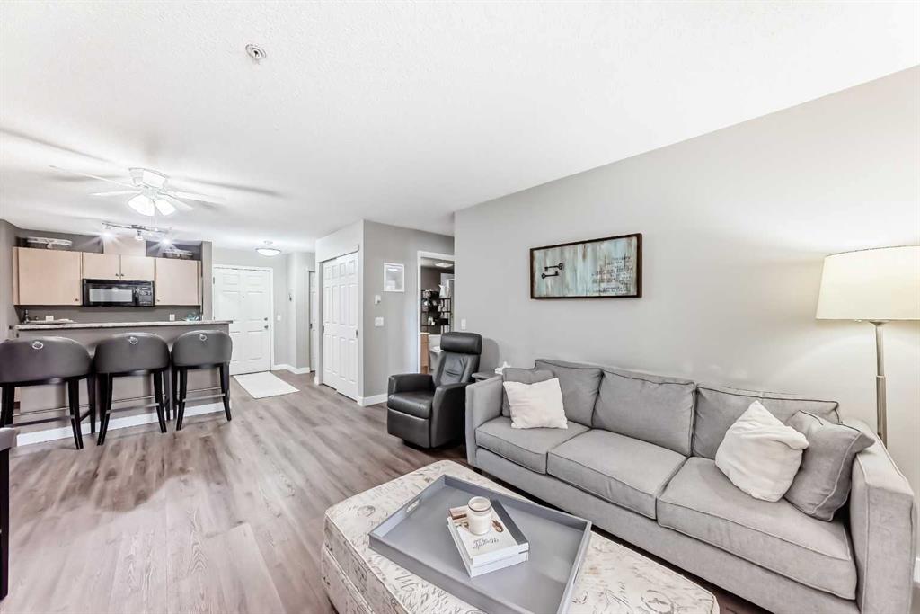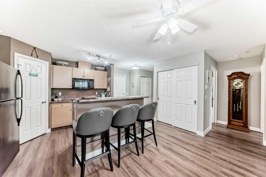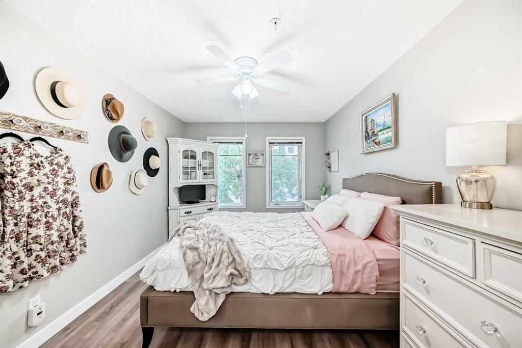 Step inside to find newly installed luxury vinyl plank flooring throughout the main living areas, creating a warm and contemporary feel. The well-appointed kitchen is both functional and stylish, featuring rich maple cabinetry, sleek appliances, a central island with raised breakfast bar, and a garburator—ideal for everyday living and entertaining. The spacious living room is anchored by a cozy corner gas fireplace and filled with natural light from west-facing windows. Step out onto the large private balcony to enjoy evening sun, relax after a long day, or host friends. Both bathrooms have been tastefully updated with Italian ceramic tile and modern fixtures. The primary bedroom offers a private 3-piece ensuite, while the second bedroom and 4-piece main bathroom provide flexibility for guests, roommates, or a home office. Additional features include in-suite laundry with generous storage, heated underground parking (Stall A29, conveniently located just steps from the elevator), elevator access, ample visitor parking, and a quiet, well-maintained building. Condo fees cover heat, electricity, water, and more—making for truly low-maintenance living. With over 875 sq. ft. of thoughtfully designed space and an unbeatable location, this home is ideal for young professionals, couples, or anyone seeking the ultimate inner-city lifestyle. Don’t miss your opportunity to own in one of Calgary’s most desirable neighborhoods—book your private showing today!