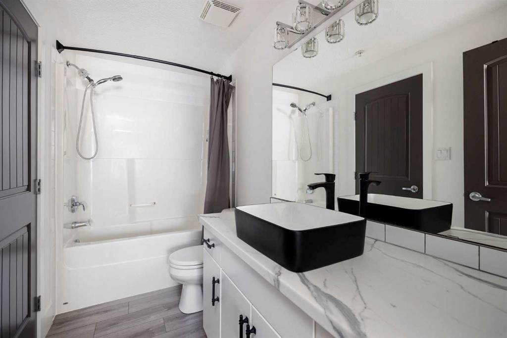 Gorgeous top floor unit at the Peaks! This updated, two bedroom unit with stunning laminate flooring, brand new carpet, new updated ensuite bathroom with stunning tile, and an eye catching vanity with tons of storage. The primary walk through closet has been transformed with custom built ins for better functionality and design. This unit comes with two large bedrooms, two full bathrooms, a laundry room with additional storage, plus the kitchen and living area is bright, modern and inviting for any new owners needs or style. Bonus features such as updated lighting, A/C, BBQ gas hook up, two titled parking stalls, one surface and one underground, as well as a large storage locker located in a separate secure room. This concrete condo building has security cameras, is always well maintained, has a car wash bay in the underground parking, a gym, and social room. There is also a community playground, and is located walking distance to schools, shopping, walking trails, restaurants and bus routes. Are you looking for low maintenance, modern styling, secure living, and centrally located? Call to view this beautiful unit today!
