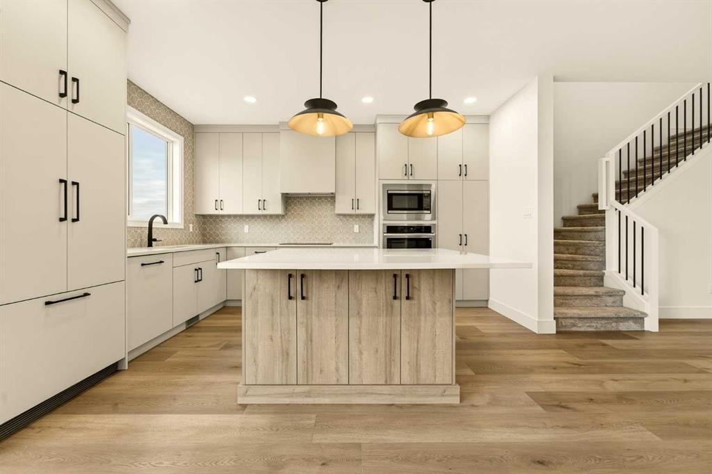 Built by Stranville Living Master Builder, the Brechin model is a striking new home located in the desirable community of Southbrook, perfectly positioned backing onto a pond with uninterrupted views. This brand new home comes with a 10 year new home warranty and GST is included in the sale price. A full-length deck spans the entire back of the home, creating an ideal vantage point to enjoy the water and open skies while extending your living space outdoors in a way that feels both intentional and serene. Adding to the home’s functionality is an extended garage measuring 26 x 22, offering excellent space for larger vehicles, additional storage, or a workshop setup. Inside, the wide-open main floor is designed for modern living, offering a seamless flow that feels spacious the moment you step in. The kitchen is the heart of the home and it delivers on both form and function, anchored by a massive square island with additional cabinetry below for extra storage. The sink is thoughtfully placed beneath a window overlooking the pond, turning everyday tasks into something a little more enjoyable. High-end, fully paneled appliances elevate the space, including a Fisher & Paykel refrigerator, a paneled dishwasher, a built-in oven and microwave, and a sleek matte induction cooktop that ties the whole design together. The living room is warm and inviting, centered around an electric fireplace with a custom mantel that adds character without overwhelming the clean, modern aesthetic. The second level features three spacious bedrooms along with a bonus room that works perfectly as a family lounge, media space, or home office. The primary bedroom enjoys peaceful pond views and flows into an ensuite that truly has it all, including dual vanities, a walk-in shower, a standalone soaker tub, and a private water closet. From the ensuite, you’re led into a generous walk-in closet that continues directly into a full-size laundry room, adding a level of convenience that’s both practical and thoughtfully designed. This Southbrook home offers a refined layout, premium finishes, and a setting that makes everyday living feel just a little more elevated.