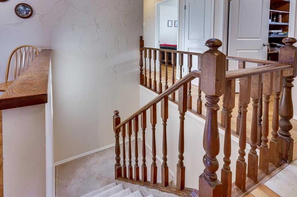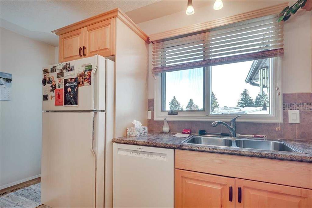 Welcome to this 4 Bed, 3 Bath Bungalow with Double Attached Garage, across from Green Space! This home has been lovingly maintained over the years, and exudes comfort, peace, and quiet. The main floor features hard wood flooring throughout, and there is plenty of natural light given the large windows and skylight. The living room offers a wood burning fireplace, with decorative mantle, glass doors, perfectly framed by two large windows. The kitchen features plenty of cabinets, upgraded about 15 years ago, and offers a look through to the main living area, and access to the back deck. There are three bedrooms on the main floor, including the Primary bedroom with 3 piece ensuite and modest walk-in closet. Downstairs, you'll find one more bedroom, a 3 piece bathroom, along with plenty of space to entertain, including a fully developed wet-bar, recreation room area, and comfy family room with another wood burning fireplace (which has not been used at all). Most of the major items have been addressed over the years, including the Furnace & Hot Water Tank (about 5 years ago), Shingles & siding (about 3 years ago), and the main floor windows have been upgraded over the years. The Garage is fully drywalled, but not currently heated, and comes with a separate man door to the side yard. If you've been looking for a solid Bungalow, that is ready to go, this property is worth consideration!