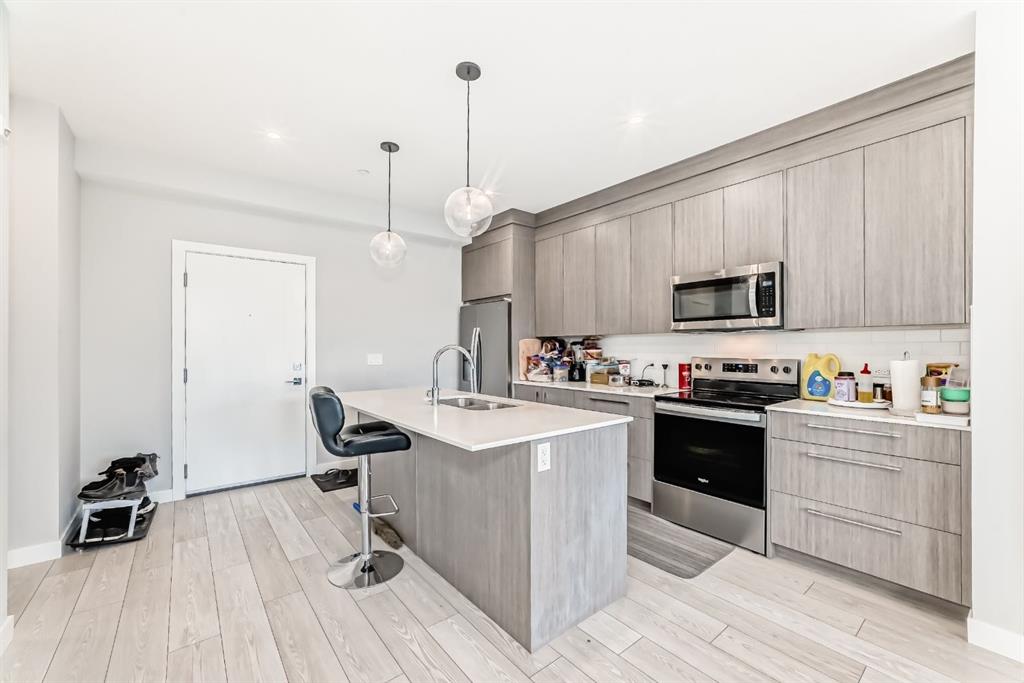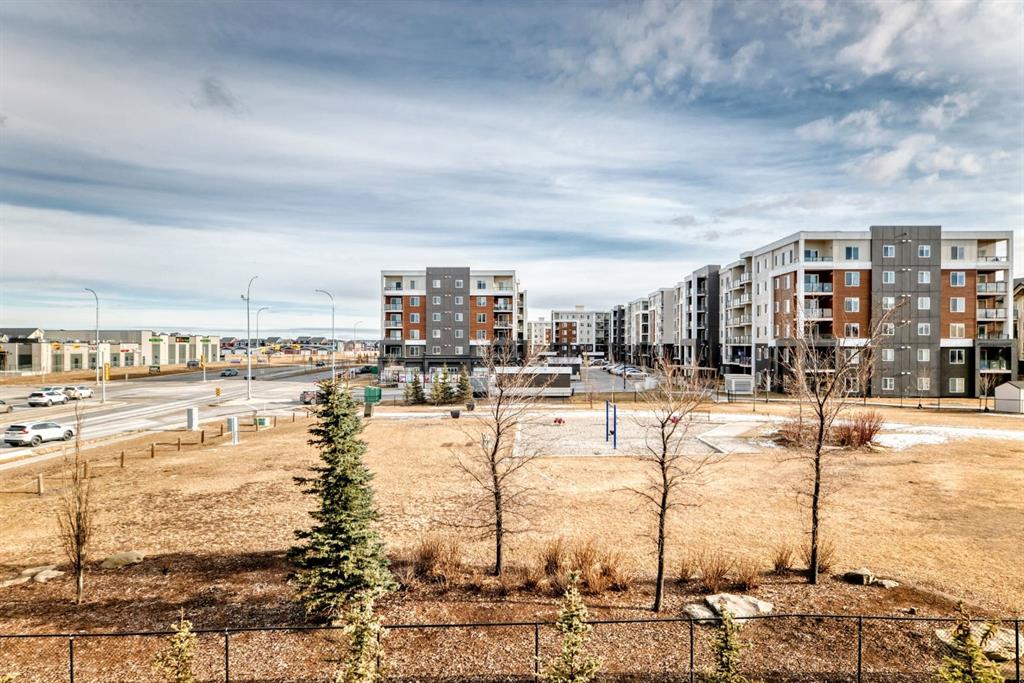 2 BEDROOM + DEN, 2 FULL BATHROOMS, MASSIVE 32 FOOT BALCONY OVERLOOKING THE PARK, UNDERGROUND PARKING! Welcome home to a perfect blend of luxury & location! Ideally situated within walking distance to multiple shopping plazas and just steps away from transit, minutes from major roads, & a 10-minute drive to CrossIron Mills & Costco! Step inside to discover a bright, open-concept layout featuring UPGRADED KITCHEN with CEILING-HEIGHT CABINETRY, STAINLESS STEEL APPLIANCES, and a stylish QUARTZ ISLAND! You will find a cozy DEN that provides the perfect space for an OFFICE or flex area - whatever fits your lifestyle. The TWO BEDROOMS are thoughtfully sepatated for privacy and functionality. The PRIMARY MASTER BEDROOM features LARGE WINDOWS overlooking the HUGE BALCONY with the views of the GREEN SPACE. The WALK-THROUGH closet leads you to a STUNNING 4-PIECE ENSUITE complete with TALL CABINETS, DOUBLE SINKS, GORGEOUS QUARTZ COUNTERTOPS, & WALK-IN SHOWER- your personal spa at home! The second BEDROOM also enjoys beautiful views, along with a WALK-THROUGH closet that connects to the second FULL BATHROOM, that can also be accessed from the hall way, providing ease and convenience for guests. Elegant finishes include TALL CABINETRY & QUARTZ COUNTERTOPS! Step into your MASSIVE 32-FOOT covered BALCONY - perfect for relaxing, entertaining, or grilling under the built-in pot lights as you enjoy the open skies and natural light. Welcome to your new home, where LUXURY, COMFORT, and CONVENIENCE come together beautifully.