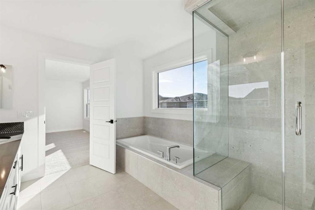 This beautifully upgraded family home offers style, space, and functionality. Built by a trusted builder with over 70 years of experience, this home showcases on-trend, designer-curated interior selections tailored for a home that feels personalized to you. Energy efficient and smart home features, plus moving concierge This home features a 3-car garage, main floor bedroom with full bath, and a side entrance for added flexibility. The executive kitchen shines with built-in stainless steel appliances, gas cooktop, chimney hoodfan, and a separate spice kitchen with gas range and French door. A walk-through pantry with wood shelving adds smart storage. Enjoy the warmth of the electric fireplace, vaulted ceiling in the bonus room, and extra windows for natural light. The luxurious 5-piece ensuite includes a soaker tub and a stunning walk-in tiled shower with dual glass walls. All bathrooms feature elegant tile flooring, and the upper main bath offers dual sinks—perfect for busy mornings.This energy-efficient home is Built Green certified and includes triple-pane windows, a high-efficiency furnace, and a solar chase for a solar-ready setup. With blower door testing that may be eligible for up to 25% mortgage insurance savings, plus an electric car charger rough-in, it’s designed for sustainable, future-forward living. Featuring a full range of smart home technology, this home includes a programmable thermostat, ring camera doorbell, smart front door lock, smart and motion-activated switches—all seamlessly controlled via an Amazon Alexa touchscreen hub. Some photos are representative.