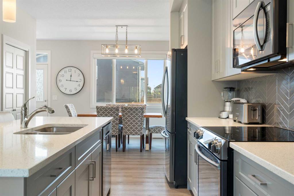 Welcome to 133 Heartland Boulevard in Cochrane. This beautifully designed 1,488 sq. ft. duplex, built by award-winning builder Pacesetter by Sterling Homes, combines modern style with practical function in the family-friendly community of Heartland. The home features a bright, open-concept layout with upgraded luxury vinyl plank flooring and a contemporary colour palette. The spacious kitchen is equipped with stainless steel appliances, quartz countertops in both the kitchen and bathrooms, and plenty of cabinetry for storage. The main floor flows seamlessly from kitchen to dining to living space, creating the perfect environment for everyday living and entertaining. Upstairs offers three generously sized bedrooms and two and a half bathrooms, including a serene primary suite with a walk-in closet and private ensuite. Every window is finished with upgraded roller shades, including blackout blinds in all bedrooms for a restful night’s sleep. The unfinished basement provides endless possibilities, ready for your personal touch. The property is fully landscaped and includes a double-car concrete parking pad at the rear. There is also Air Conditioning for the warmer days. Heartland is a vibrant community known for its open green spaces, parks, playgrounds, and walking paths. Families appreciate the nearby schools, shops, and restaurants, while commuters love the easy access to Highway 1A for quick trips into Calgary or west to the mountains. With the Rocky Mountains as a backdrop, Heartland offers the best of Cochrane living—nature, convenience, and community spirit.