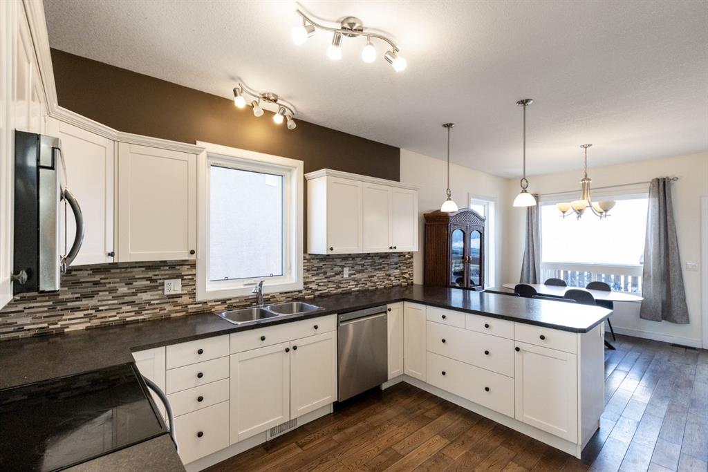 FULLY FINISHED HOME ~ 6 BEDROOMS ~ 3 FULL BATHROOMS ~ BI-LEVEL ~ DETACHED GARAGE ~ PARK/GREEN-SPACE KITTY CORNER FROM PROPERTY ~ GREAT FAMILY FRIENDLY NEIGHBOURHOOD ~ FRONT PAVED DRIVEWAY ~ CLOSE TO GOLF COURSE & SKI HILL ~ Walk in to this home and your greeted with high ceilings, lots of natural light. Beautiful hardwood flooring throughout main-floor. Spacious front living room. Kitchen boasts eat-up island, some newer appliances and pantry. Kitchen is open to dining area and back deck which makes for great entertaining and spending time with family. The Spacious Master bedroom has lots of clothing storage and has a 3PC Ensuite. Completing the mainfloor is 2 more good sized bedrooms and a 4PC Bathroom. The basement has another good sized, nice & bright family room. 3 Bedrooms, laundry area & 3PC Bathroom. Backyard is wired for 220 for hot tub. Detached garage is ready for you!! Extra parking to use as well. New Hot Water Tank and Some Appliances.