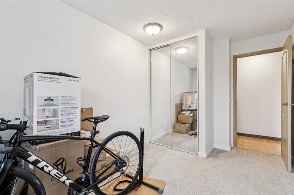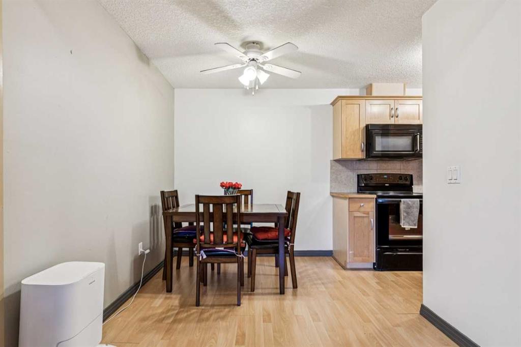 Top-floor, two-bedroom apartment with two secure, side-by-side underground parking stalls located in the community of Canyon Meadows. This pet-friendly complex is within walking distance to the CTrain and Fish Creek Park. The unit features a spacious living room with a tile-faced wood-burning fireplace, California knockdown ceilings, and new carpet professionally installed in 2023. Sliding glass doors provide access to the balcony. A separate dining area connects to the galley-style kitchen, which includes maple cabinetry and a black appliance package. The primary bedroom includes a walk-in closet, and the home is complete with a full-size ensuite washer and dryer. In addition to the two assigned underground parking stalls, an underground storage locker is included. Building amenities include an exercise room, recreational room, and a professionally landscaped central courtyard.