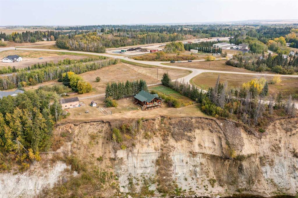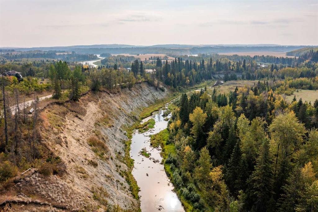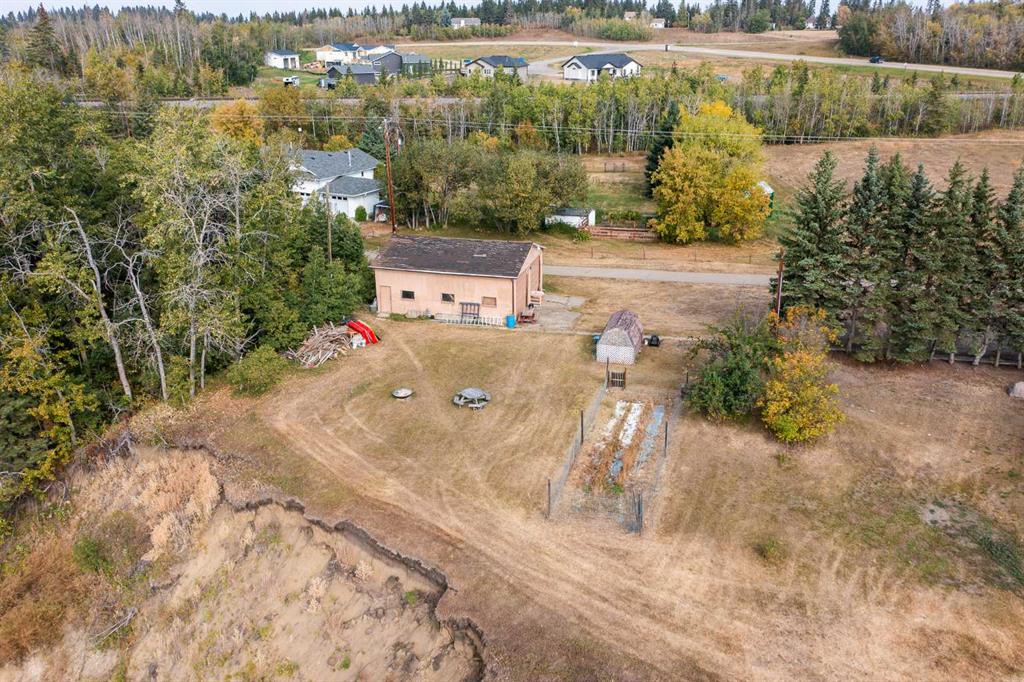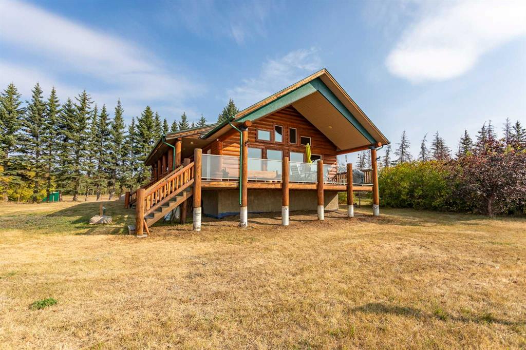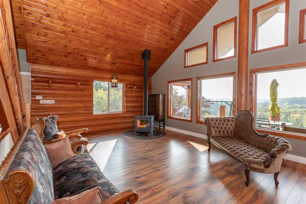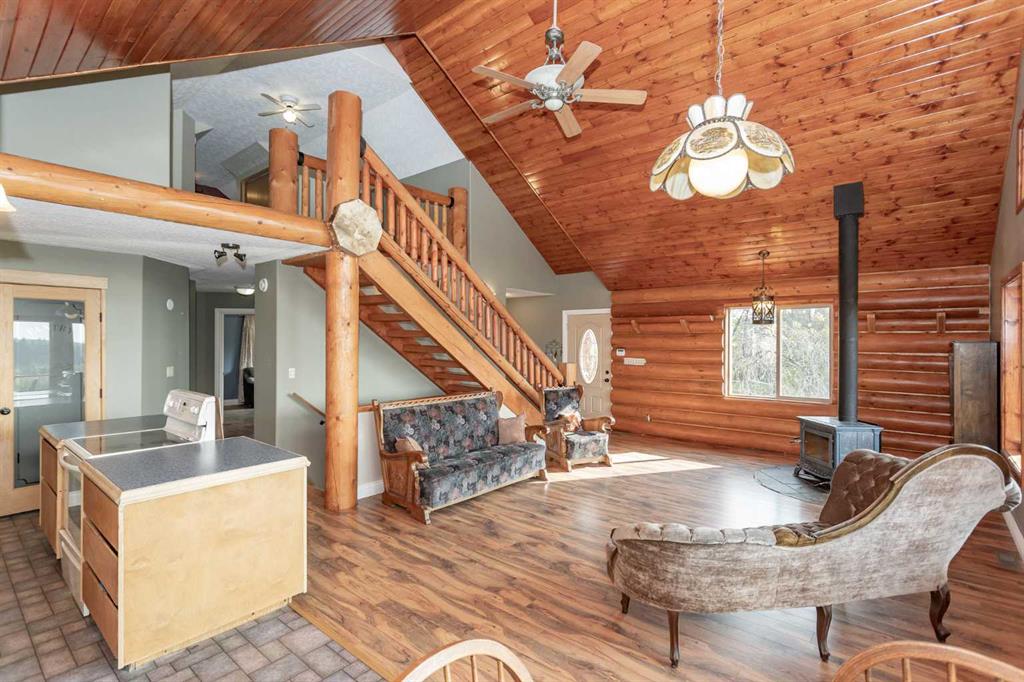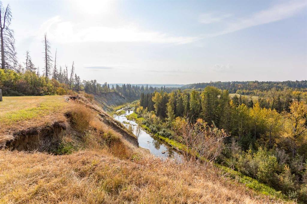 Set on 5.54 acres above the Blindman River, this log-style 1.5 storey home offers a peaceful setting with wide-open valley views and plenty of space to enjoy country living. The main floor is bright and welcoming, featuring a spacious living room with a wood stove, large south-facing windows, and direct access to the full wrap-around deck. The kitchen is practical and inviting with oak cabinetry, laminate countertops, a walk-in pantry, and a comfortable dining area. Two well-sized bedrooms, a 3-piece bathroom with a full tub, and a dedicated main floor laundry room complete this level. Upstairs, the loft-style bedroom provides a private retreat with brand new carpet, dual closets, a 3-piece ensuite, and impressive views through the oversized windows. The basement is partially developed with framing in place and building materials included, offering a head start for future development. The home is built on an ICF foundation and is equipped with underfloor heat, a high-efficiency furnace, and a high-efficiency hot water tank. The land itself is flat and usable, with a mix of open space and treed areas that attract wildlife. A pathway leads to a separate flat section of the property, ideal for a firepit area, camping spot, or future shop. The existing shop features high ceilings, a mezzanine, and radiant heat, and offers great potential for those looking for workspace or storage. Recent improvements include a new septic field and a newer pressure tank. Located in the Burbank community of Lacombe County, this property is just minutes from Blackfalds and approximately 10 minutes to Red Deer, offering the balance of quiet acreage living with convenient access to town amenities.