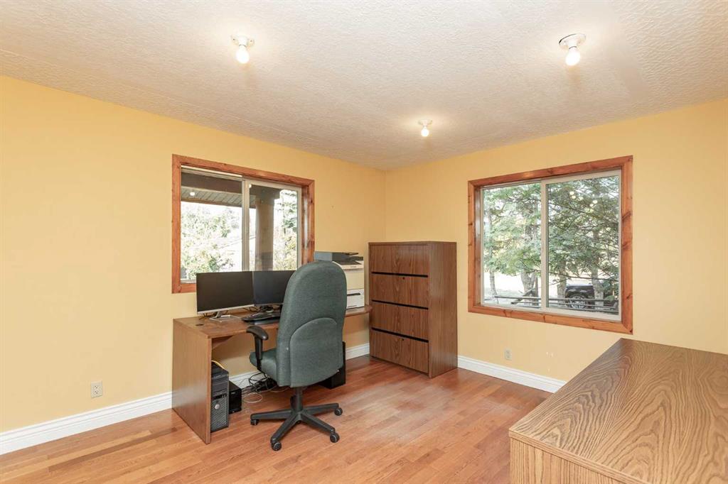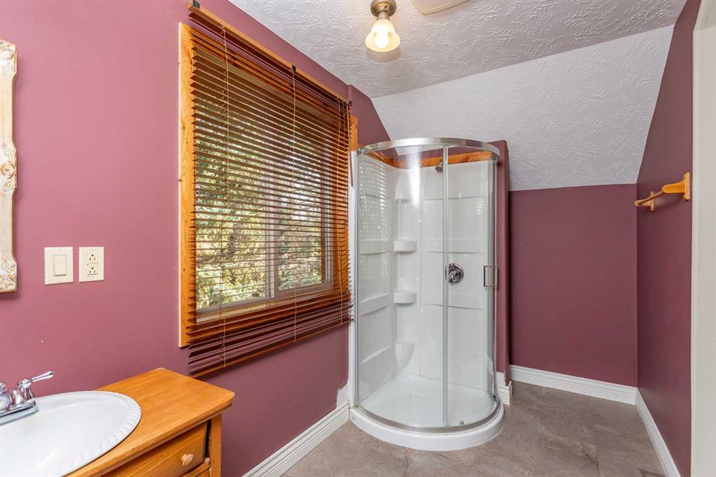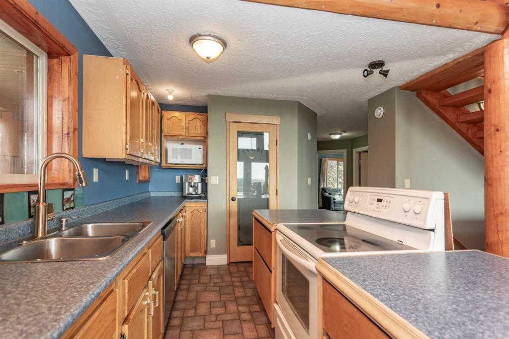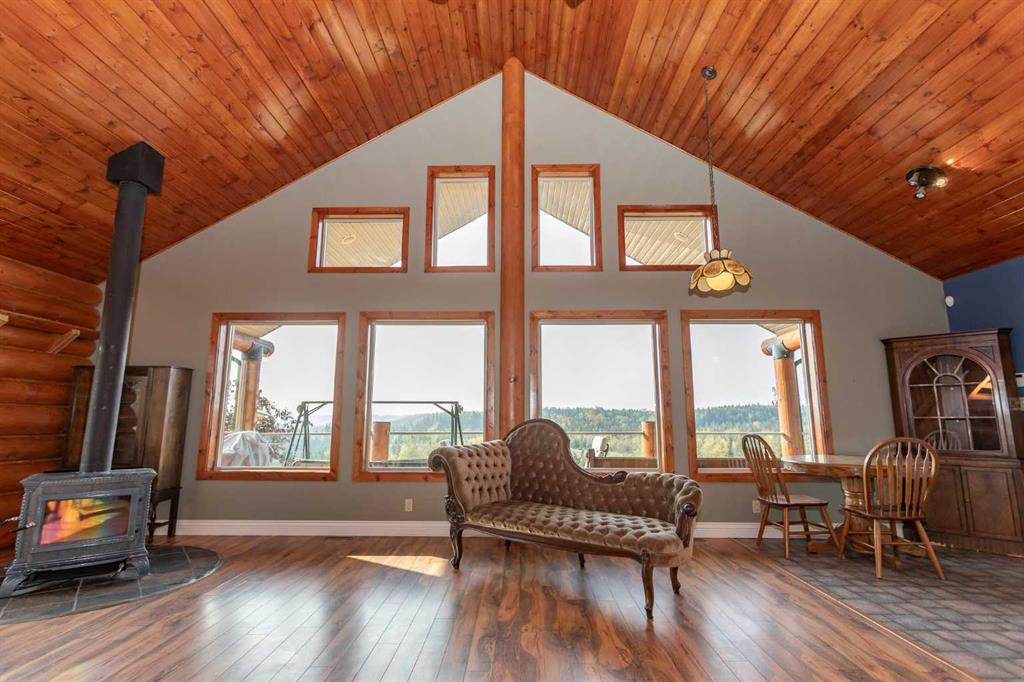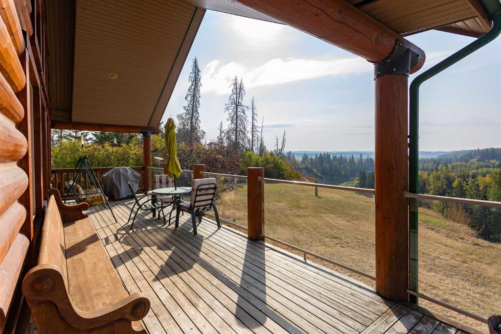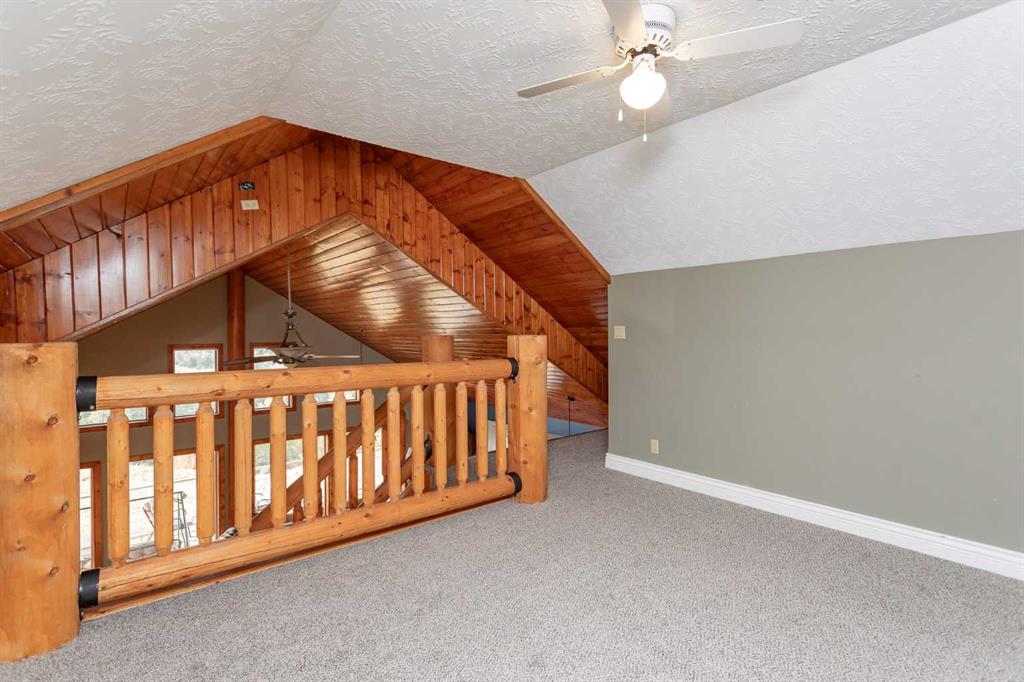 Set on 5.54 acres above the Blindman River, this log-style 1.5 storey home offers a peaceful setting with wide-open valley views and plenty of space to enjoy country living. The main floor is bright and welcoming, featuring a spacious living room with a wood stove, large south-facing windows, and direct access to the full wrap-around deck. The kitchen is practical and inviting with oak cabinetry, laminate countertops, a walk-in pantry, and a comfortable dining area. Two well-sized bedrooms, a 3-piece bathroom with a full tub, and a dedicated main floor laundry room complete this level. Upstairs, the loft-style bedroom provides a private retreat with brand new carpet, dual closets, a 3-piece ensuite, and impressive views through the oversized windows. The basement is partially developed with framing in place and building materials included, offering a head start for future development. The home is built on an ICF foundation and is equipped with underfloor heat, a high-efficiency furnace, and a high-efficiency hot water tank. The land itself is flat and usable, with a mix of open space and treed areas that attract wildlife. A pathway leads to a separate flat section of the property, ideal for a firepit area, camping spot, or future shop. The existing shop features high ceilings, a mezzanine, and radiant heat, and offers great potential for those looking for workspace or storage. Recent improvements include a new septic field and a newer pressure tank. Located in the Burbank community of Lacombe County, this property is just minutes from Blackfalds and approximately 10 minutes to Red Deer, offering the balance of quiet acreage living with convenient access to town amenities.