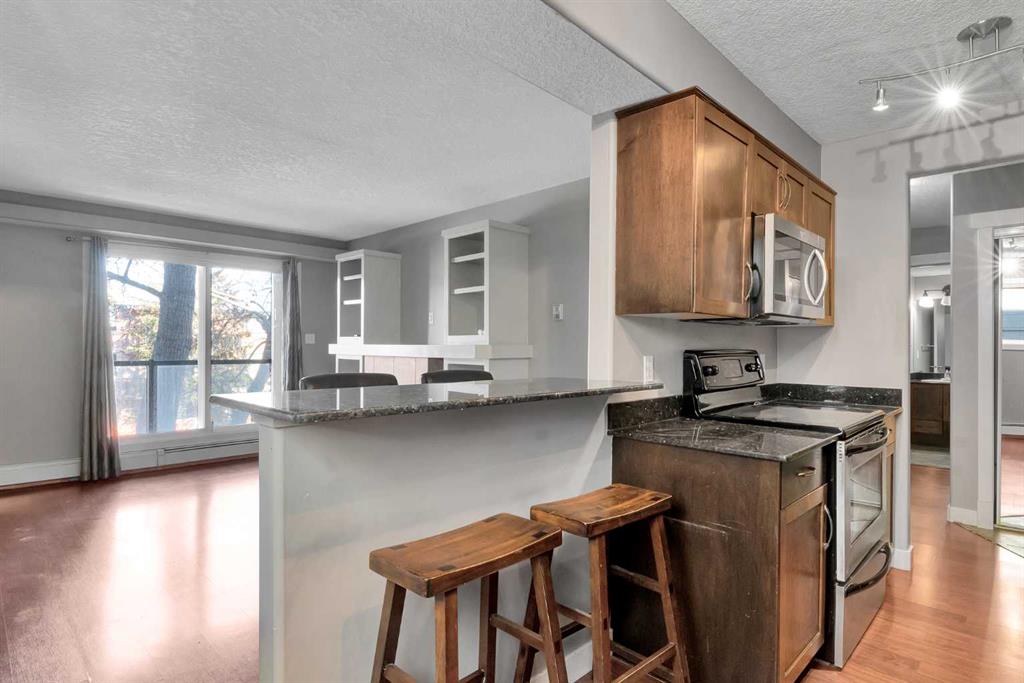 A rare opportunity to own as first time homebuyer, downsizer, or investor in an exceptional and unbeatable location, a 2 bed/1 bath with 731sqft of developed space offered in the heart of Sunnyside! A large living space with fire-place and built-in shelving, leading to a large North facing balcony. Featuring a functional kitchen with Granite Counter–tops, stainless steel appliances, and an adjacent island-eat up breakfast bar. 2 spacious rooms and a full 4-piece bathroom completes this floor. This apartment provides in-suite laundry, a separate storage locker for securing any extra belongings or seasonal items, and a covered assigned parking stall - ensuring a convenient place to park your vehicle! Enjoy quick access by foot to Trendy Restaurants/Cafes, Groceries, and Downtown Calgary, Public transit, Famous Protected Parks, and the River pathways. More than just the property itself, this condo captures a lifestyle of Kensington culture and charm. ~~ Very pet friendly with board approval ~~