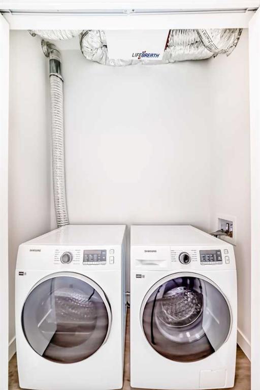 Welcome to the Carr 2 by Logel Homes, one of the builder’s most popular and competitively priced floor plans. This beautifully designed home showcases a modern exterior finished with premium fibre cement siding that is hail-resistant and sound-dampening for added durability and comfort. Inside, enjoy 9’ knockdown ceilings, recessed lighting, and luxury vinyl plank flooring throughout the main living areas, complemented by plush carpeted bedroom. The thoughtfully designed kitchen features maple dovetail cabinetry with soft-close doors and drawers, quartz countertops, a classic subway tile backsplash, and stainless steel appliances, including a refrigerator, smooth-top self-cleaning range, and over-the-range microwave with built-in hood fan. Quartz countertops continue into the bathrooms, and a side-by-side in-suite washer and dryer add everyday convenience. This home also includes a titled surface parking stall and is backed by the Alberta New Home Warranty for peace of mind. Ideally located near South Health Campus Hospital, the YMCA, and a wide array of shopping and dining options, the Carr 2 offers modern style, thoughtful design, and exceptional value. Enjoy outdoor living on the west-facing patio with a natural gas BBQ hookup—perfect for evening sunsets