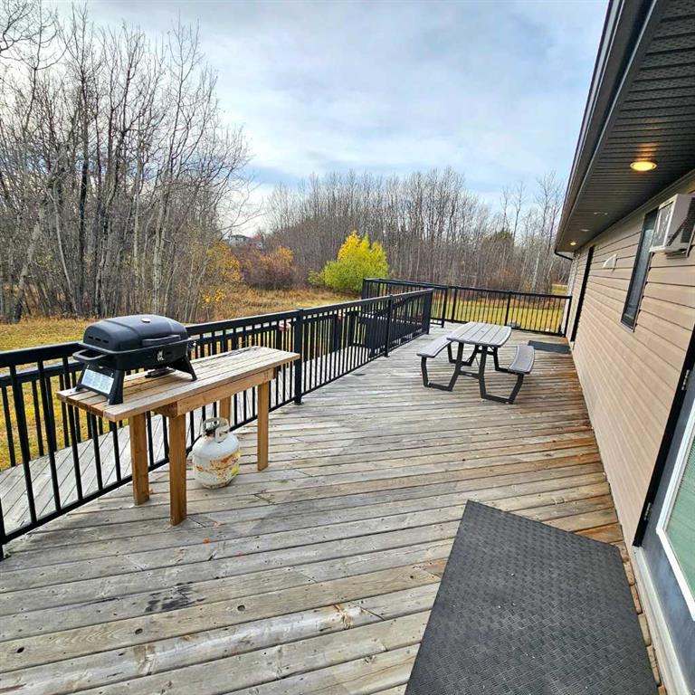 Welcome to this stunning 5-bedroom, 3-bathroom bungalow nestled on a sprawling 3.6-acre lot in the highly sought-after Lakeview Estates of Lac La Biche, Alberta. This property offers a unique blend of tranquility, convenience, and potential. Upon entering, you will find an inviting layout featuring three spacious bedrooms on the main floor, perfect for family living. The master bedroom boasts a generous ensuite bathroom, ensuring a private retreat. In addition, the lower level encompasses two additional bedrooms, complete with a kitchenette and a separate entrance, offering the potential for an income suite or a private space for guests. The exterior of this remarkable home features a large two-tier rear deck, ideal for outdoor entertaining and enjoying the natural surroundings. The beautifully landscaped yard, which includes a fire pit area, is perfect for gatherings. Additionally, the property includes an impressive 26x38 three-car garage, providing ample storage and workshop space. A two-bedroom suite is already framed in the garage and awaits your finishing touches, presenting an excellent opportunity for additional rental income or accommodating guests. Both potential suites do not completely comply with "legal suite" status, but would not take much to get compliance. Located close to a picturesque golf course, a provincial park, and a convenient boat launch to Lac La Biche Lake, this property caters to those seeking an active lifestyle in nature's embrace. With its spacious living areas, ample outdoor space, and income potential, this bungalow in Lakeview Estates is a perfect family home or investment opportunity. Don’t miss your chance to own a slice of paradise in Lac La Biche!
