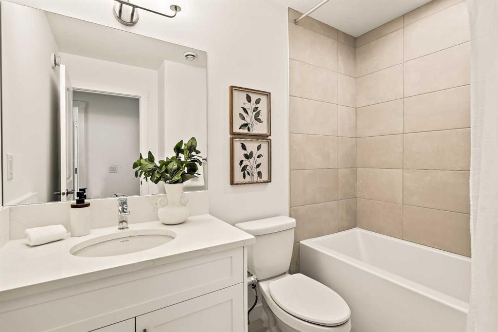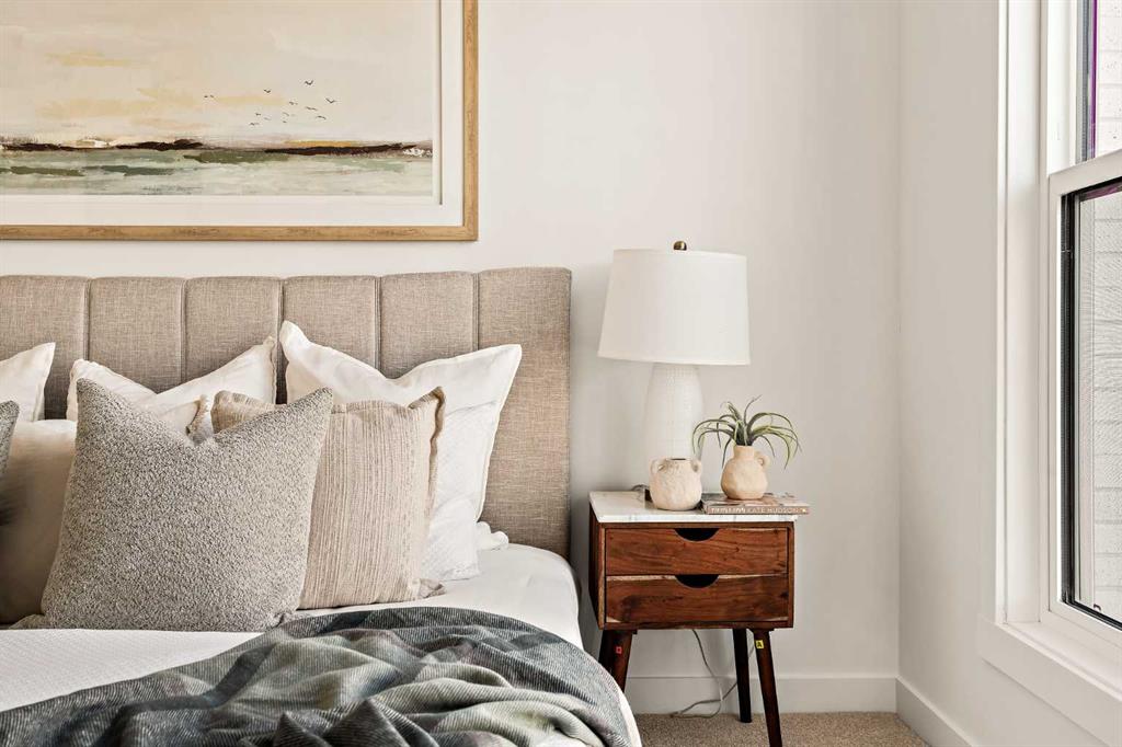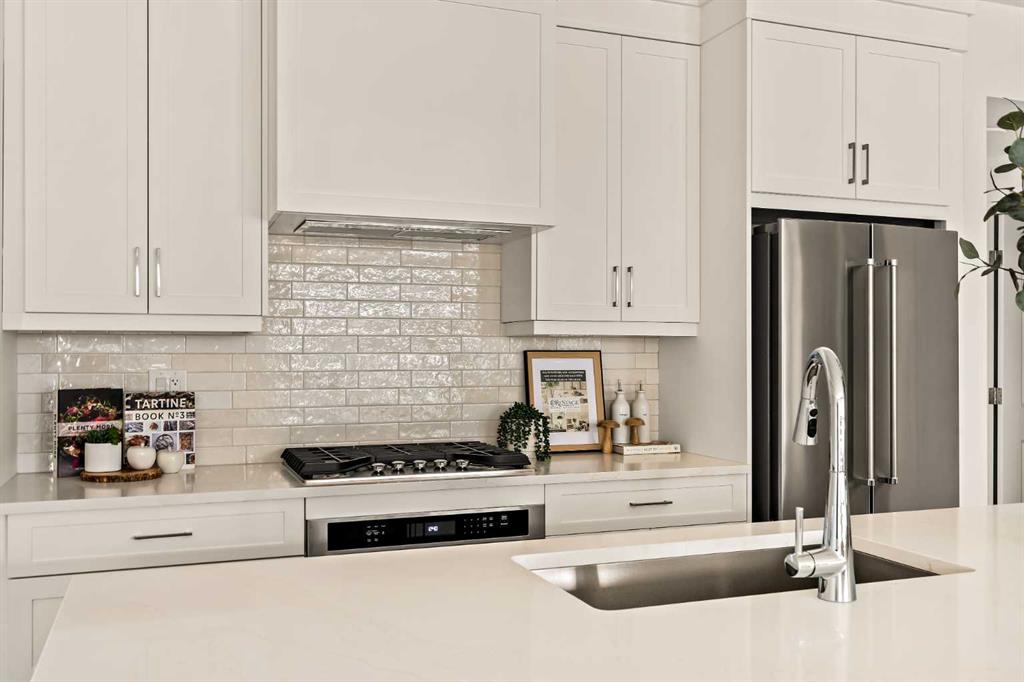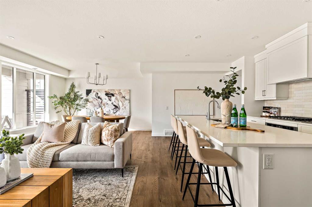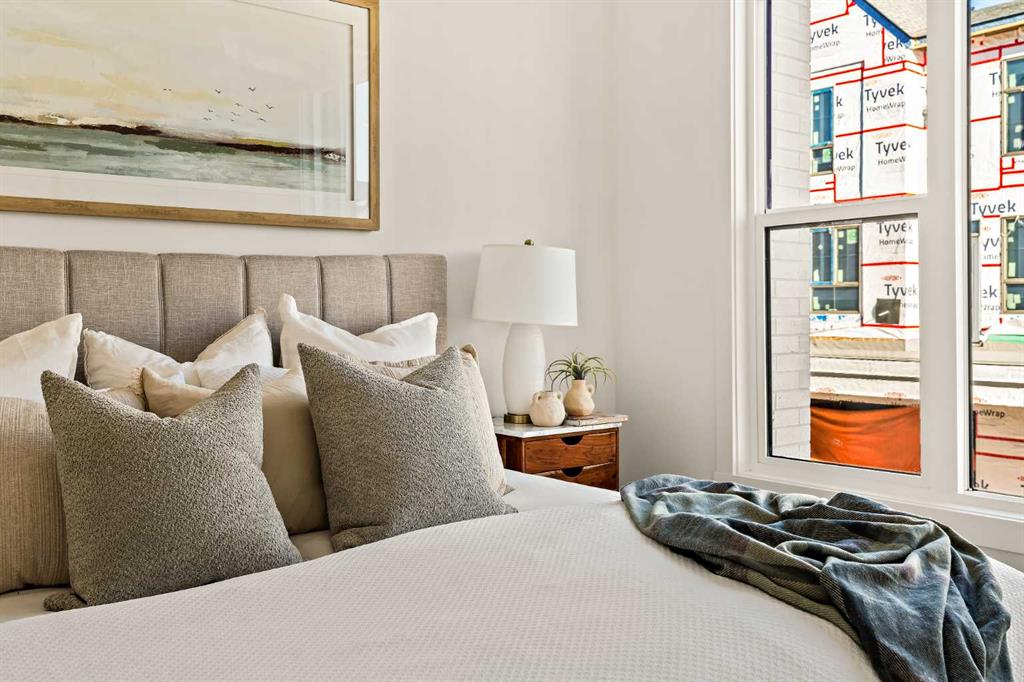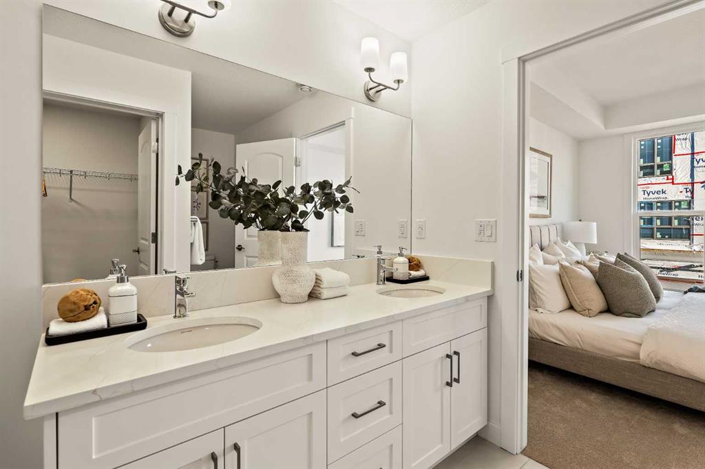 Welcome to the Regent at Crown Park - a thoughtfully designed townhouse that offers single-level bungalow style living without compromise. Designed with down-sizers in mind, this maintenance-free townhouse combines a bungalow lifestyle with a double attached garage - all while giving you a maintenance-free lifestyle, perfect for those who travel, or simply just don't want the hassle of exterior maintenance, landscaping or snow removal! This brand new 3 bedroom, 2 bathroom townhome has nearly 1,300 ft2 of living space over one level and a lower level with virtually endless storage and a private double attached garage! The brilliantly designed living area was created for entertainment with a central kitchen that opens to the living and dining areas with a wall of windows that flood the space with natural light. The timeless kitchen has white shaker cabinets, light quartz countertops and a suite of built-in appliances including a chimney hood fan, gas cooktop and built-in oven. The sprawling kitchen overlooks both the living and dining areas, ensuring the chef is never left out. A central fireplace with floor-to-ceiling plaster finish anchors the main living area with ample space for 6 to sit comfortably. The large dining area has space for a table and buffet if desired, providing flexible furnishing options to meet your needs. The primary suite is located at the back of the home and features a large walk-in closet and spa-inspired ensuite with dual sinks and a tiled walk-in shower. The centrally located laundry room, complete with upper cabinetry and a countertop for added convenience, perfectly separates the primary suite from secondary rooms for optimal privacy. Two additional bedrooms and a full bathroom round out this expansive single-level living space. The secondary rooms provide added flexibility for a guest room(s), home office, media room or studio space - while keeping a broad appeal for resale value. The lower level has a large storage room and oversized utility room (~17'x7') that could easily be used for a hobby space. An oversized double attached garage completes the interior of the home. Lastly, a large covered southwest-facing patio, spanning over 26' wide, provides the perfect outdoor living space with views overlooking the park and is complete with a gas line and hose bib for added convenience to everyday living. A bungalow style townhouse with a double attached garage is an exceptionally rare find - don't let this opportunity pass by. Purchase with peace of mind - this brand new home includes a comprehensive builder warranty + Alberta New Home Warranty. Located just minutes from downtown, countless amenities and in an established and developed area, you can move into your new home with confidence - knowing all that is around your beautiful new home.