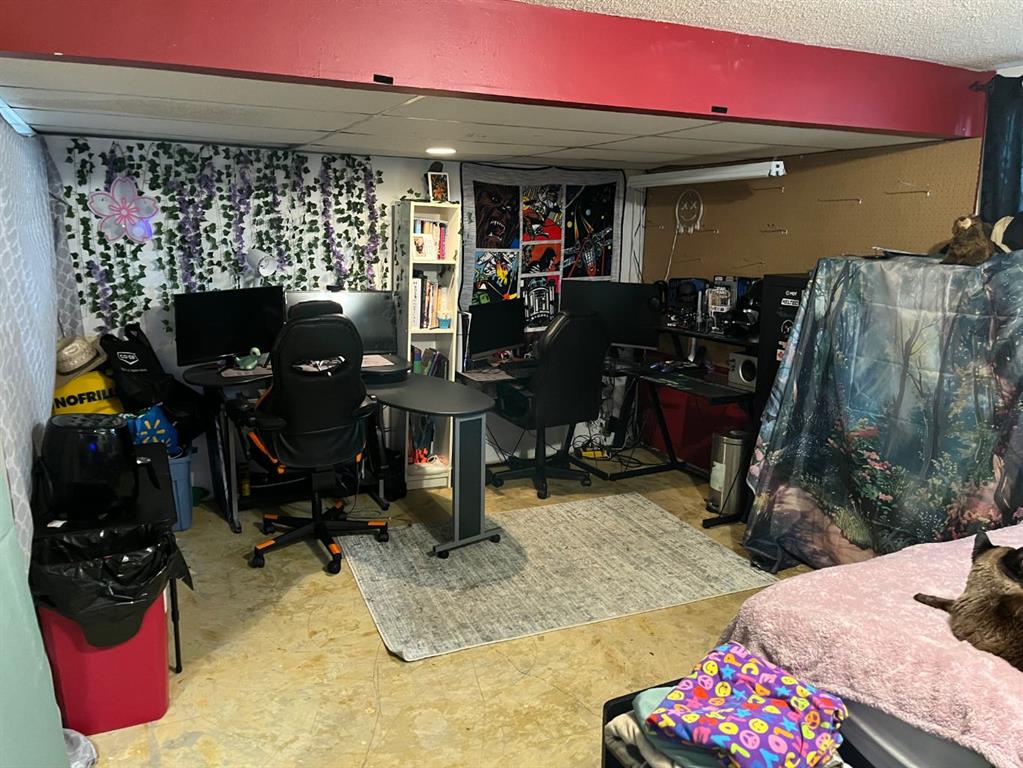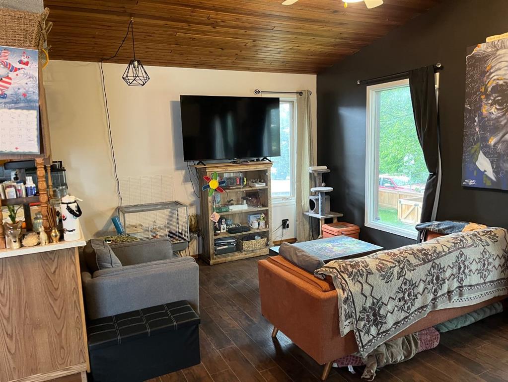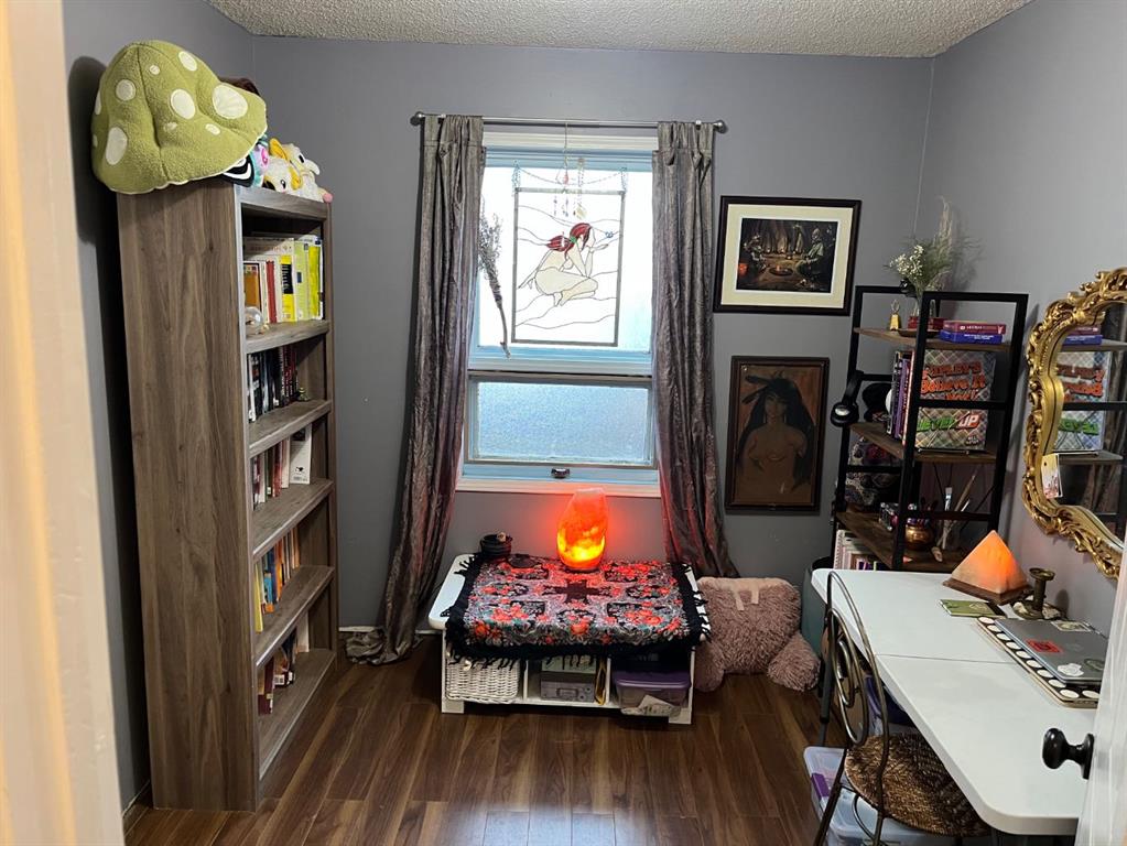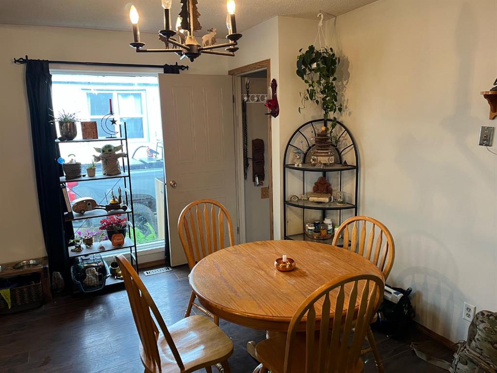 This four-bedroom, two-bathroom duplex is perfectly situated in an ideal location close to schools, shopping, and everyday conveniences, making it an excellent choice for families or investors alike. The main level offers a welcoming layout with an open kitchen featuring updated appliances, seamlessly connected to the dining area and a sunken living room. The living room is a true highlight, showcasing vaulted wood ceilings, and an abundance of natural light that creates a warm and inviting atmosphere. A four-piece bathroom, the primary bedroom with private access to the covered deck, and an additional bedroom complete the main floor, providing comfortable and functional living space. The lower level includes a free standing natural gas stove for added warmth. Two spacious bedrooms and a convenient two-piece bathroom, offering privacy and flexibility for guests, teens, or a home office setup. A utility room with a stacked washer and dryer, along with a laundry sink, completes the lower level. Outside, the property offers a private yard featuring garden boxes ready for planting and a handy storage shed. Combining a thoughtful layout, attractive features, and a sought-after location, this duplex offers comfortable living with room to grow.