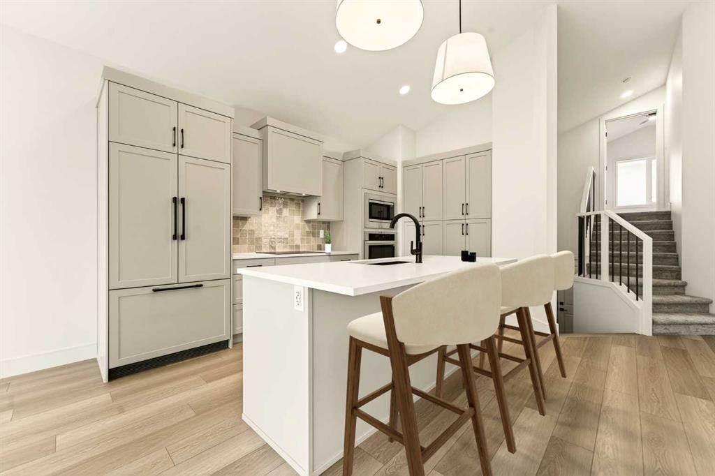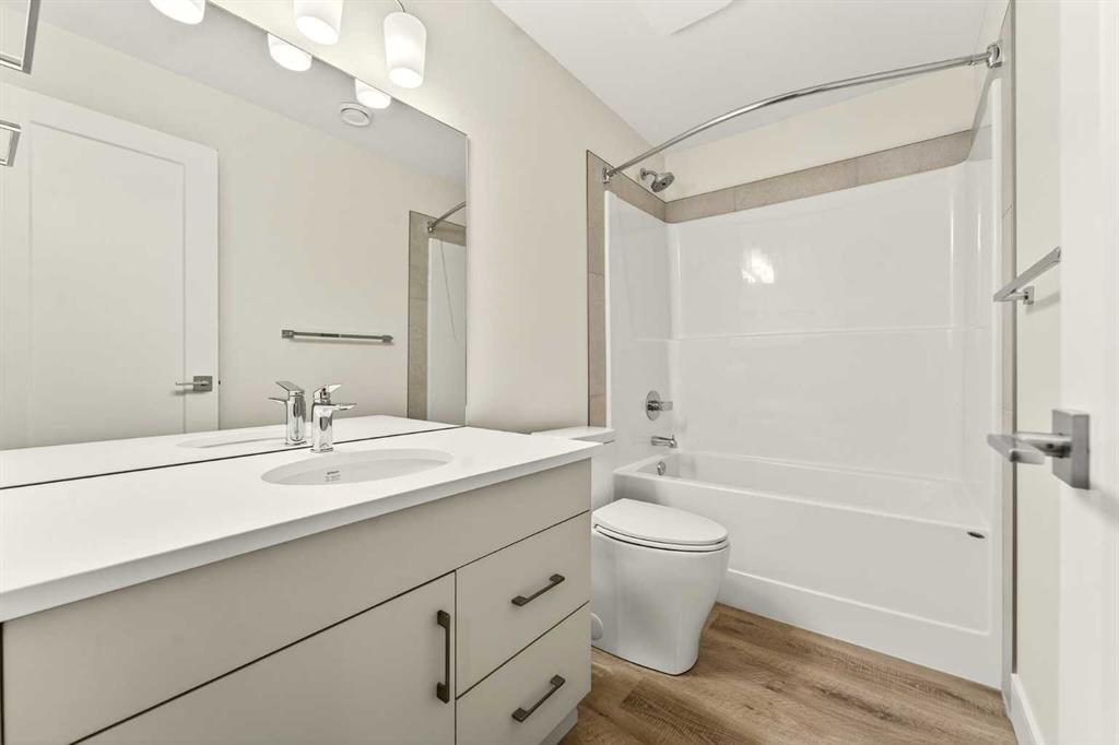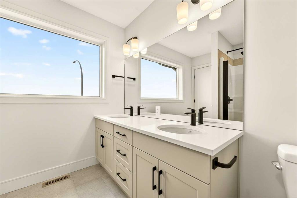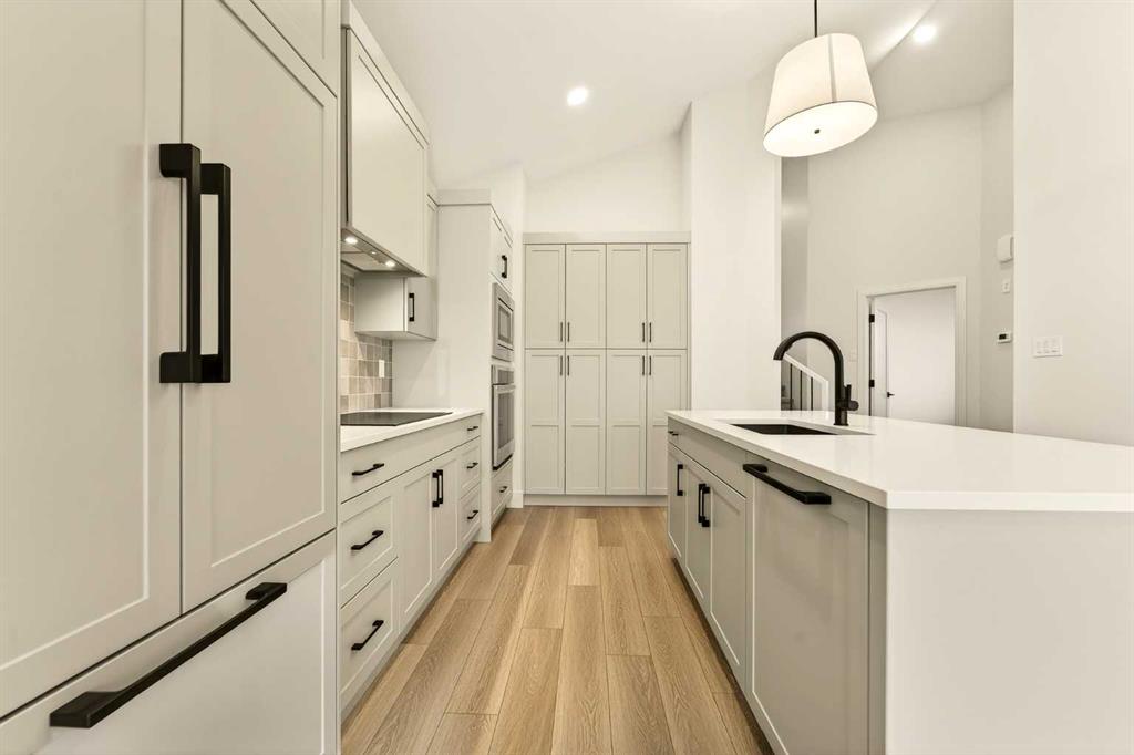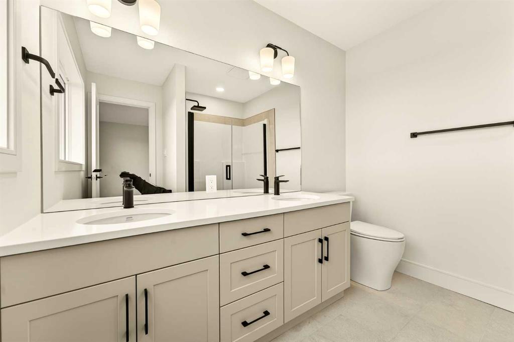 Welcome to a brand new, legally suited home built by Stranville Living Master Builder, located in one of Lethbridge’s most sought-after family neighbourhoods—Copperwood in West Lethbridge. This is a thoughtfully designed property that actually gets suited living right, with key features like two furnaces, separate laundry for each living space, separate parking, and a layout that works just as well for homeowners as it does for extended family or rental income. The bi-level design creates an impressive main living space, highlighted by vaulted ceilings that immediately give the home a sense of scale and openness. The kitchen is a true focal point, finished with quartz countertops, Stranville’s signature panelled Fisher & Paykel fridge, an induction cooktop, built-in oven and microwave, and a panelled dishwasher that blends seamlessly into the cabinetry for a clean, high-end look. Adjacent to the kitchen, the dining area is bright and inviting, with sliding glass doors that open onto the deck, making it easy to enjoy the outdoors or plan future entertaining. Just off the dining area, the living room is framed by chalet-style windows that flood the space with natural light and add to the overall grandeur of the main floor. This level also includes two spacious bedrooms and a well-appointed four-piece bathroom, making it ideal for families or guests. The primary bedroom is set apart on its own level, offering privacy that’s rarely found in a legally suited home. It features a generous walk-in closet and a standout ensuite with dual vanities and a tiled walk-in shower—an upgrade that truly elevates the space. Adding even more functionality is a full-size laundry room on this level, complete with a wash bay, a practical detail that’s easy to appreciate once you have it. The legal suite is accessed through a separate rear entrance, conveniently located just past the rear parking pad. Downstairs, you’ll find a large living area, a functional kitchen finished with quartz countertops and stainless steel appliances, two spacious bedrooms, and a four-piece bathroom. The layout is bright, comfortable, and designed to feel like a true secondary home rather than an afterthought. Set in Copperwood, close to schools, parks, walking paths, and everyday amenities, this legally suited property offers flexibility, quality construction, and long-term value in one of West Lethbridge’s best neighbourhoods. This home is virtually staged, and included in the price is a 10-year new home warranty and GST.