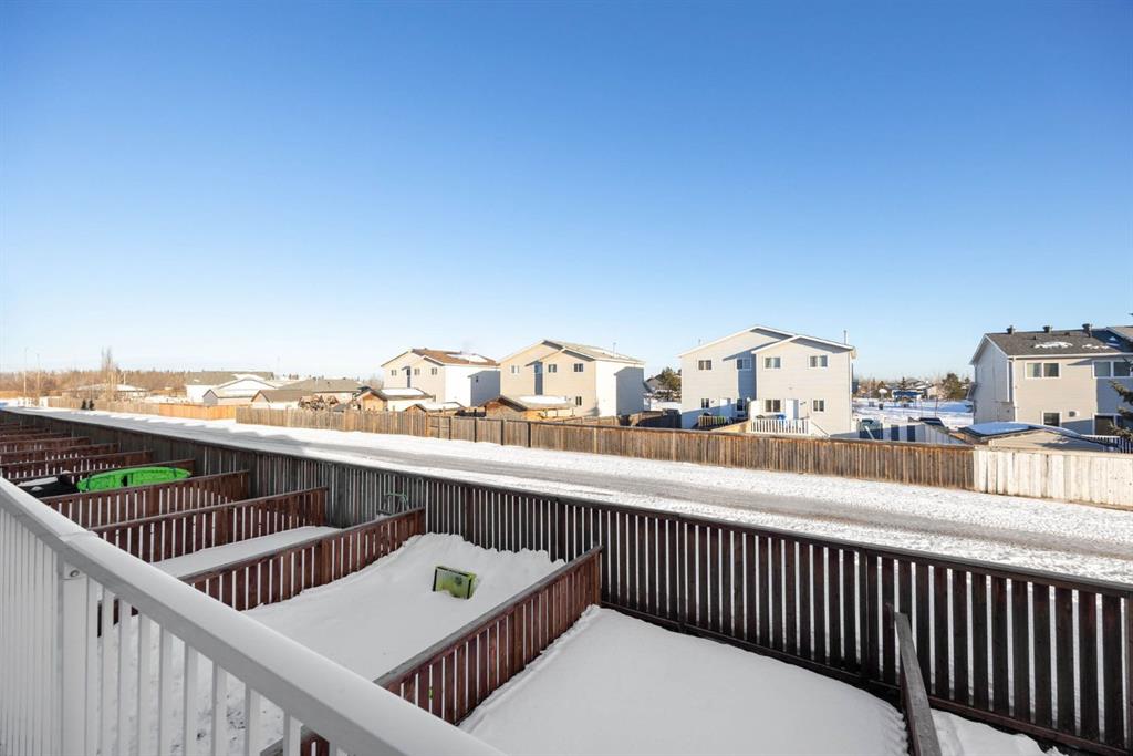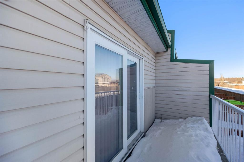 Welcome to this move in ready 2-bedroom home with an attached garage, ideally located in Prairie Creek and offering exceptional value. Whether you’re a first-time buyer or a savvy investor, this renovated (no carpet) home delivers comfort, functionality, and convenience in one inviting package. The spacious living room is filled with natural light from oversized windows, creating a warm and welcoming atmosphere with the corner gas fireplace. The kitchen offers plenty of modern white cabinetry, an eaten island and direct access to a balcony with natural gas bbq hookups. Upstairs, you’ll find two generously sized bedrooms, each with large closets, along with a 4-piece bathroom; The master bedroom features a vaulted ceiling with large windows to draw in natural light. The yard is fully fenced and landscaped, perfect for entertaining or pets.Located close to public transit, walking trails, highway 63, the airport, and more, This move-in-ready gem checks all the boxes — value, updates, location, and affordable. Call to book your showing today!