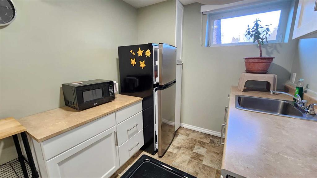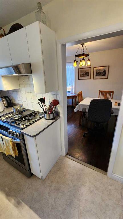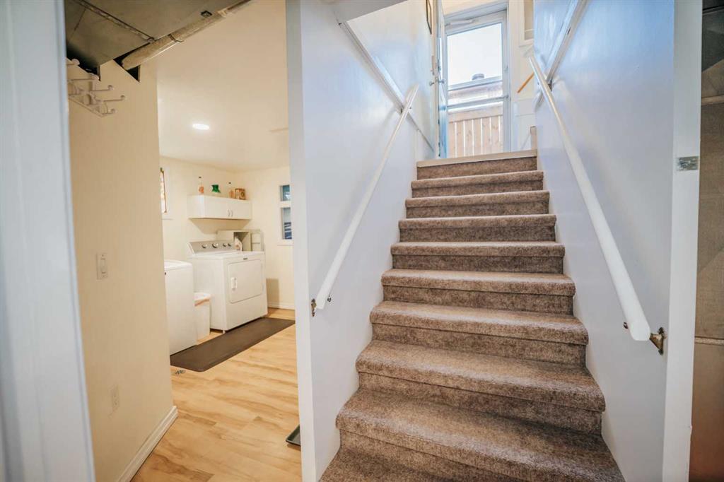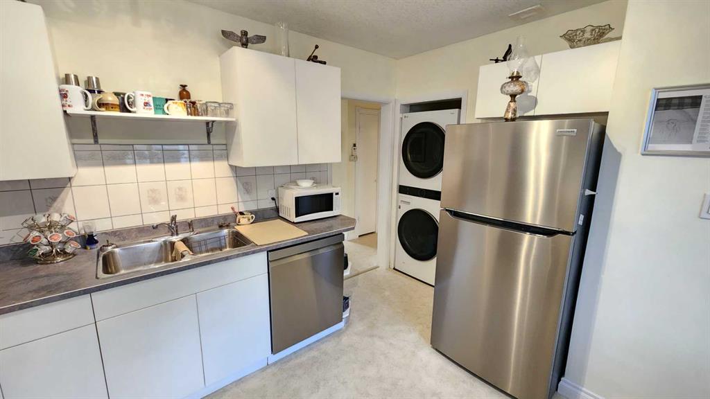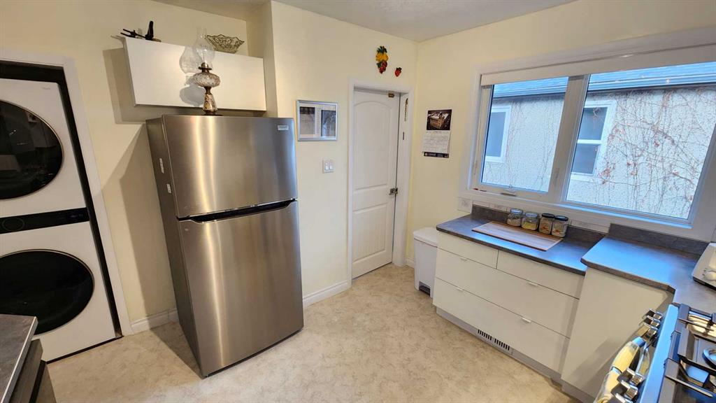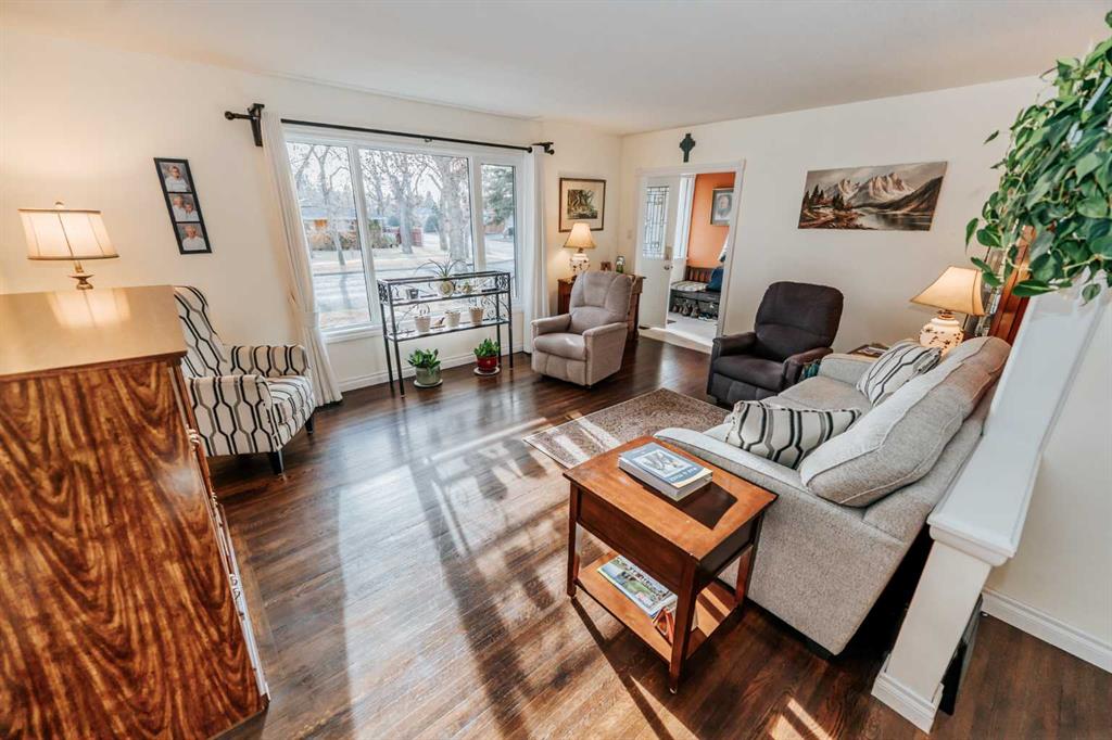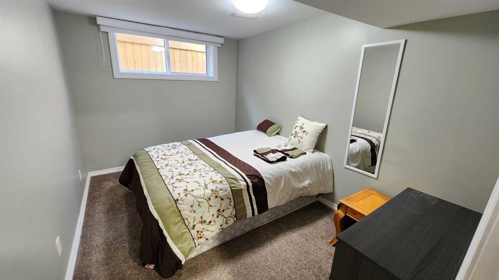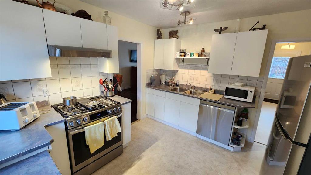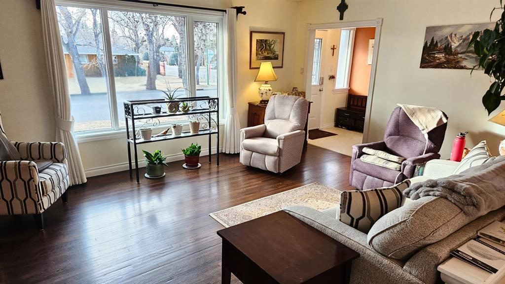 Tasteful renovations + modernizations, with pride of ownership throughout. Basement features its own fridge, stove, and separate laundry room for the suite (illegal status). Modern kitchen, bathrooms + windows. Tons of parking with concrete pad beside & in front of the garage, a gravel drive-through parking area off the alley, and lots of on-street parking also. Lovely hardwood flooring upstairs in the large dining room & living room. Bedroom wardrobe, window coverings, storage shed, and central air-conditioning included. The stacking washer & dryer and stove were upgraded in 2023, and the dishwasher and central air conditioner were just replaced in 2025.