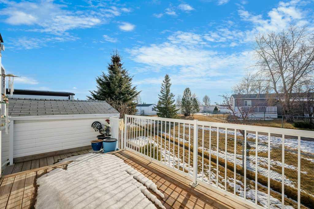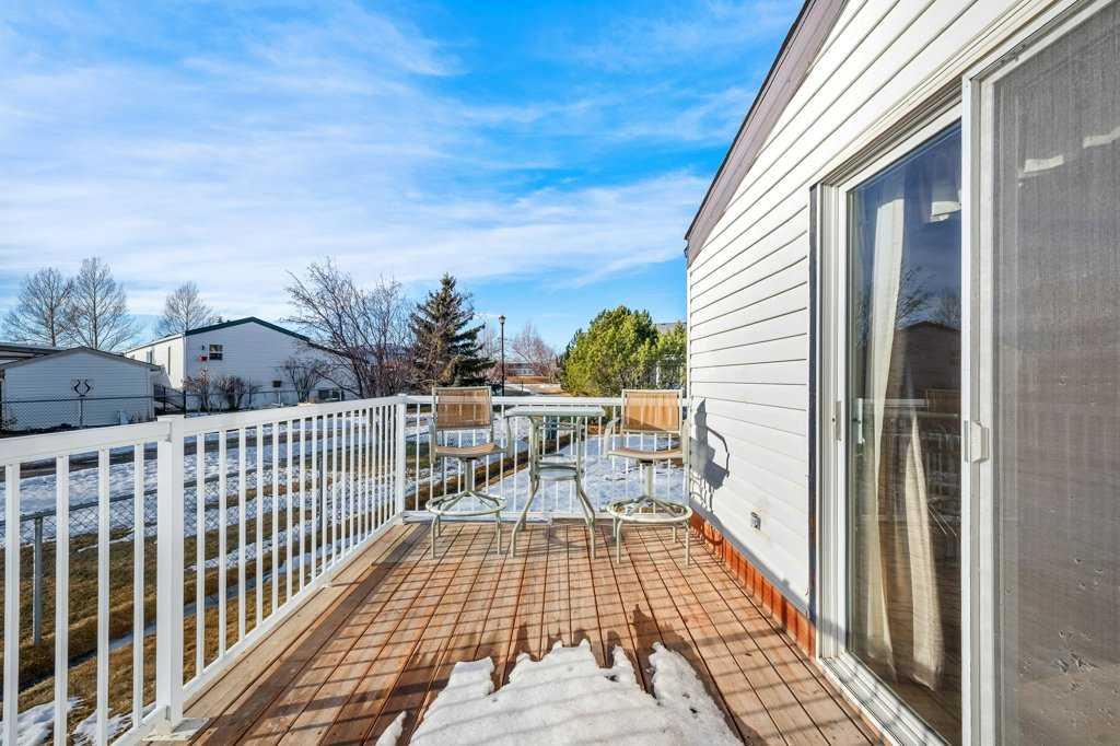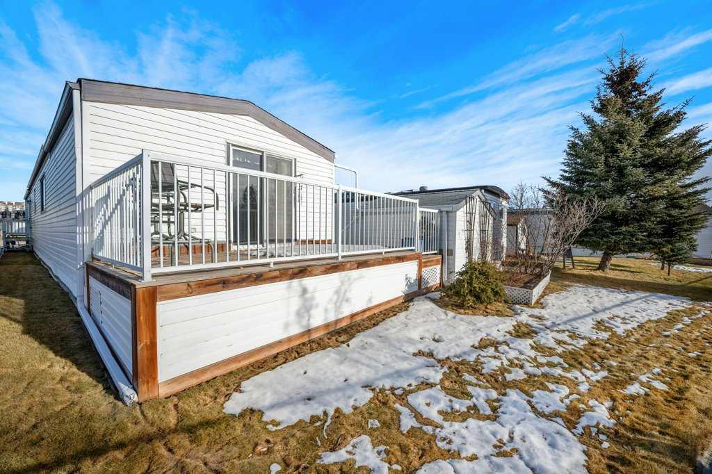 Welcome to this beautifully maintained and thoughtfully designed mobile home located in the highly desirable Westgrove Mobile Home Park, offering a true sense of pride of ownership in one of Northwest Calgary’s most established communities. This spacious home features 2 bedrooms and 2 bathrooms, including a private ensuite with a walk-in shower and patio access to the South facing back deck. An exceptionally functional layout with two large living rooms and two separate dining areas—perfect for both everyday living and entertaining. A dedicated storage/wine room/den adds even more versatility. The large addition expands the living space to make the total open living space over 1400 square feet and includes brand-new temperature-regulating baseboard heaters and a cozy electric fireplace with adjustable temperature control to set your comfort level without worry creating a comfortable retreat year-round. The home has been meticulously cared for and shows beautifully. Step outside to enjoy the sun-filled south-facing backyard, accessible from two separate doors, featuring a solid wood deck and a lower stone patio—ideal for relaxing, entertaining, or enjoying warm summer evenings. The large storage shed includes an additional refrigerator, perfect for beverages and entertaining. Parking is effortless with a covered carport and additional driveway space for two more vehicles. Significant recent upgrades include a brand-new roof and all new plumbing beneath the home, complete with a self-regulating heat tape system and dedicated system, offering peace of mind and protection from freezing—no winter worries here. Located just two doors from the clubhouse, residents enjoy convenient access to the pool, games room, and community amenities, enhancing the lifestyle appeal of this welcoming neighbourhood.