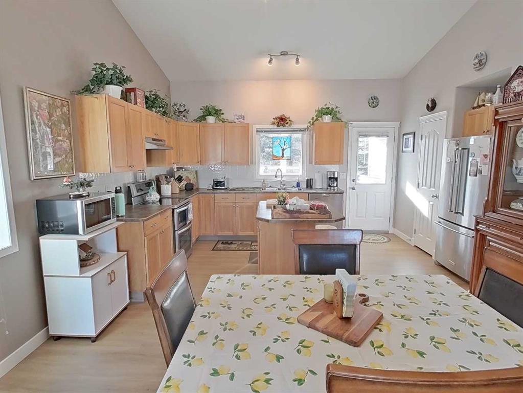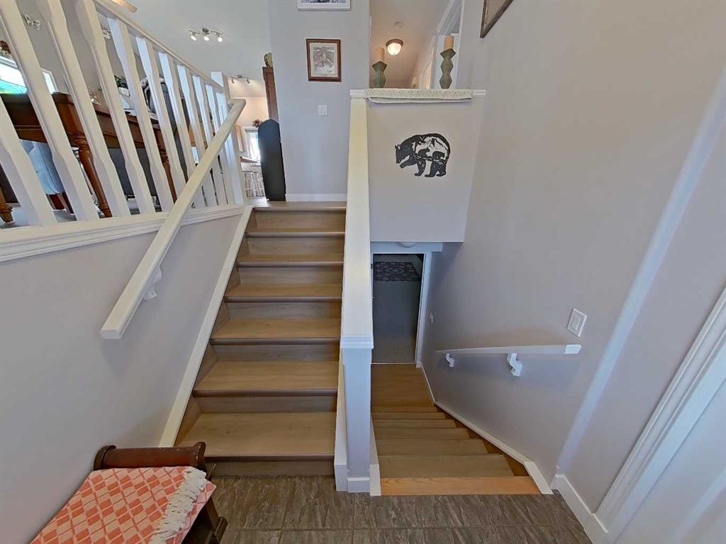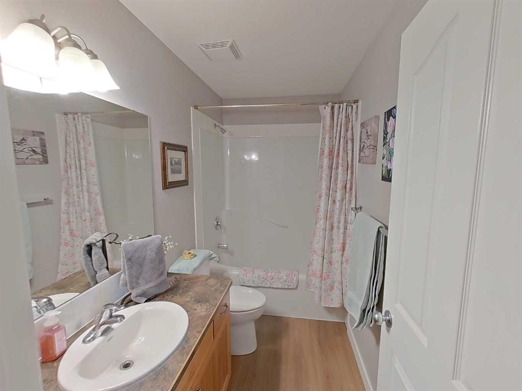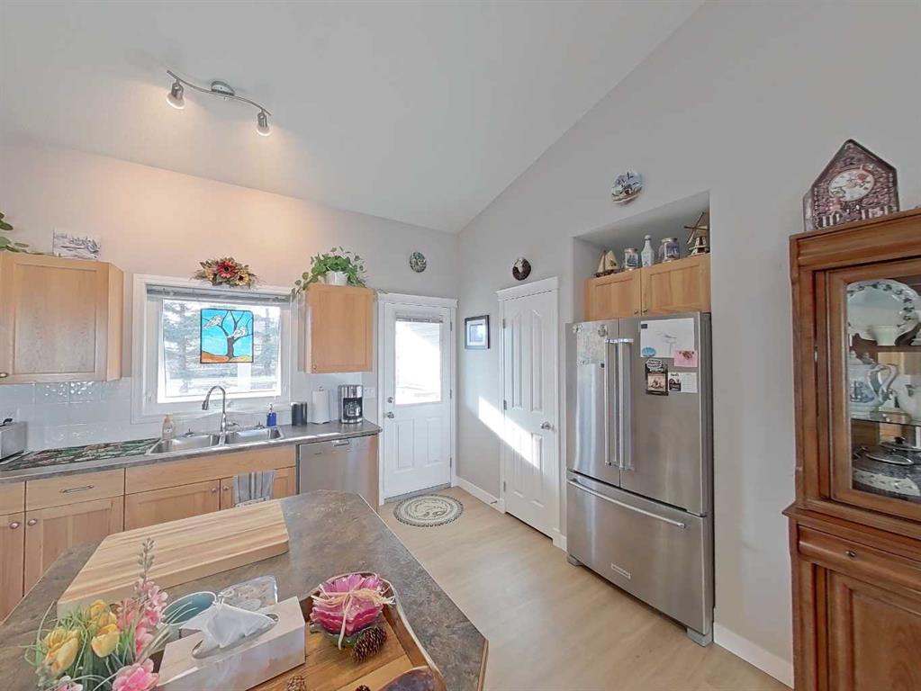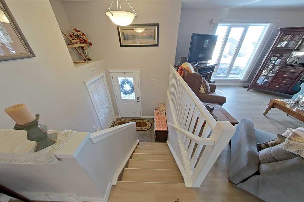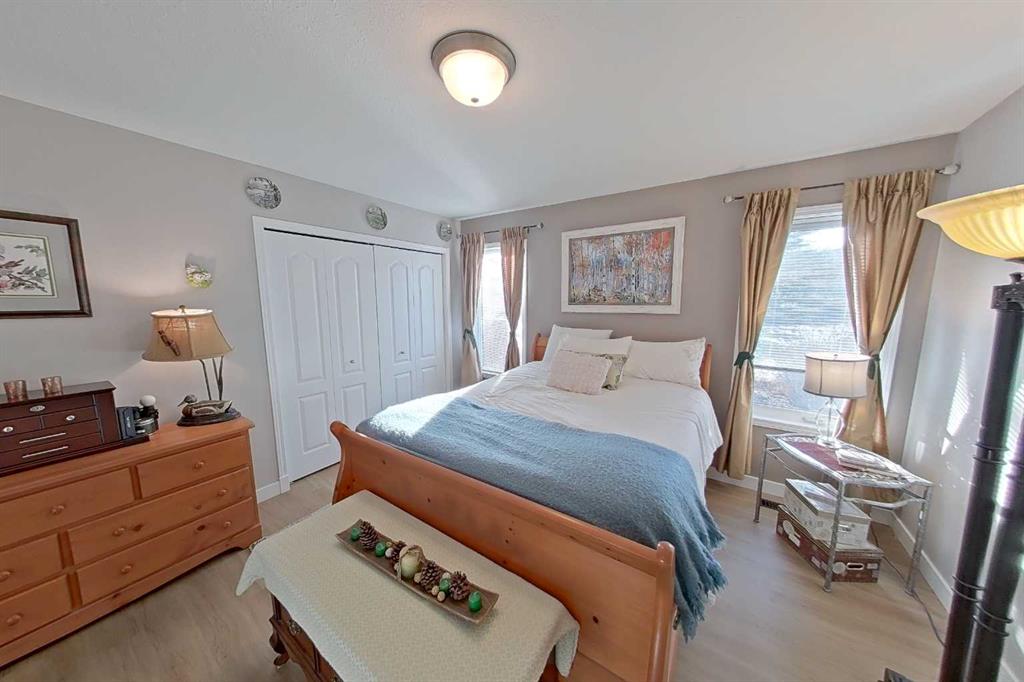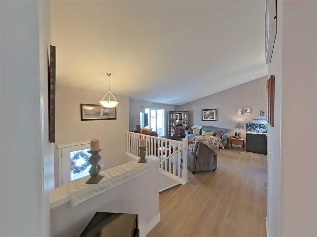 *Original Owner* *10/10 Curb Appeal!! Enter through the Archway, past the Apple trees, to the Covered Front Deck and into this Fully Finished Bi-Level with 3 Full bathrooms and 4 Bedrooms(total). This very Bright & Open plan welcomes you with lofty Vaulted Ceilings. The main floor has 2 bedrooms, 2 full bathrooms and a main-floor laundry. Upon entering you will discover all NEW VINYL PLANK FLOORING & BASEBOARDS(December 2025)on the main level, a good-sized living and dining room combo plus a spacious kitchen with Hickory cabinetry, a large island and a Walk-in Pantry! The fully finished basement offers 2 more bedrooms, a 3rd full bathroom, an enormous rumpus room and a big utility room with plenty of storage. You can choose Sun or Shade because this home has a FRONT DECK and a REAR DECK with gas barbecue hook up. The Covered rear deck offers plenty of storage underneath and is overlooking the park-like South-west facing rear yard. The Sunny, nicely treed yard can offer some shade also and you will be sure spend plenty of time on the big, lower patio. You could make this a great place for entertaining friends & family or simply relaxing. This family home is nicely located in a great community with ponds and paved walking trails all just steps away. There are no neighbours behind and yes there is a rear alley if you need off street parking..