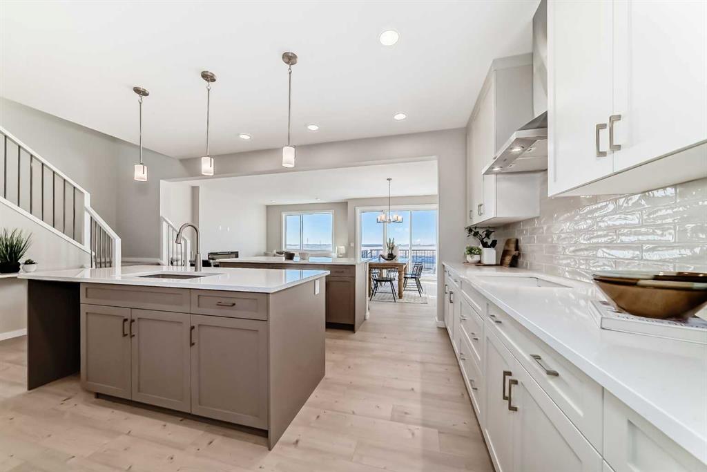 QUICK POSSESSION - JEFFERSON MODEL — WHERE SPACE, SCALE, AND TIMING ALL LINE UP – COMPLETING END OF MARCH Built by Homes by Avi, this is the ever popular Jefferson model—a thoughtfully designed 2,343 sq ft home set in Walden, a community that’s nearly complete. Translation? You get a brand new home without living in a construction zone—and no future new builds competing with your investment. At the heart of the home is a chef’s kitchen that actually behaves like one. DUAL ISLANDS anchor the space, creating room for five star meals, entertaining at scale, or real life chaos that still looks good. A CHIMNEY HOOD FAN, clean sightlines, and generous prep space make this kitchen both functional and show stopping. Load your groceries in through the WALK THROUGH PANTRY and functional mudroom off the garage. The great room is grounded by a FIREPLACE that gives the space presence, while the 9’ TRIPLE-PANE PATIO DOOR floods the main floor with natural light and opens to effortless indoor-outdoor flow. A SIDE ENTRY and 9’ FOUNDATION add long-term flexibility, with ROUGH INS already in place for a future secondary living area—planned properly, not patched in later. A 200 AMP ELECTRICAL PANEL rounds out the behind-the-walls upgrades buyers wish more homes had. Upstairs, the central bonus room creates separation and breathing room between bedrooms—perfect for movie nights, homework zones, or a second lounge that doesn’t compete with the main floor. The primary retreat delivers exactly what you want at the end of the day: a spacious bedroom, a luxurious ensuite, and a walk-in closet that understands real wardrobes. Set in Calgary’s Deep SE, you’re minutes from everyday amenities and moments from Fish Creek Park—one of the city’s most loved outdoor escapes. Why wait through years of community build out when you can have brand new, right now, in a neighbourhood that’s already arrived? This is the Jefferson—fully realized, thoughtfully upgraded, and perfectly timed. Book your viewing with your favorite realtor today. • PLEASE NOTE: Photos are of ANOTHER SPEC of the same model – fit & finish may differ. Interior selections & floorplans shown in photos. Kitchen appliances are included & will be installed by possession.