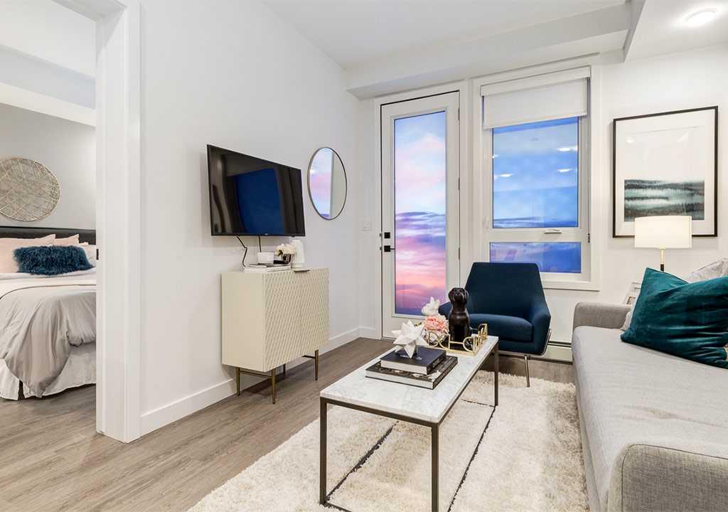 BRAND NEW AND ALL YOUR OWN + ONE BEDROOM LAYOUT + UNDERGROUND PARKING STALL + AC UNIT + WINDOW COVERINGS + STORAGE LOCKER. Step into the best of city living with Autumn at University District, a thoughtfully designed new condo community from Homes by Avi. This one-bedroom, one-bath unit with a private balcony combines modern comfort with elevated style in one of Calgary’s most vibrant urban villages. Whether you’re buying your first home, simplifying your space, or expanding your investment portfolio, this address offers the perfect balance of livability and location. Inside, a curated interior palette featuring quartz countertops, subway tile backsplashes, and sleek hardware. Durable luxury vinyl plank flooring, Whirlpool appliances, and contemporary plumbing fixtures complete the upscale aesthetic. A spacious walk in closet and in-unit laundry make everyday living seamless, while a secure storage locker offers extra room for the things you don’t need every day. Beyond your front door, Autumn raises the bar for condo living with lifestyle-focused amenities: a fitness centre, co-working and entertainment lounge, a top-floor terrace with fire tables and barbecues, heated bike storage, and even a pet wash station. The building is tailored for active, low-maintenance living, with every detail designed for comfort and connection. And the neighbourhood? Unmatched. University District brings together the energy of city life with the charm of a close-knit community. Walk out your front door to grocery stores, cafés, restaurants, a movie theatre, dog parks, seasonal events, and even a winter skating rink are all connected by pedestrian friendly pathways and green space. Steps from the University of Calgary, Foothills and Children’s Hospitals, and just minutes to Market Mall, transit, and major routes, this location puts everything at your fingertips. Estimated possession is set for spring 2026 — giving you time to personalize your home and plan for what’s next. This isn’t just a new condo; it’s a lifestyle you’ll love coming home to. PLEASE NOTE: Photos are of a finished Showsuite of the same model – fit and finish may differ on finished unit. Interior selections and floorplans shown in photos.