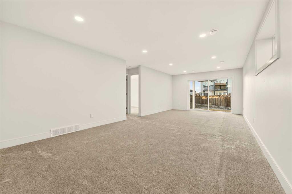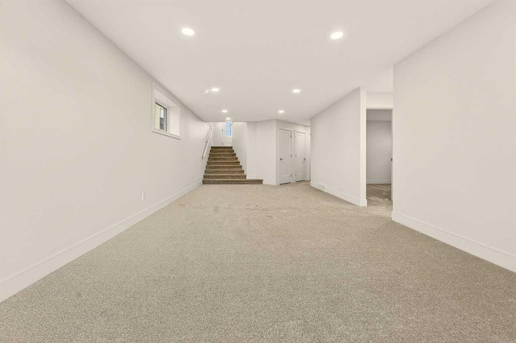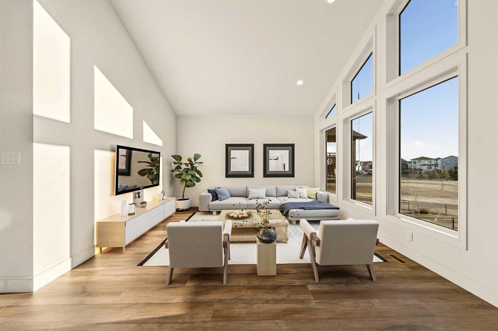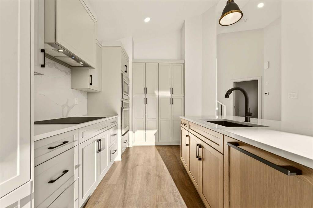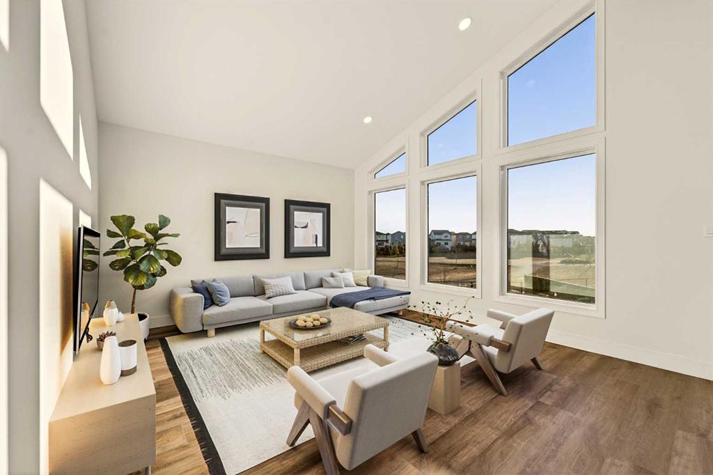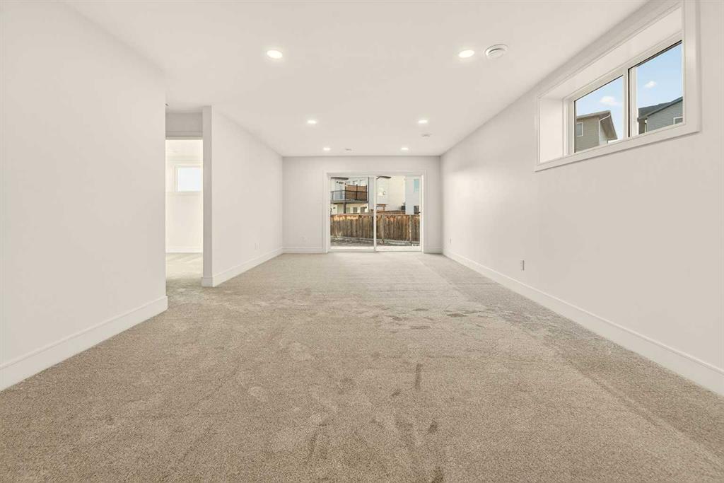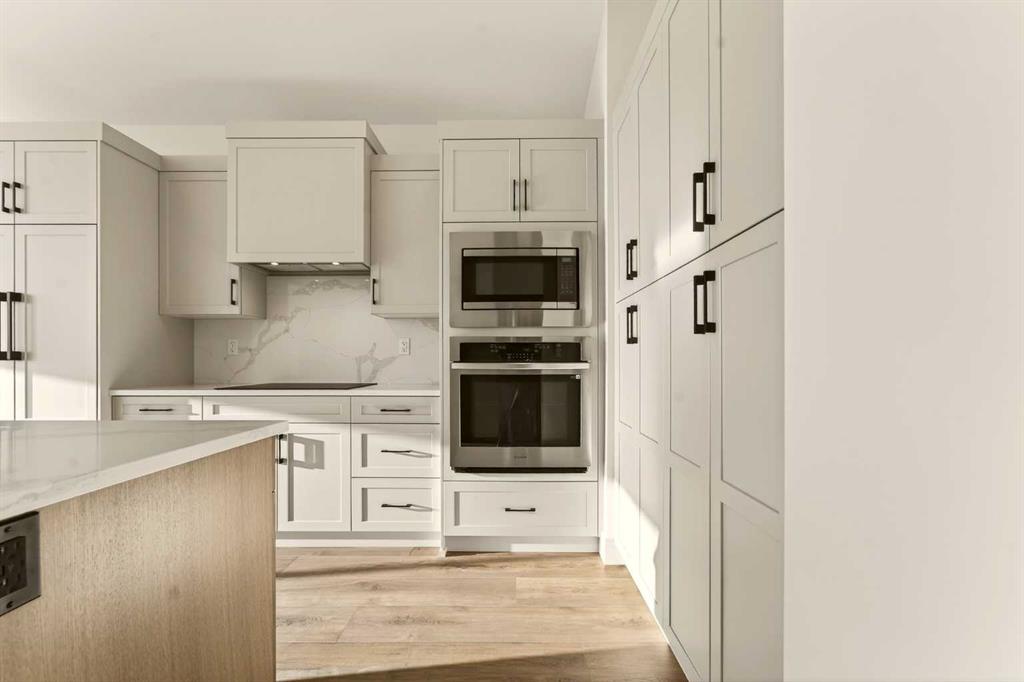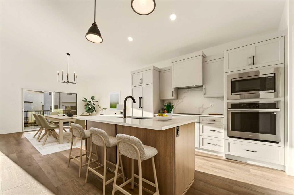 Welcome to a brand new, fully developed bi-level home built by Stranville Living Master Builder, complete with a walkout basement and finished deck, and located in one of Lethbridge’s most recreation-focused communities—Blackwolf. Tucked away on a quiet cul-de-sac, this home backs directly onto one of Blackwolf’s green strips and sits on an impressive pie-shaped lot, offering a rare combination of privacy, views, and outdoor space. Just minutes away is Legacy Park, widely regarded as the best family outdoor park in the city, making this location especially appealing for active households. The main floor is designed to impress the moment you step inside, with tall vaulted ceilings that immediately create a sense of openness and scale. The kitchen anchors the space and blends high-end finishes with thoughtful design, featuring quartz countertops, a panelled Fisher & Paykel fridge, a panelled dishwasher that disappears into the cabinetry, an induction cooktop, and built-in oven and microwave. It’s a clean, modern look that feels both elevated and practical. Adjacent to the kitchen, the dining area opens through sliding glass doors onto the finished deck, perfectly positioned to overlook the green strip and expansive backyard. The living room takes full advantage of the home’s setting with double-height windows that flood the space with natural light while framing the view and enhancing the dramatic ceiling height. Also on this level are two spacious bedrooms and a well-appointed four-piece bathroom, making the layout functional for families and guests alike. The primary bedroom is set on its own level, offering a sense of privacy that’s often hard to find. This retreat includes a spacious walk-in closet and a thoughtfully designed ensuite with dual vanities and a walk-in shower, creating a comfortable and refined space to unwind. The walkout basement is fully developed and extends the living space with two additional bedrooms and a large family room featuring sliding glass doors that open directly to the backyard. With direct access to the pie-shaped lot and green space beyond, this lower level feels bright, open, and seamlessly connected to the outdoors. Set in a community known for trails, parks, and lifestyle-focused design, this Blackwolf home delivers standout construction, a rare lot, and a layout that maximizes both space and setting. GST is included in the price, as well as a 10 year new home warranty, photos are virtually staged.