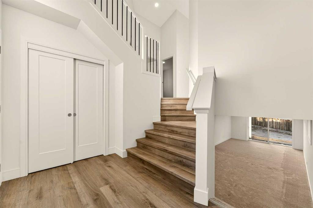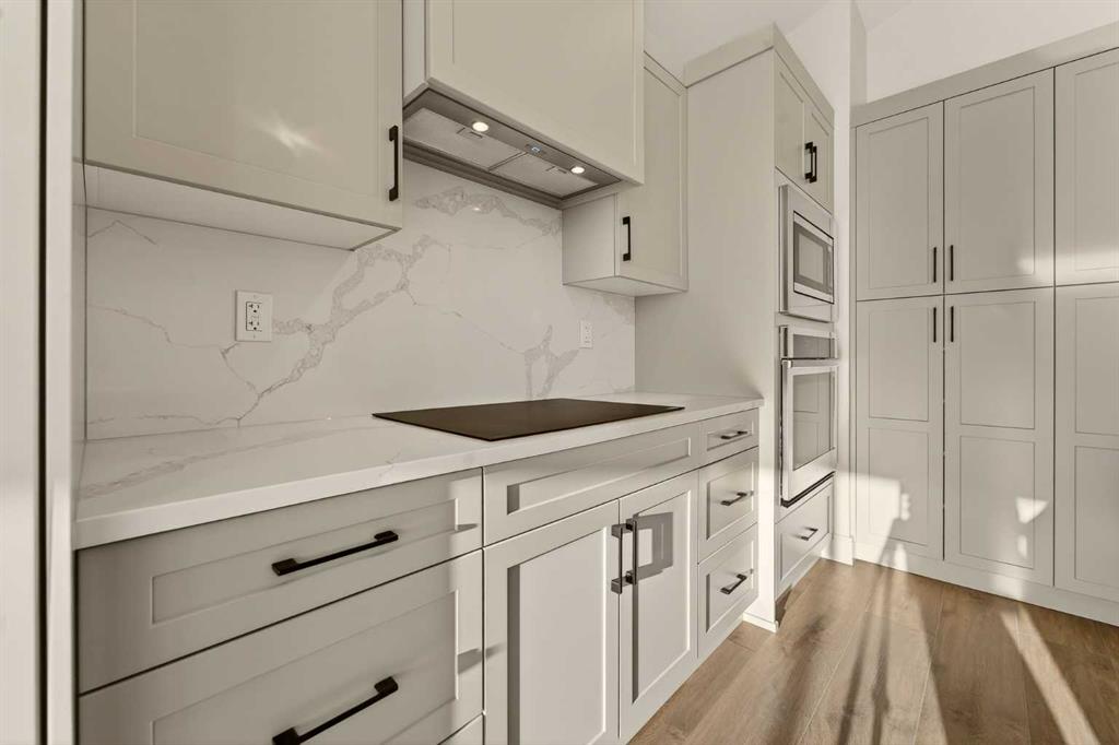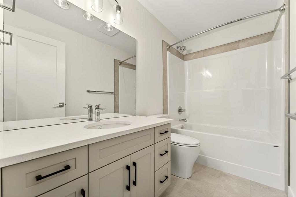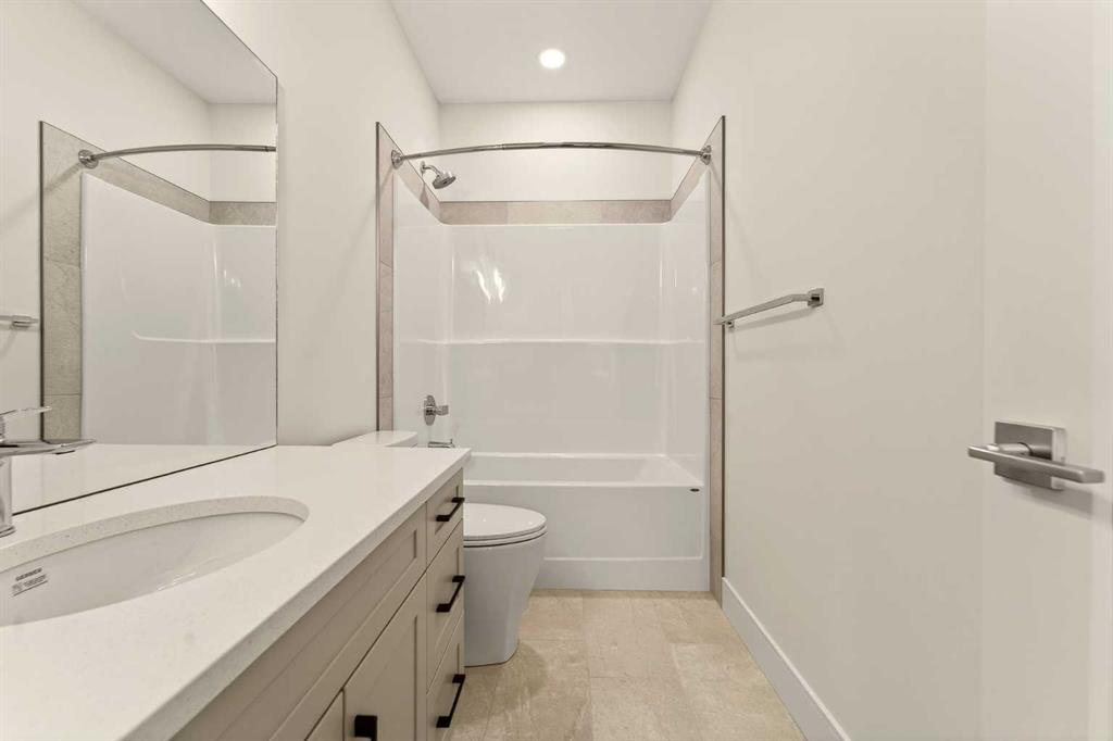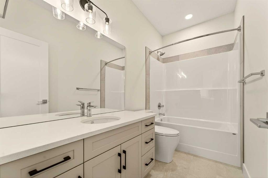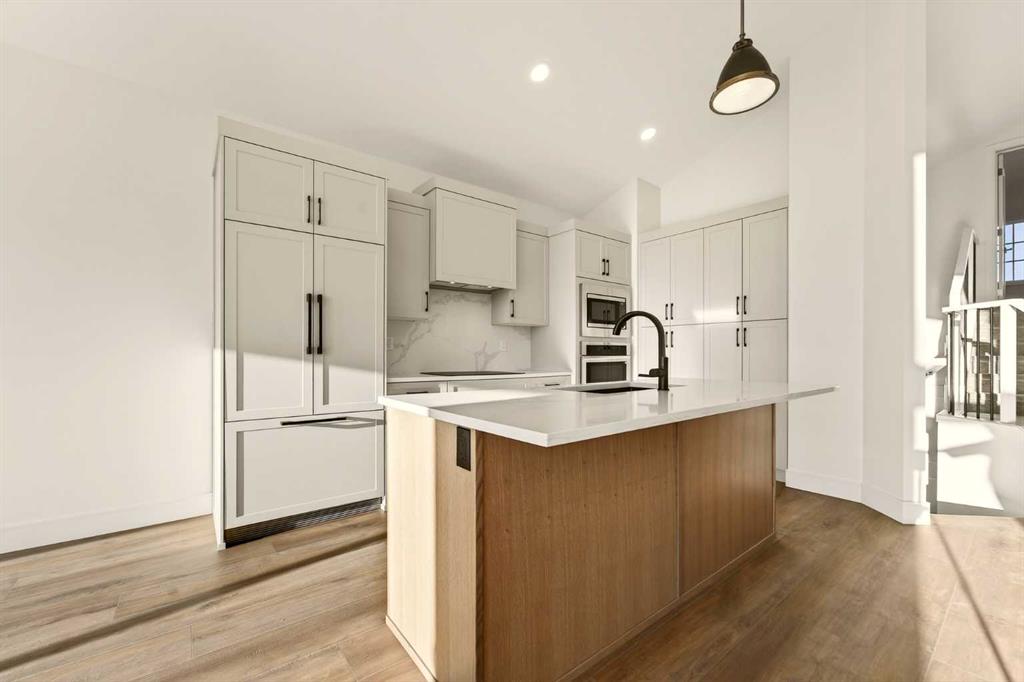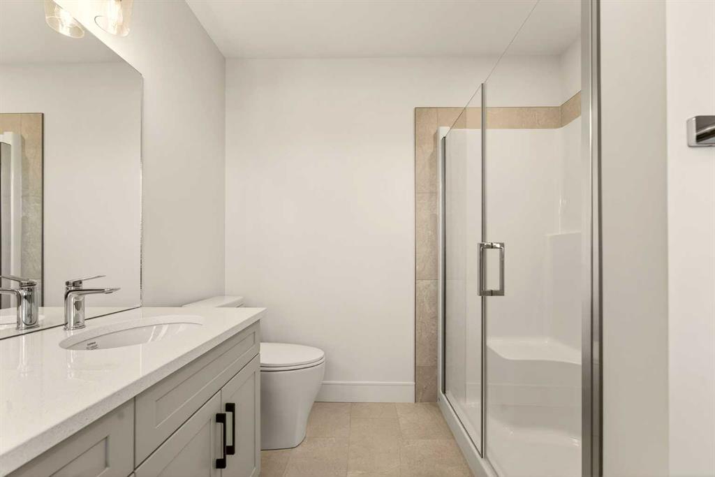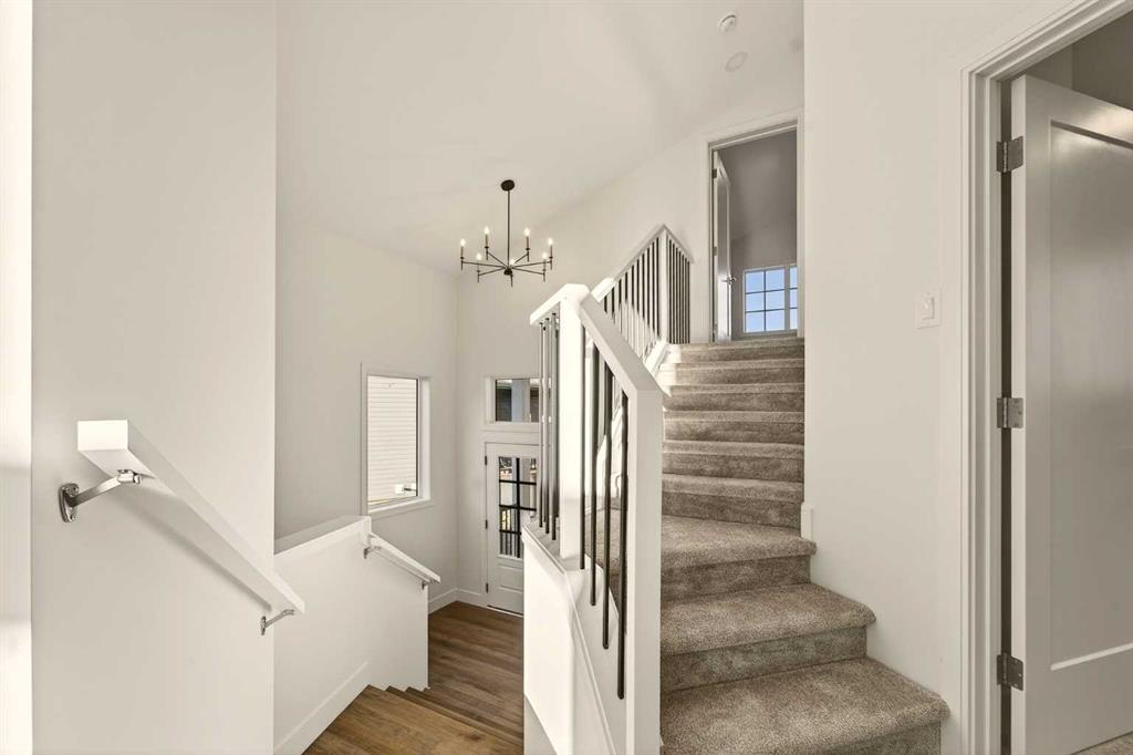 Welcome to a brand new, fully developed bi-level home built by Stranville Living Master Builder, complete with a walkout basement and finished deck, and located in one of Lethbridge’s most recreation-focused communities—Blackwolf. Tucked away on a quiet cul-de-sac, this home backs directly onto one of Blackwolf’s green strips and sits on an impressive pie-shaped lot, offering a rare combination of privacy, views, and outdoor space. Just minutes away is Legacy Park, widely regarded as the best family outdoor park in the city, making this location especially appealing for active households. The main floor is designed to impress the moment you step inside, with tall vaulted ceilings that immediately create a sense of openness and scale. The kitchen anchors the space and blends high-end finishes with thoughtful design, featuring quartz countertops, a panelled Fisher & Paykel fridge, a panelled dishwasher that disappears into the cabinetry, an induction cooktop, and built-in oven and microwave. It’s a clean, modern look that feels both elevated and practical. Adjacent to the kitchen, the dining area opens through sliding glass doors onto the finished deck, perfectly positioned to overlook the green strip and expansive backyard. The living room takes full advantage of the home’s setting with double-height windows that flood the space with natural light while framing the view and enhancing the dramatic ceiling height. Also on this level are two spacious bedrooms and a well-appointed four-piece bathroom, making the layout functional for families and guests alike. The primary bedroom is set on its own level, offering a sense of privacy that’s often hard to find. This retreat includes a spacious walk-in closet and a thoughtfully designed ensuite with dual vanities and a walk-in shower, creating a comfortable and refined space to unwind. The walkout basement is fully developed and extends the living space with two additional bedrooms and a large family room featuring sliding glass doors that open directly to the backyard. With direct access to the pie-shaped lot and green space beyond, this lower level feels bright, open, and seamlessly connected to the outdoors. Set in a community known for trails, parks, and lifestyle-focused design, this Blackwolf home delivers standout construction, a rare lot, and a layout that maximizes both space and setting. GST is included in the price, as well as a 10 year new home warranty, photos are virtually staged.
