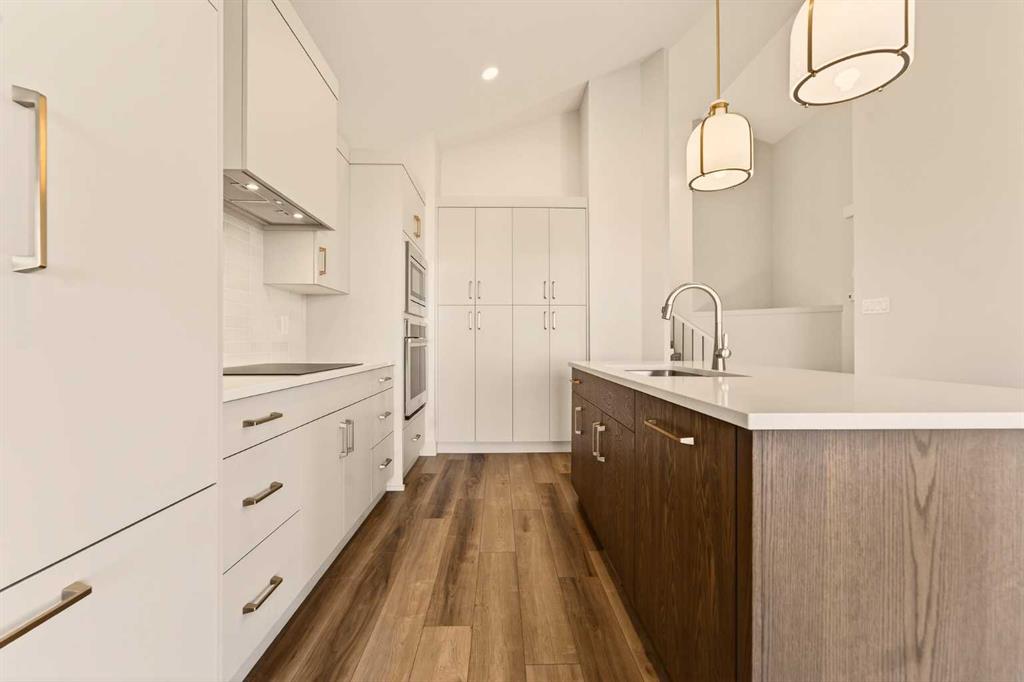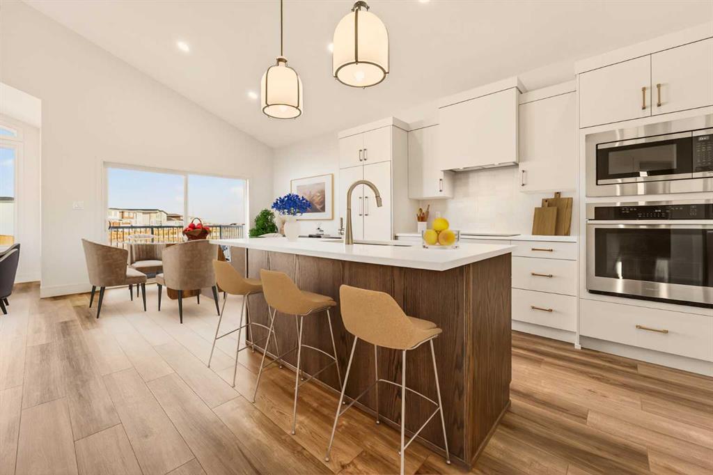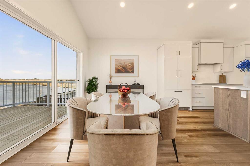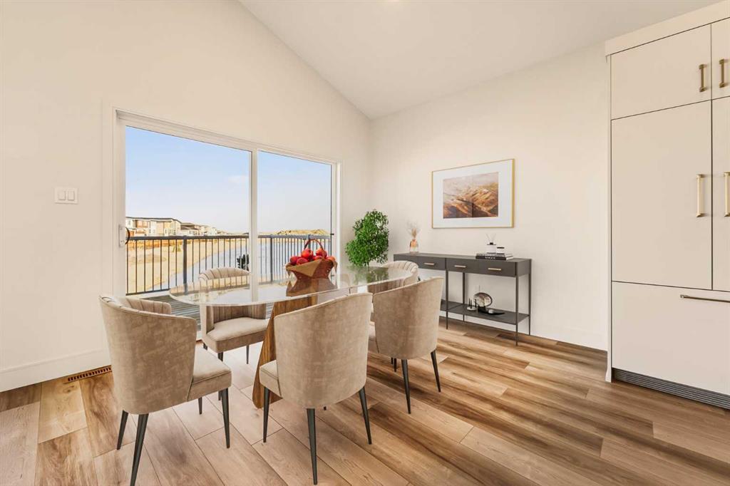 Built by Stranville Living Master Builder, this brand new bi-level walkout home is beautifully positioned backing directly onto a pond in the highly sought-after community of Southbrook. GST is included in the sale price. Southbrook is widely regarded as one of the most convenient new developments in Lethbridge, offering quick access to everyday essentials while still feeling calm and residential. From here, you’re minutes to Henderson Lake, Evergreen Golf Centre, and major shopping hubs including Costco and Real Canadian Superstore, with an elementary school comfortably within walking distance. Stepping onto the main level, the vaulted ceilings immediately create a sense of scale that feels both open and dramatic, setting the tone for the rest of the home. The upgraded kitchen is a standout, featuring quartz countertops, soft-close cabinetry, a sleek induction cooktop, built-in oven and microwave, and a fully paneled Fisher & Paykel refrigerator that blends seamlessly into the cabinetry for a clean, modern look. The adjoining dining room is flooded with natural light and opens through sliding glass doors onto a finished deck overlooking the pond, making indoor-outdoor living effortless. The living room carries that same sense of grandeur, highlighted by chalet-style windows that rise upward and perfectly frame the pond beyond, turning the view into a focal point year-round. This level also includes two spacious bedrooms and a well-appointed four-piece bathroom, offering flexibility for family, guests, or a home office setup. The upper level is dedicated entirely to the primary retreat, creating a private space separated from the rest of the home. The primary bedroom enjoys elevated views and flows into a five-piece ensuite complete with dual vanities, a tiled walk-in shower, and a spacious walk-in closet designed for everyday functionality. With its walkout basement, thoughtful layout, and one of Southbrook’s most desirable pond-backed settings, this home delivers a refined balance of comfort, design, and location. This home is virtually staged, and included in the price is a 10 year new home warranty.