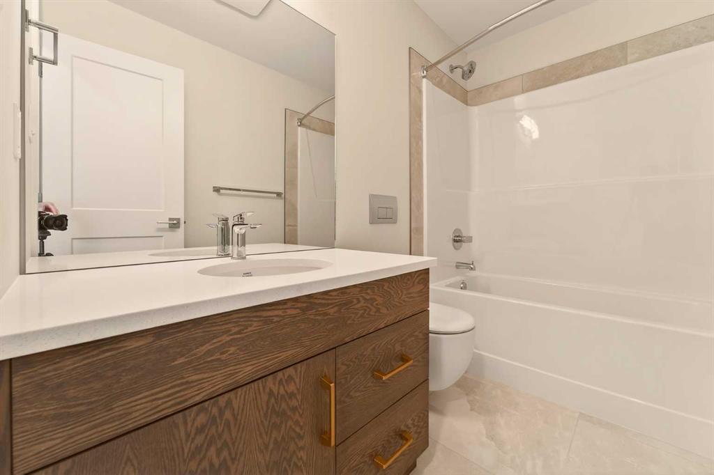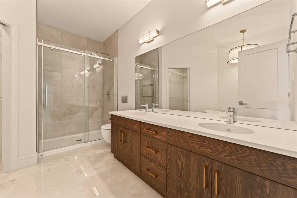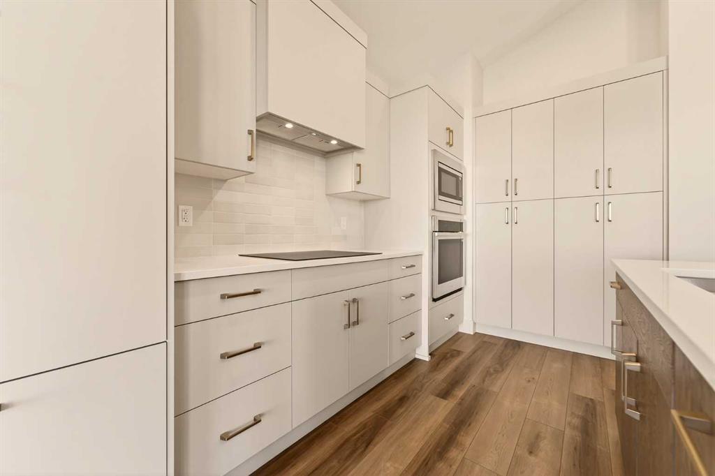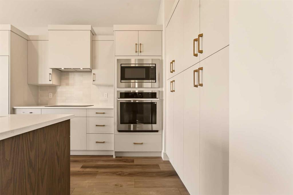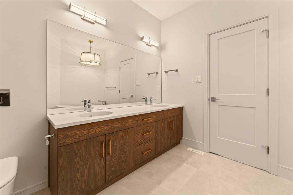 Built by Stranville Living Master Builder, this brand new bi-level walkout home is beautifully positioned backing directly onto a pond in the highly sought-after community of Southbrook. GST is included in the sale price. Southbrook is widely regarded as one of the most convenient new developments in Lethbridge, offering quick access to everyday essentials while still feeling calm and residential. From here, you’re minutes to Henderson Lake, Evergreen Golf Centre, and major shopping hubs including Costco and Real Canadian Superstore, with an elementary school comfortably within walking distance. Stepping onto the main level, the vaulted ceilings immediately create a sense of scale that feels both open and dramatic, setting the tone for the rest of the home. The upgraded kitchen is a standout, featuring quartz countertops, soft-close cabinetry, a sleek induction cooktop, built-in oven and microwave, and a fully paneled Fisher & Paykel refrigerator that blends seamlessly into the cabinetry for a clean, modern look. The adjoining dining room is flooded with natural light and opens through sliding glass doors onto a finished deck overlooking the pond, making indoor-outdoor living effortless. The living room carries that same sense of grandeur, highlighted by chalet-style windows that rise upward and perfectly frame the pond beyond, turning the view into a focal point year-round. This level also includes two spacious bedrooms and a well-appointed four-piece bathroom, offering flexibility for family, guests, or a home office setup. The upper level is dedicated entirely to the primary retreat, creating a private space separated from the rest of the home. The primary bedroom enjoys elevated views and flows into a five-piece ensuite complete with dual vanities, a tiled walk-in shower, and a spacious walk-in closet designed for everyday functionality. With its walkout basement, thoughtful layout, and one of Southbrook’s most desirable pond-backed settings, this home delivers a refined balance of comfort, design, and location. This home is virtually staged, and included in the price is a 10 year new home warranty.