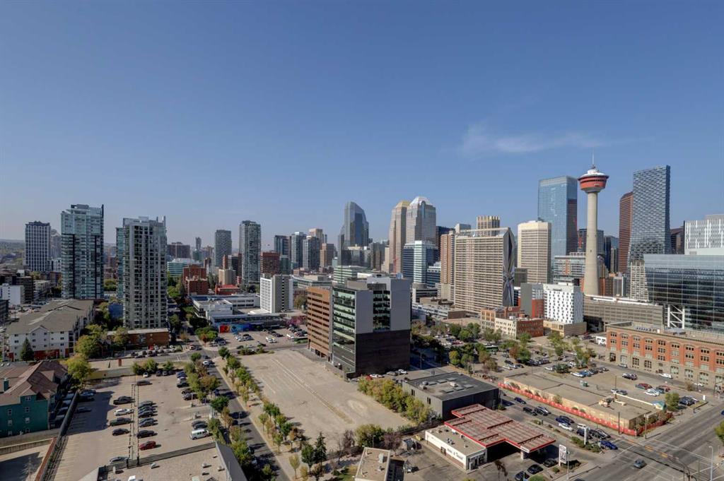 On the 18th floor, perched high above the city in the sought-after Nuera building, this upscale 2-bedroom, 2-bathroom adult-only residence offers unobstructed panoramic views of the downtown skyline and distant mountains—a stunning backdrop both day and night. Step inside and be captivated by the floor-to-ceiling windows that flood the space with natural light and frame the spectacular scenery from every angle day and night. The open-concept layout features a modern kitchen with granite countertops, upgraded cabinetry, perfect for entertaining or enjoying quiet evenings at home. The spacious primary bedroom also boasts floor to ceiling windows, a generous walk-in closet, and a stylish 4-piece ensuite. A second well-appointed bedroom and full bathroom offer flexibility for guests, a home office, or a roommate setup. Located just steps from Stampede Park and the new entertainment district, Nuera offers unmatched access to downtown amenities, dining, transit, and events. Building features include a large fitness centre, residents’ lounge, outdoor terrace, secure underground parking, and concierge service, all designed for comfort, convenience, and lifestyle. Don’t miss this incredible opportunity to own in one of Calgary’s premier high-rises. Call today to book your private showing!