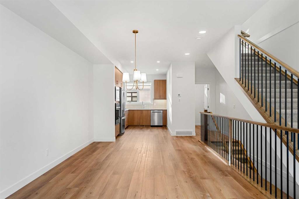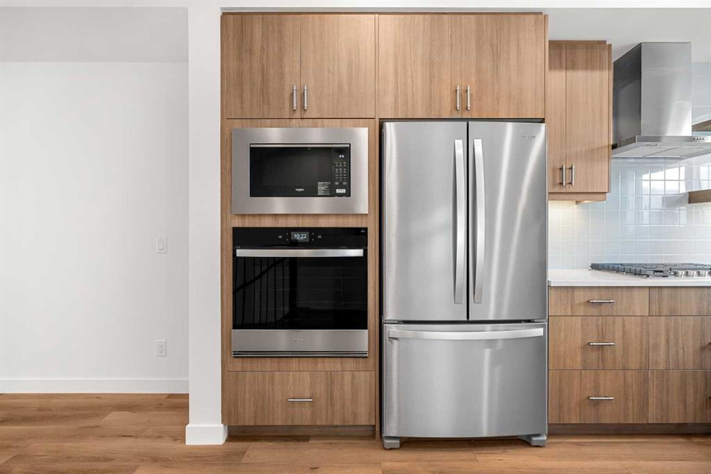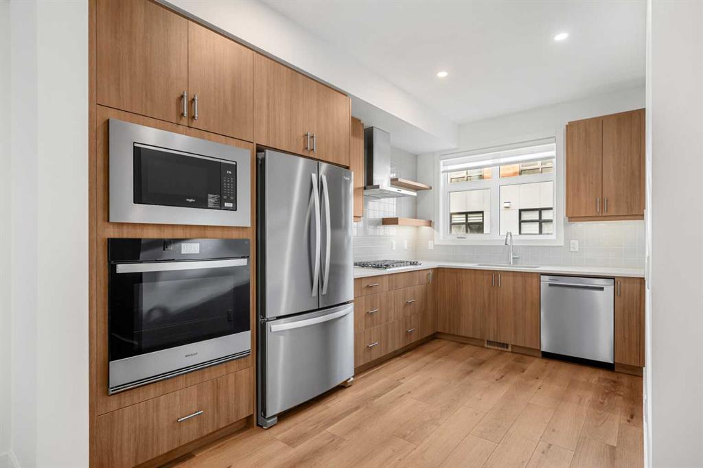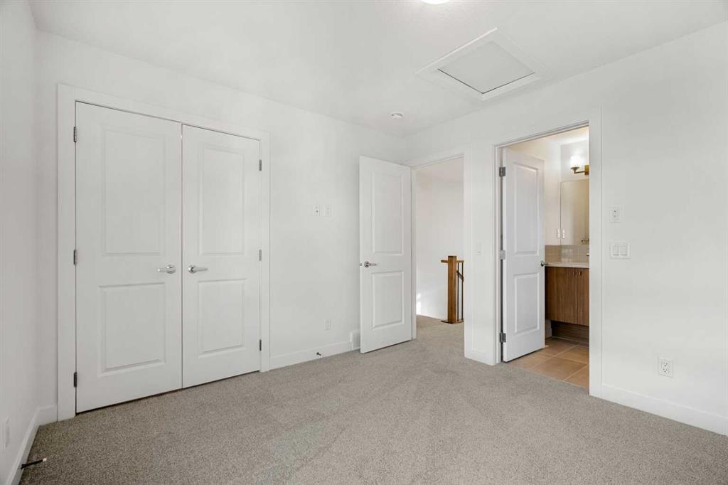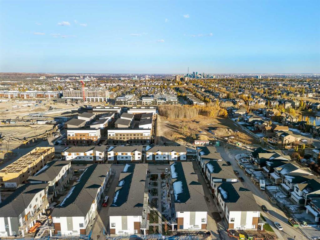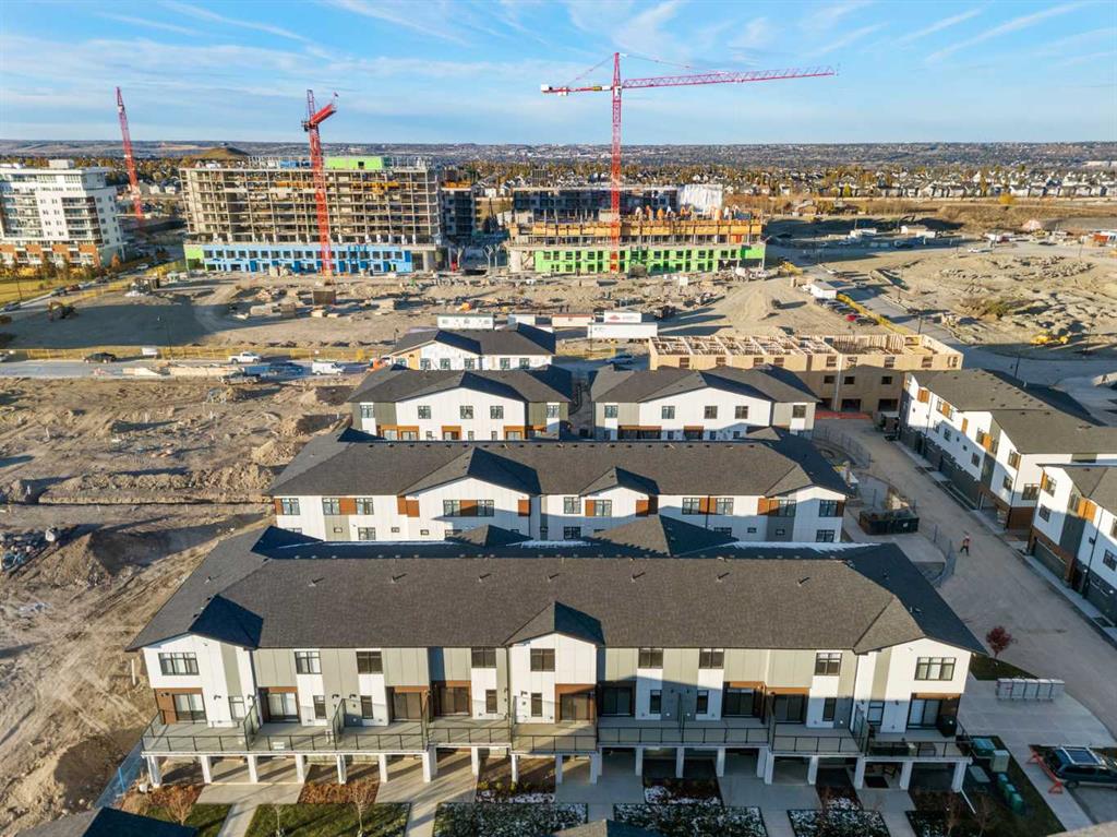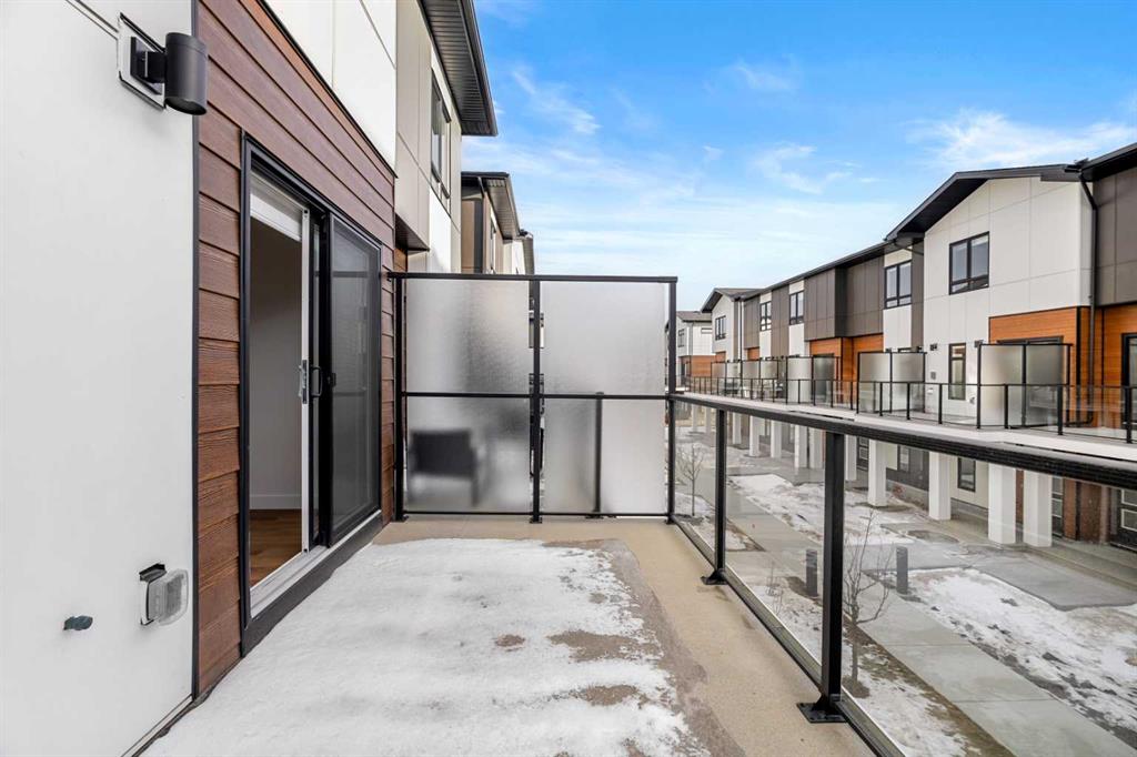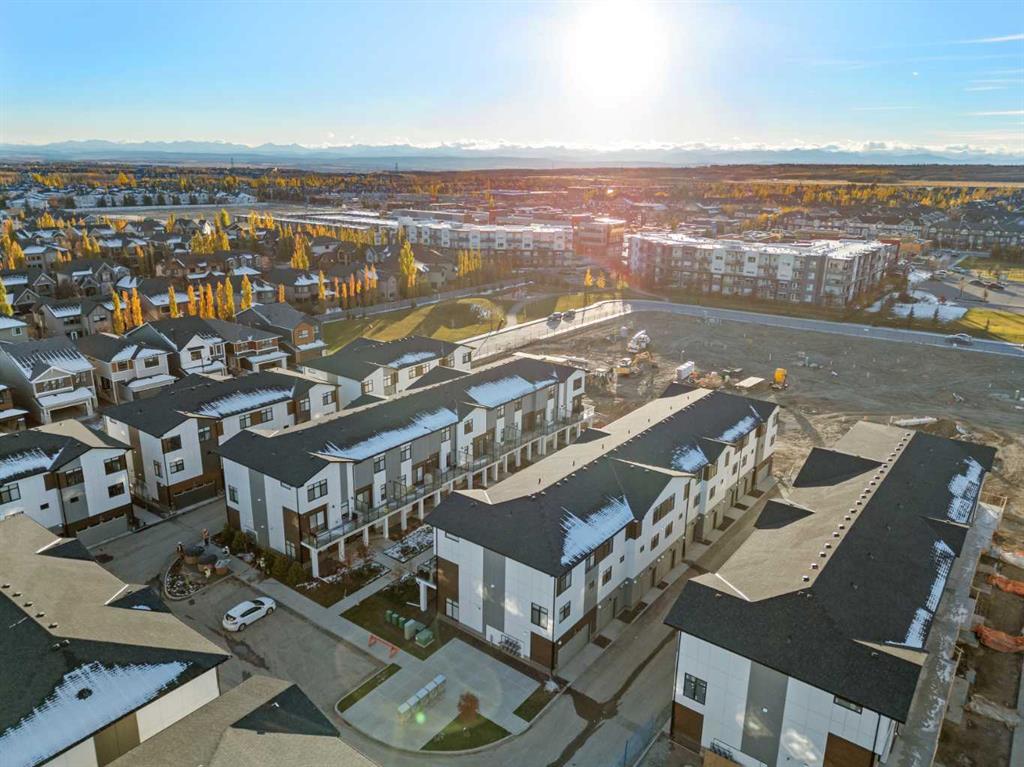 Welcome to this exceptional Trico built townhome located in the West 83 community of West Springs, one of Calgary’s most desirable west-side neighborhoods. This thoughtfully designed residence offers over 1,300 square feet of living space across a well-planned, modern layout that blends comfort and style. Inside, you are welcomed by an open-concept main floor illuminated by abundant natural light, which seamlessly connects the living, dining, and kitchen areas. The kitchen features two-tone cabinetry paired with quartz countertops and a gas range stove, creating a refined and functional space for everyday living. A 16-foot wide deck extends the living area outdoors, providing an inviting setting for morning coffee or relaxing in the evening. The upper floor holds two generous bedrooms, each with its OWN ENSUITE BATHROOM, ensuring privacy and comfort for residents and guests alike. The primary bedroom includes a three-piece ensuite and DUAL WALK IN CLOSETS, providing ample storage and convenience. Contemporary finishes throughout the home enhance the overall sense of refinement. Additional features include upgraded LED lighting, zebra blinds for versatile light control, and rough-in for A/C to support year-round comfort. The intelligent floor plan maximizes space while maintaining a flow that suits both everyday living and entertaining. Situated close to parks, pathways, shopping, dining, and excellent schools, this property offers both a peaceful residential setting and quick access to downtown Calgary. Major routes are within easy reach, making commuting and weekend escapes equally convenient. This home includes an Alberta New Home Warranty and represents a rare opportunity to live in a vibrant community with access to some of Calgary’s best amenities. Don't miss your chance to view this property - head to the Showhome today!